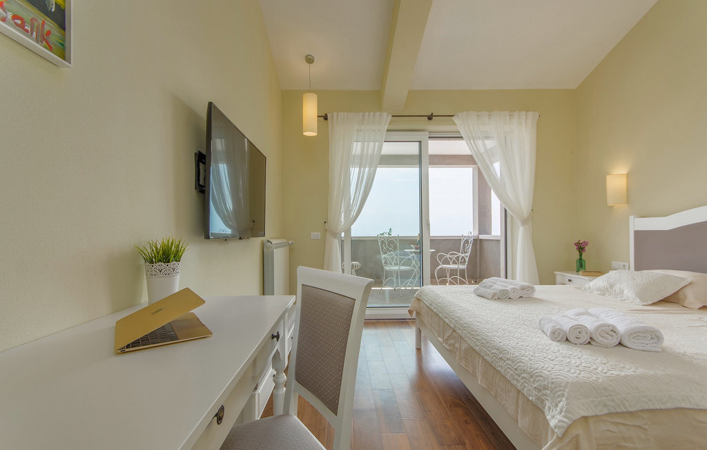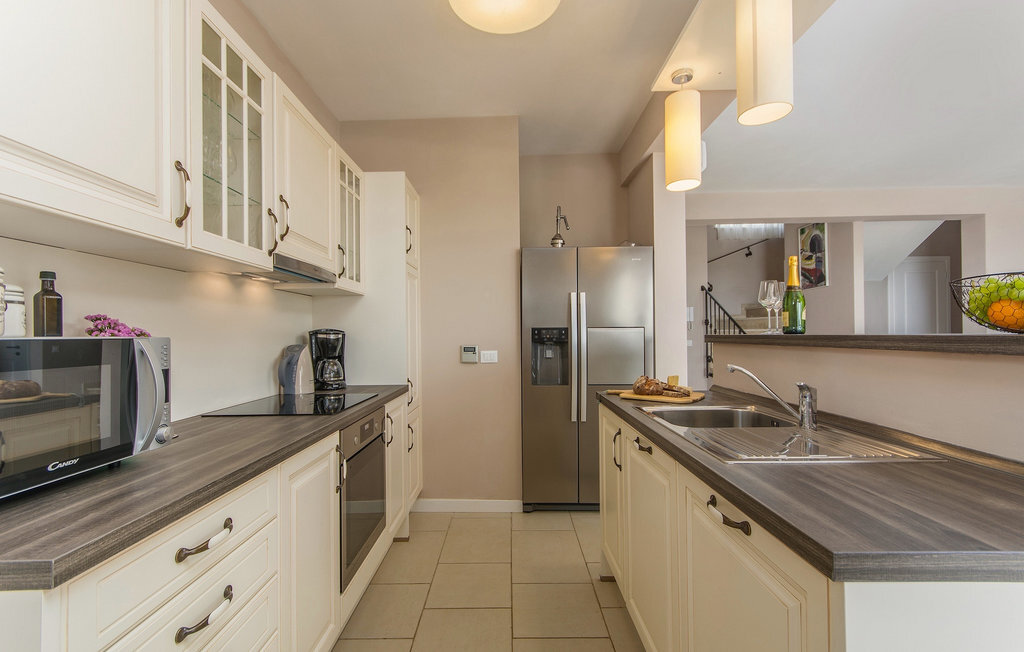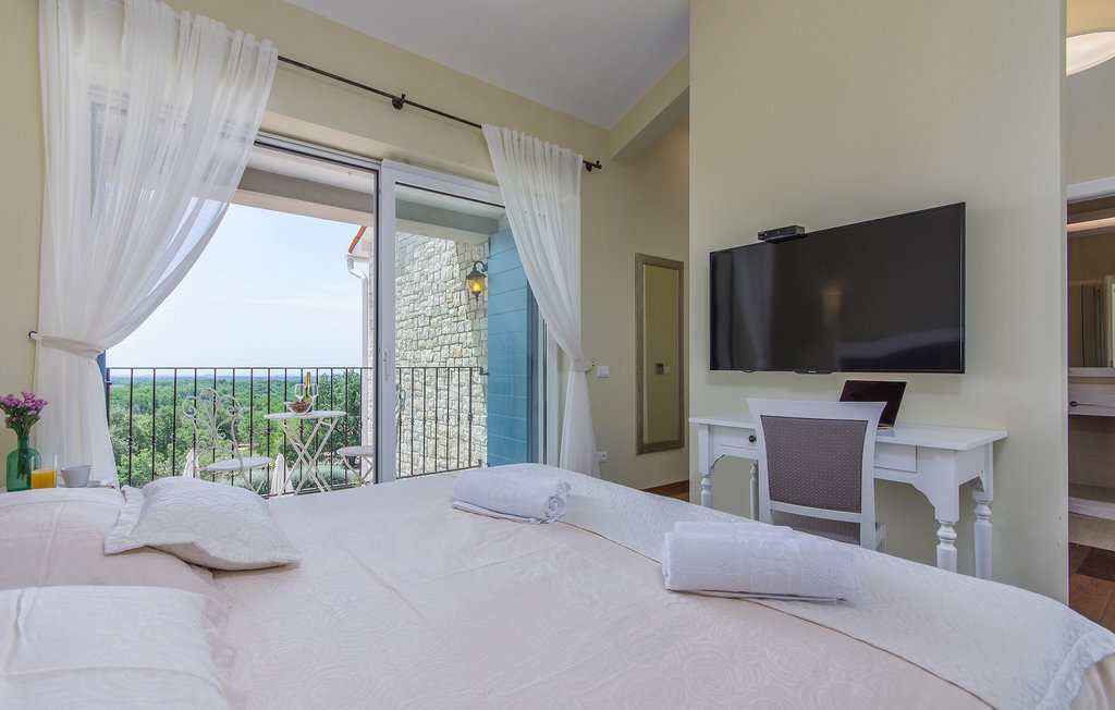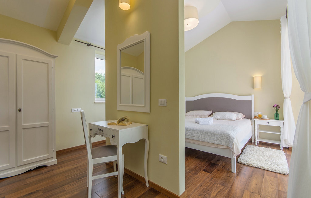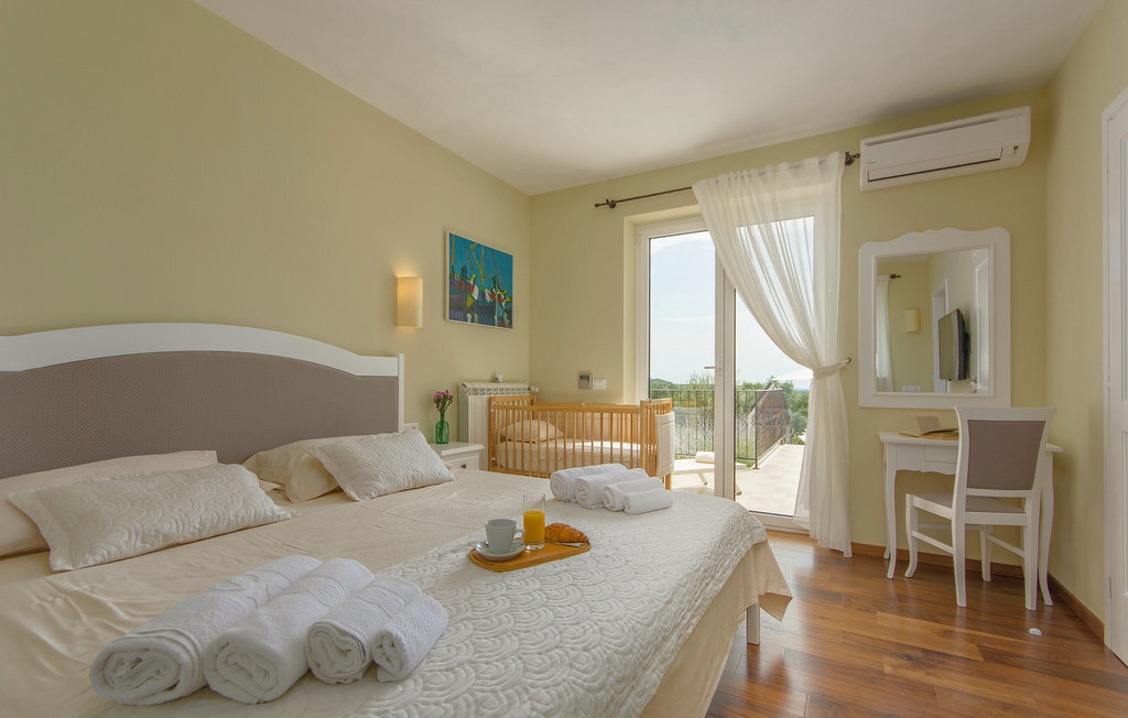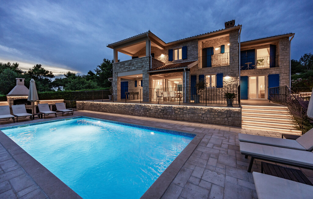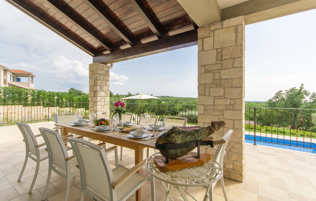 Faites une pause dans votre quotidien stressant dans cette charmante villa rustique pour 8 personnes avec vue sur les collines et la mer. Commencez vos vacances bien méritées par un plongeon dans la piscine privée ou lisez un livre sur les chaises longues sous le parasol. La spacieuse terrasse couverte est l'endroit idéal pour savourer les repas préparés sur le barbecue extérieur ou dans la cuisine entièrement équipée. Au rez-de-chaussée, la cuisine, la salle à manger et le salon forment un espace spacieux au plan ouvert, directement relié à la terrasse par des portes vitrées. Un complément particulier du salon est la cheminée, qui crée une atmosphère spéciale pendant les mois d'hiver ou d'été. Malgré son aspect rustique, cette villa particulière est équipée de toutes les commodités nécessaires à la vie moderne - elle est entièrement climatisée et dispose du chauffage au sol dans toute la maison. Pour plus de confort, en particulier pour les familles avec enfants, le rez-de-chaussée comprend également une chambre à coucher spacieuse avec salle de bain privée et un WC séparé supplémentaire.