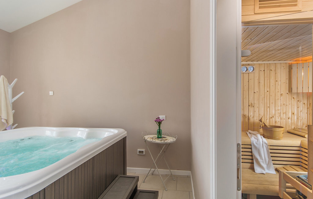 L'atmosphère bienfaisante de l'extérieur de cette maison s'étend jusqu'à l'intérieur, où vous attend au rez-de-chaussée votre petite oasis de bien-être privée avec sauna et jacuzzi. Détendez-vous complètement et laissez le quotidien derrière vous dans le jacuzzi avec vue sur la verdure.