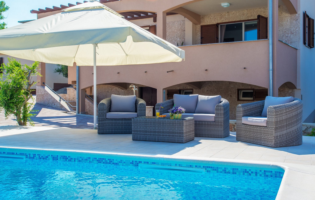 Les deux appartements et la piscine sont loués comme une seule unité à un seul groupe d'invités.