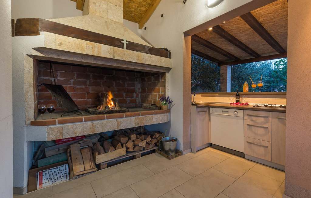 Une grande piscine privée avec une partie peu profonde pour les enfants et une grande terrasse couverte avec barbecue sont à disposition. La villa peut accueillir 10 + 1 hôtes.