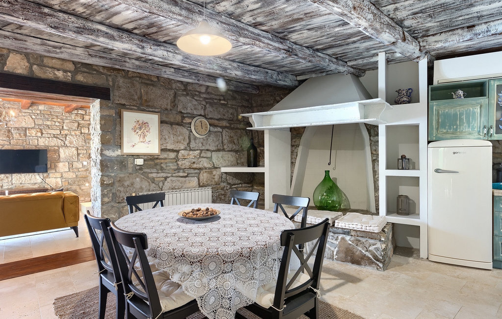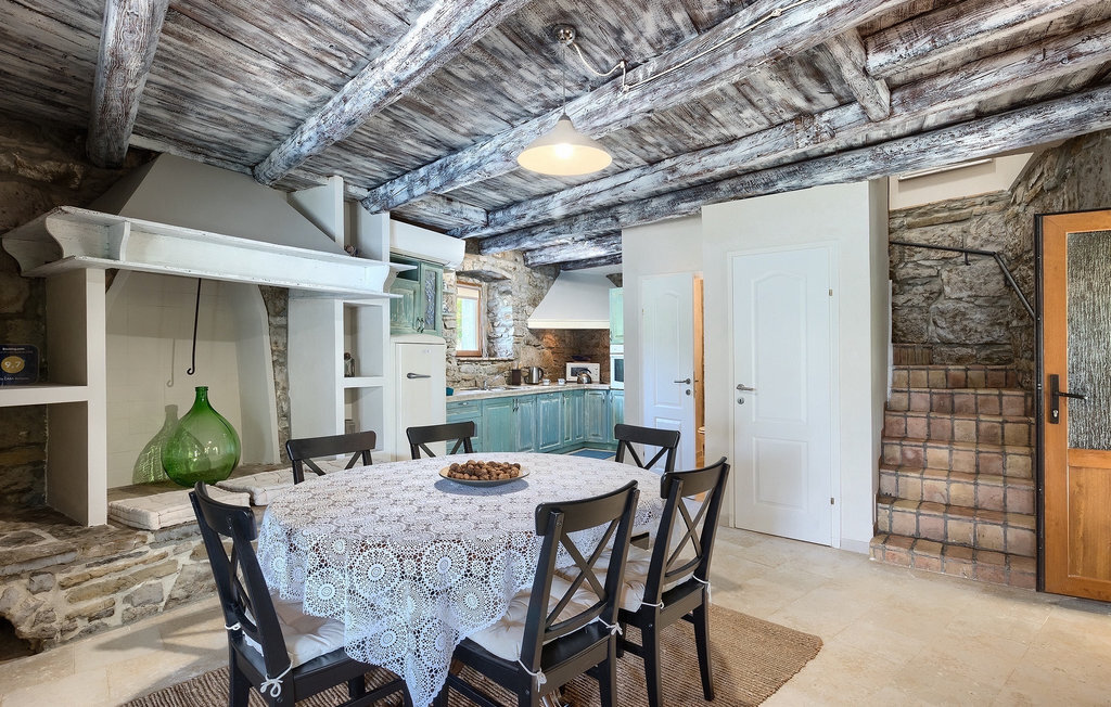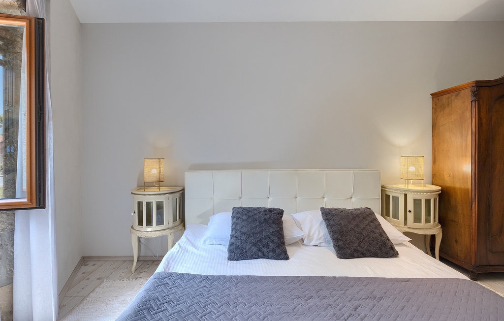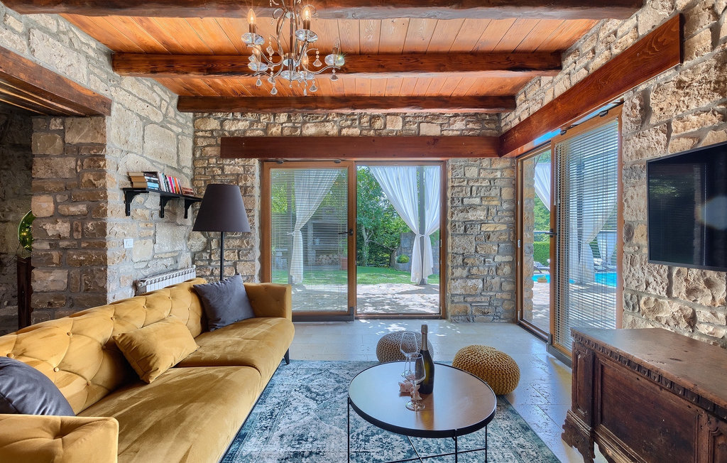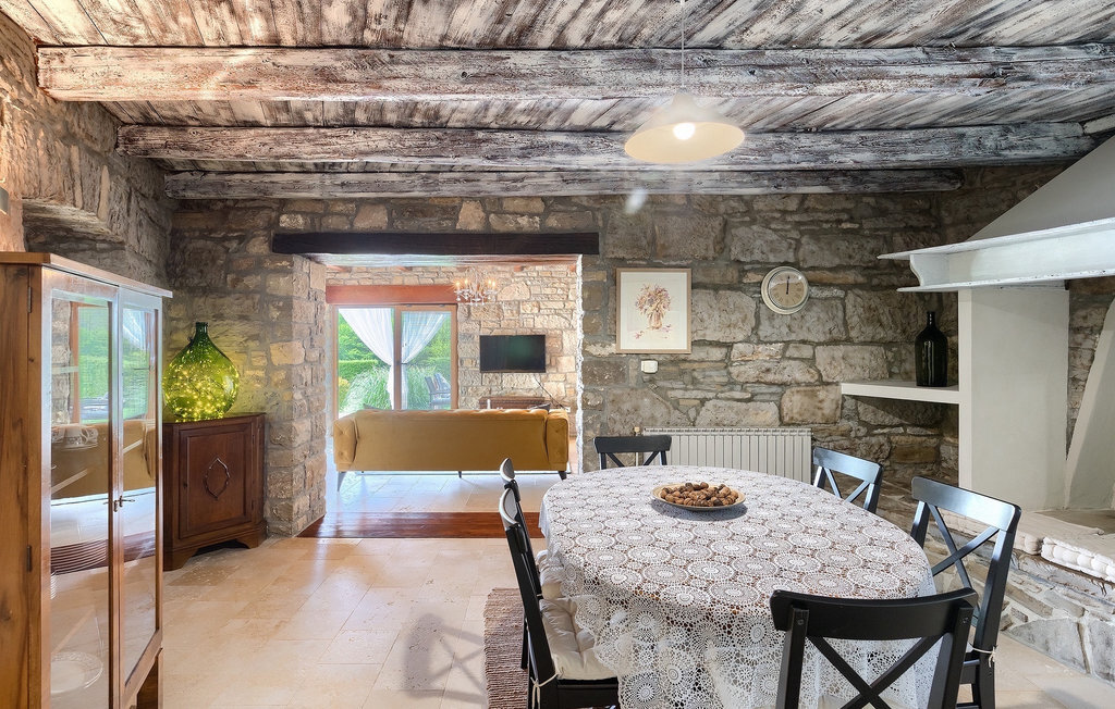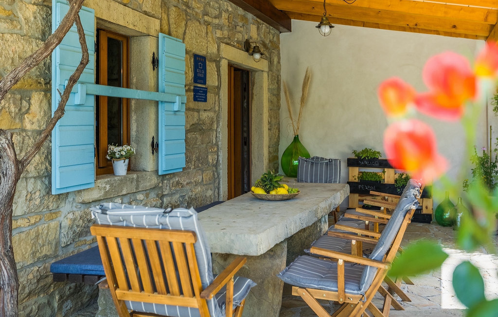 Cette villa en pierre se trouve dans la petite ville médiévale et romantique de Buzet. Tout est fait dans un style très chaleureux qui vous donne l'impression d'être chez vous. La Villa Romano s'étend sur 100m2 et peut accueillir jusqu'à 5 personnes. Le rez-de-chaussée ouvert est très clair et aéré et se compose d'une cuisine entièrement équipée, d'une salle à manger et d'un salon inondé de lumière naturelle. L'escalier mène au premier étage où se trouvent deux chambres à coucher magnifiquement aménagées avec salle de bain privée. Chaque chambre dispose d'un lit double et l'une d'entre elles d'un lit simple supplémentaire. Le charme rustique s'étend des chambres à coucher jusqu'au jardin de la villa. La villa dispose d'une piscine privée de 24m2 dans laquelle vous pourrez vous rafraîchir lors des chaudes journées d'été ou simplement profiter du soleil sur la terrasse. Dans le jardin soigneusement entretenu, un barbecue est à votre disposition pour préparer de délicieux repas que vous pourrez déguster en famille ou entre amis.