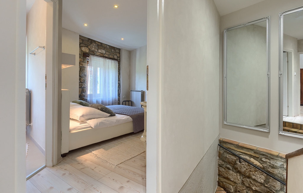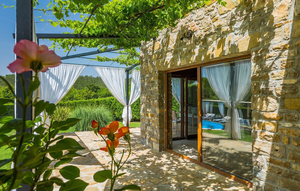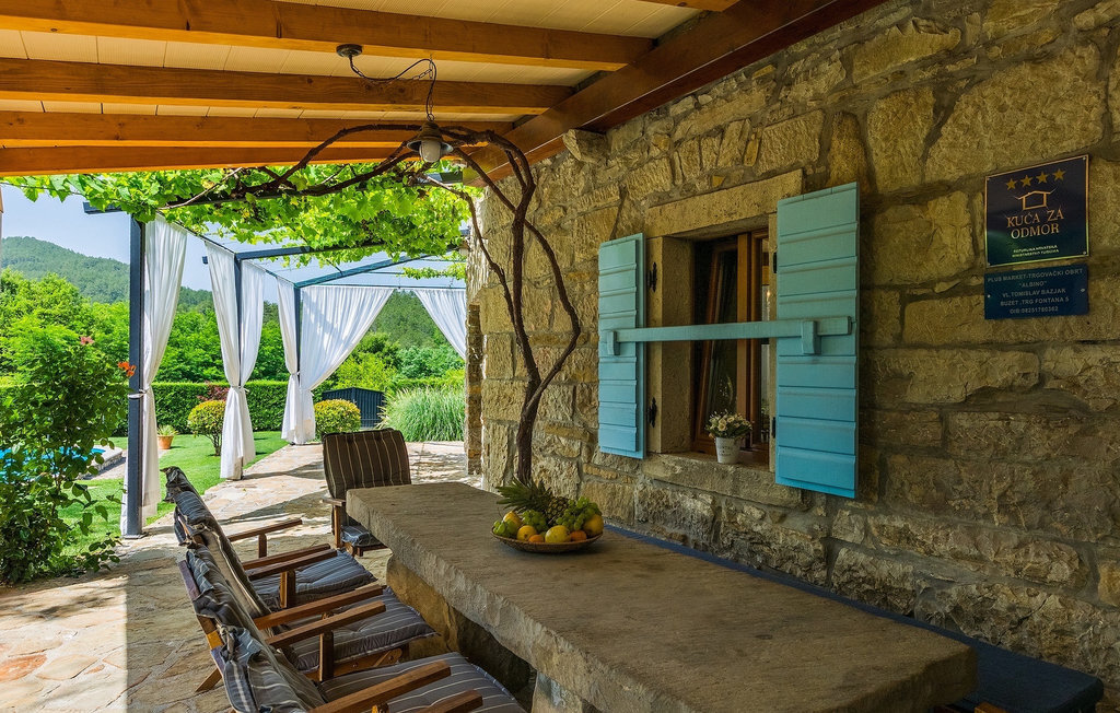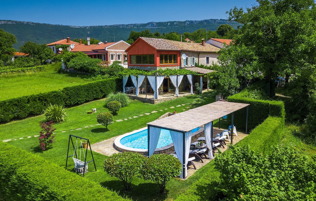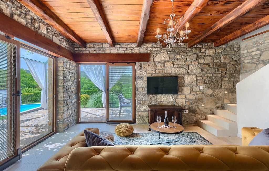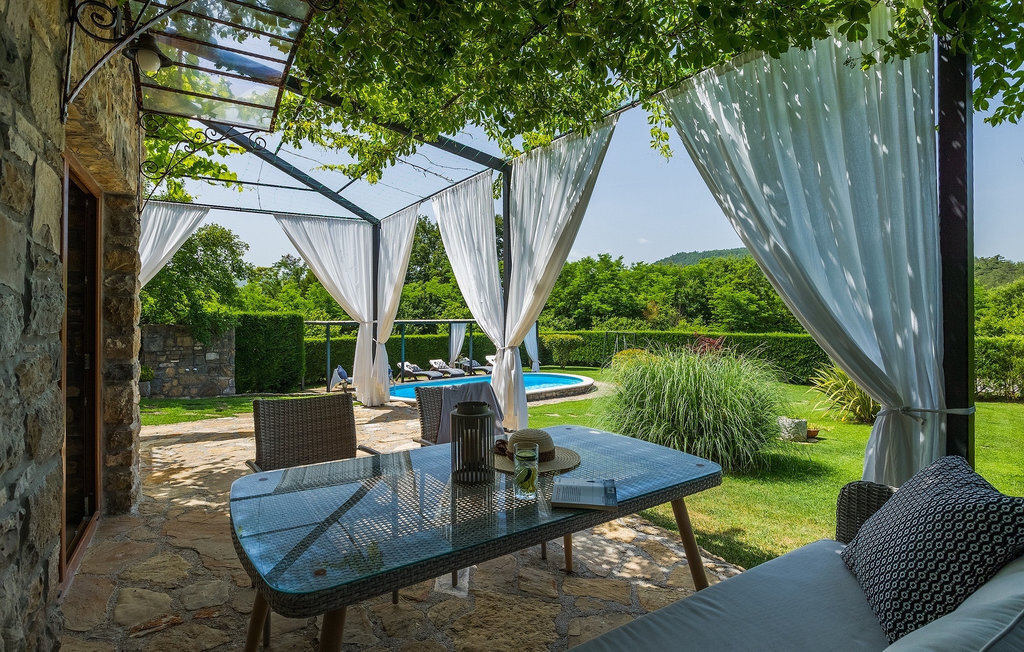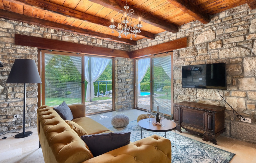 Cette villa en pierre se trouve dans la petite ville médiévale et romantique de Buzet. Tout est fait dans un style très chaleureux qui vous donne l'impression d'être chez vous. La Villa Romano s'étend sur 100m2 et peut accueillir jusqu'à 5 personnes. Le rez-de-chaussée ouvert est très clair et aéré et se compose d'une cuisine entièrement équipée, d'une salle à manger et d'un salon inondé de lumière naturelle. L'escalier mène au premier étage où se trouvent deux chambres à coucher magnifiquement aménagées avec salle de bain privée. Chaque chambre dispose d'un lit double et l'une d'entre elles d'un lit simple supplémentaire. Le charme rustique s'étend des chambres à coucher jusqu'au jardin de la villa. La villa dispose d'une piscine privée de 24m2 dans laquelle vous pourrez vous rafraîchir lors des chaudes journées d'été ou simplement profiter du soleil sur la terrasse. Dans le jardin soigneusement entretenu, un barbecue est à votre disposition pour préparer de délicieux repas que vous pourrez déguster en famille ou entre amis.