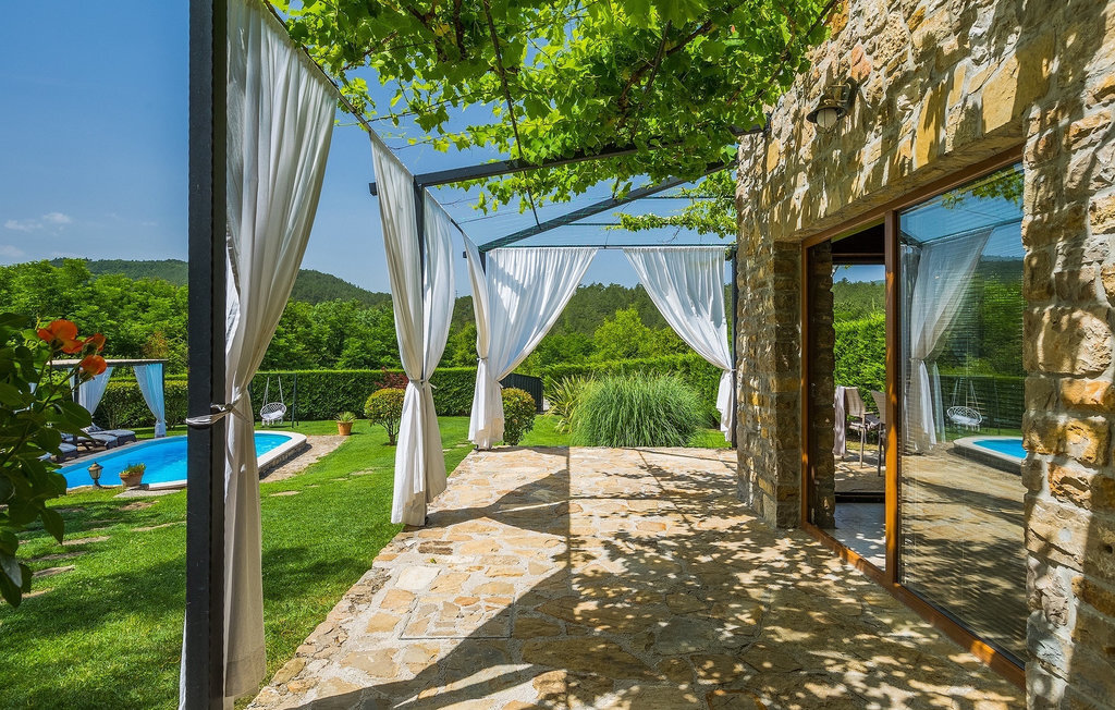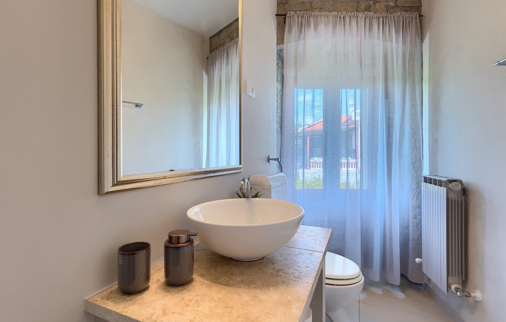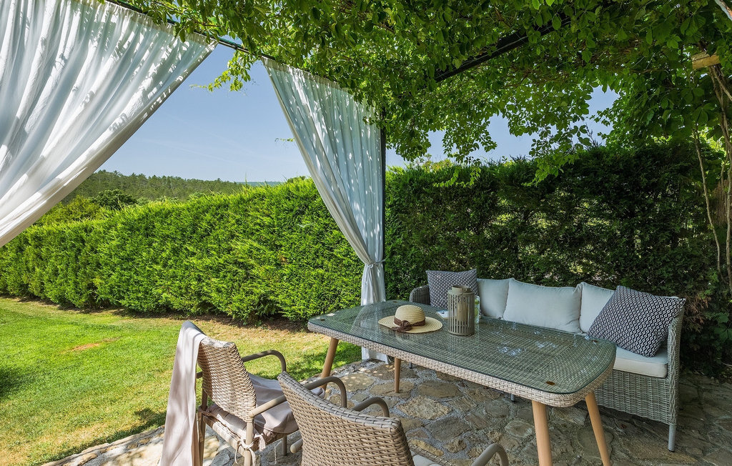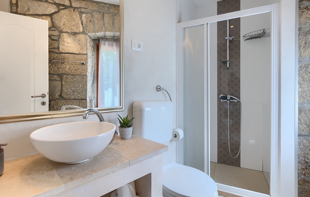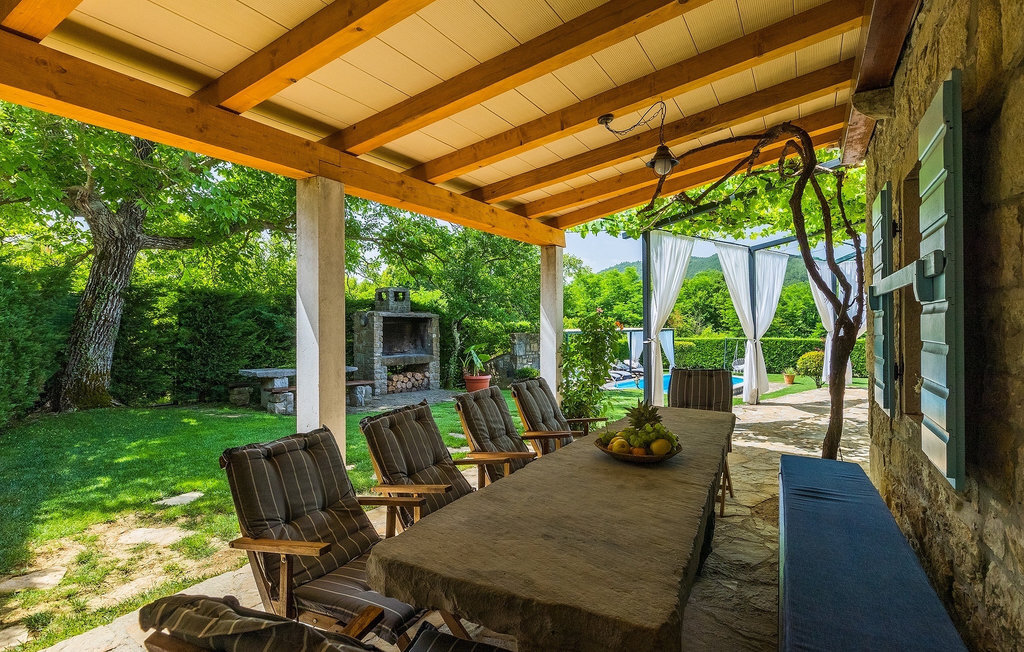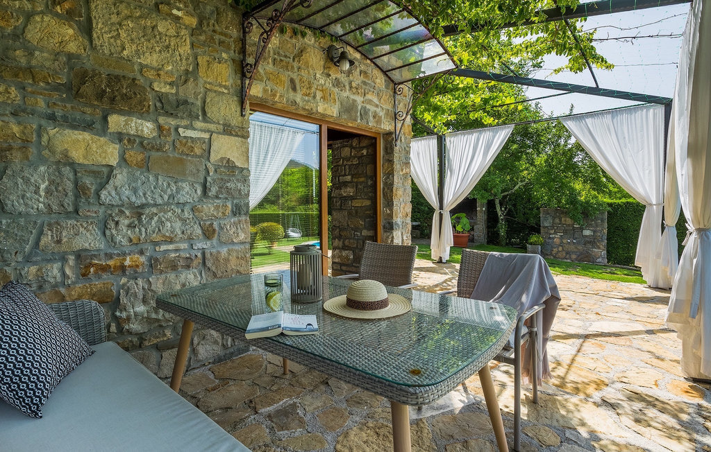 Cette villa en pierre se trouve dans la petite ville médiévale et romantique de Buzet. Tout est fait dans un style très chaleureux qui vous donne l'impression d'être chez vous. La Villa Romano s'étend sur 100m2 et peut accueillir jusqu'à 5 personnes. Le rez-de-chaussée ouvert est très clair et aéré et se compose d'une cuisine entièrement équipée, d'une salle à manger et d'un salon inondé de lumière naturelle. L'escalier mène au premier étage où se trouvent deux chambres à coucher magnifiquement aménagées avec salle de bain privée. Chaque chambre dispose d'un lit double et l'une d'entre elles d'un lit simple supplémentaire. Le charme rustique s'étend des chambres à coucher jusqu'au jardin de la villa. La villa dispose d'une piscine privée de 24m2 dans laquelle vous pourrez vous rafraîchir lors des chaudes journées d'été ou simplement profiter du soleil sur la terrasse. Dans le jardin soigneusement entretenu, un barbecue est à votre disposition pour préparer de délicieux repas que vous pourrez déguster en famille ou entre amis.