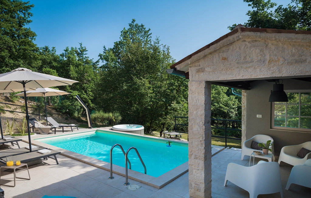 Dans le magnifique jardin, vous pouvez vous détendre au bord de la piscine, vous faire dorloter dans le jacuzzi extérieur ou préparer de délicieux plats sur le barbecue pour les membres de votre famille ou vos amis.