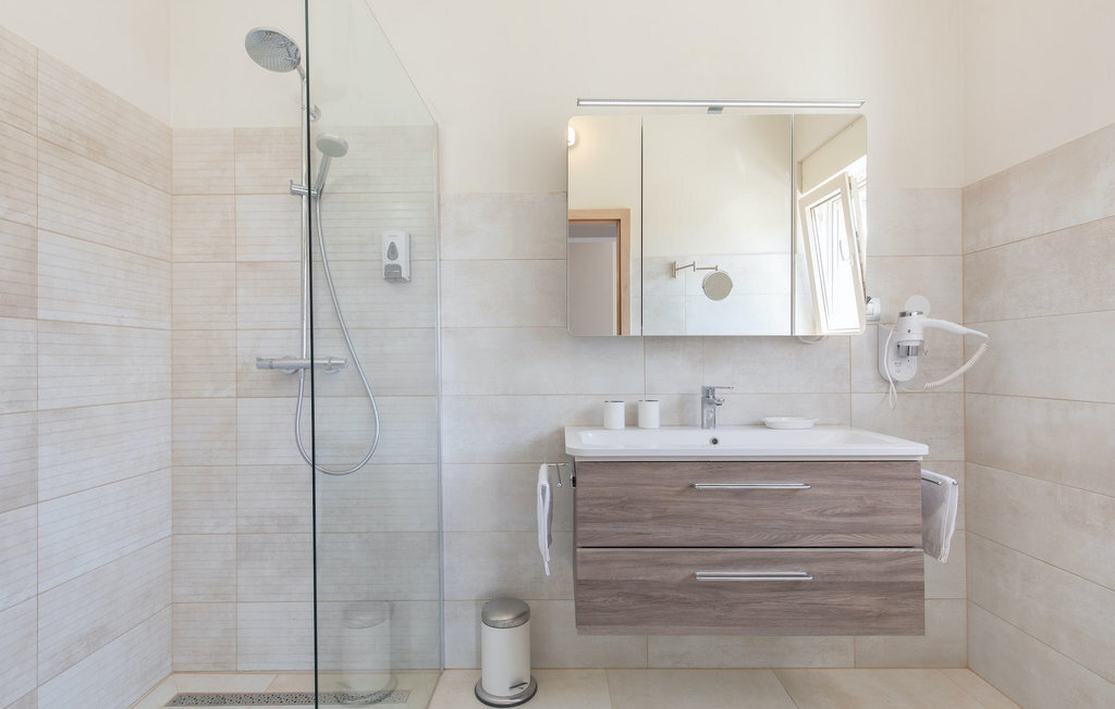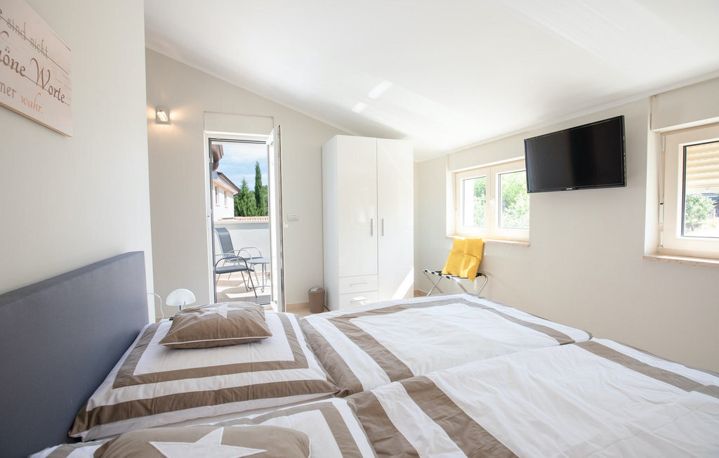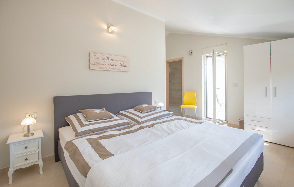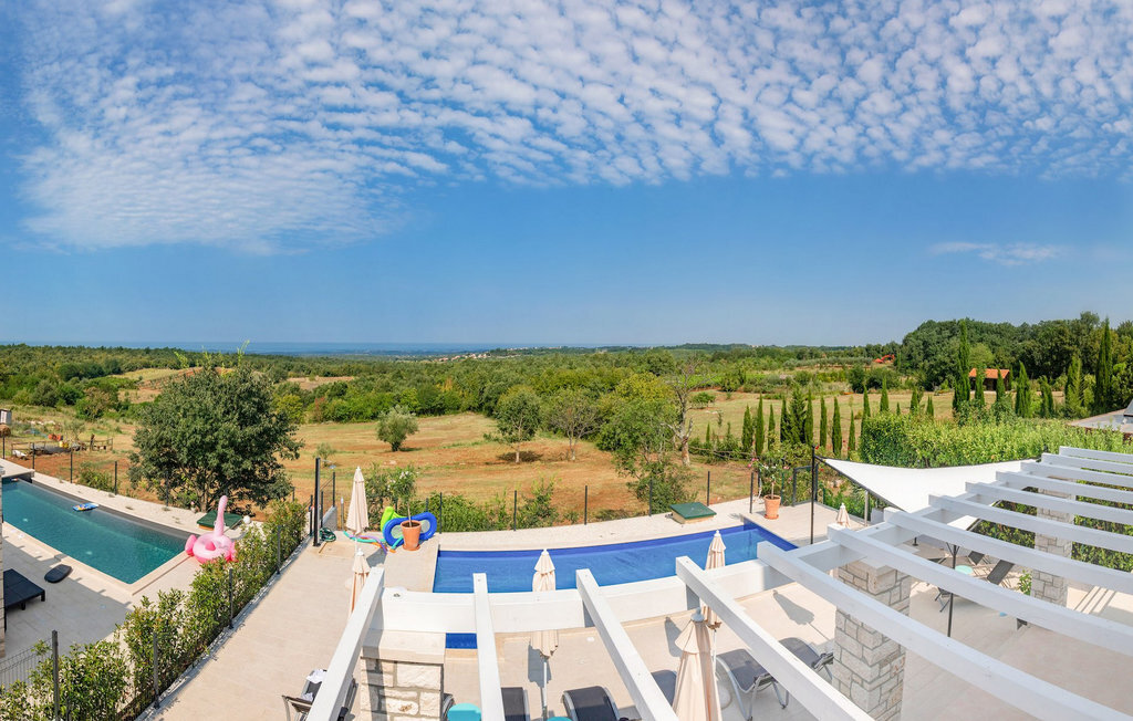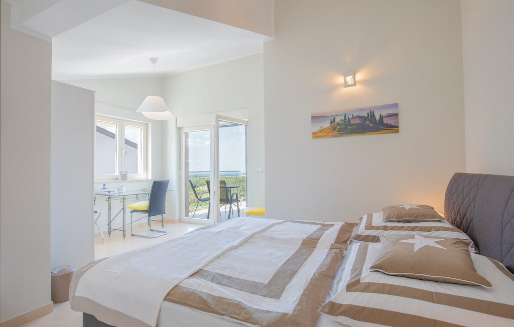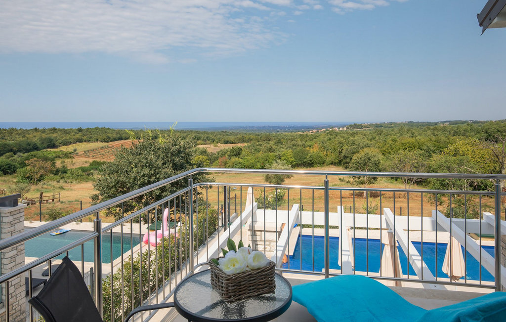 Au rez-de-chaussée se trouve en outre l'une des chambres doubles avec sa propre salle de bains et un WC séparé pour les invités. Les 3 chambres restantes se trouvent au premier étage et ont chacune leur propre balcon. La vue magnifique sur le paysage istrien depuis les balcons, pendant que vous prenez le thé ou le café le matin ou le soir au coucher du soleil, contribue définitivement à une ambiance de vacances calme et détendue.