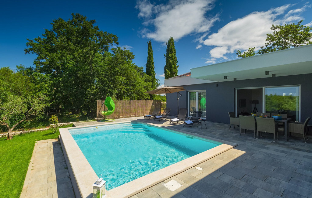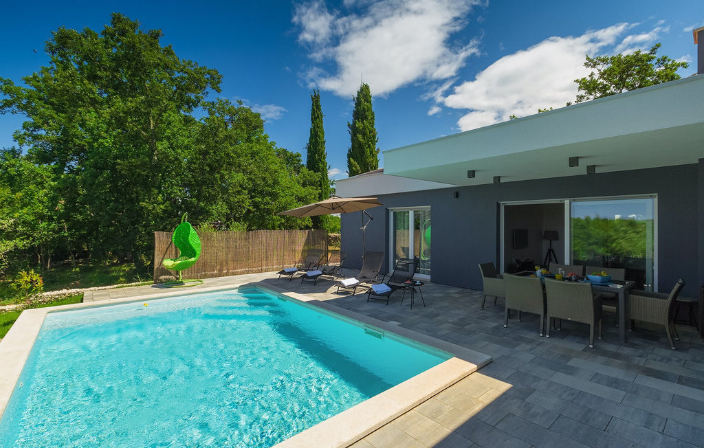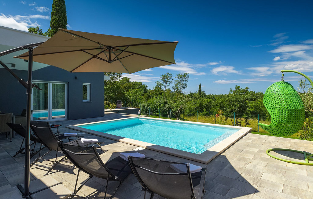 Pendant la journée, vous passerez certainement la plupart du temps à nager dans la piscine et à vous détendre tout simplement. La salle à manger extérieure couverte est parfaite pour prendre une boisson fraîche lors des chaudes soirées d'été, en dînant à la lueur des bougies. Profitez de la brise du soir et du magnifique ciel étoilé sur l'une des chaises longues ou allongé sur la grande balançoire. La magnifique villa Noemi est située dans un petit village d'Istrie appelé Krvavii. Comme la plupart des villages d'Istrie, Krvavii est entouré d'une nature époustouflante, de collines verdoyantes et de champs, ce qui en fait un lieu idéal pour des vacances relaxantes. Si vous vous intéressez aux villes historiques, Pula n'est qu'à une courte distance en voiture de la villa.