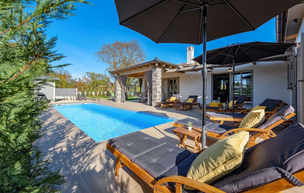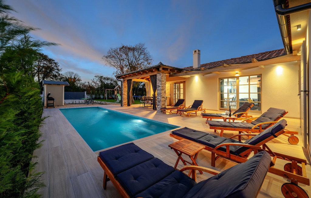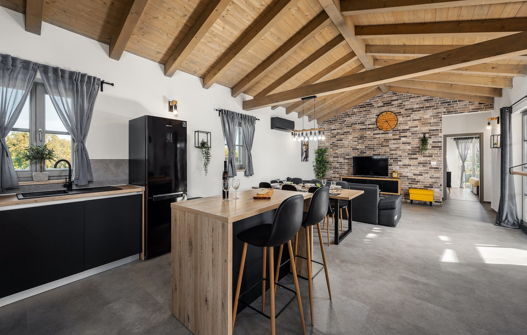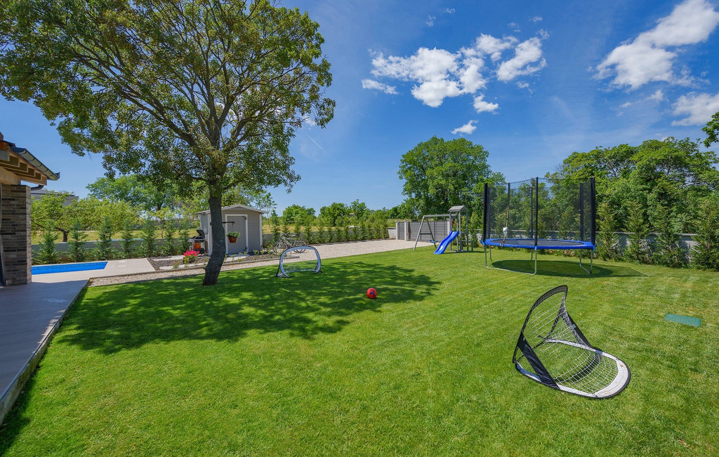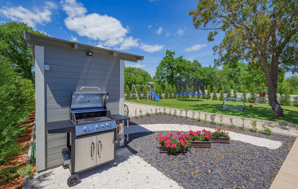 La Villa Acorn est une maison moderne d'un étage entourée de verdure, idéale pour des vacances familiales reposantes. Entouré d'une nature intacte, vous passerez vos vacances avec votre boisson préférée à la main au bord de la piscine privée, pendant que les plus jeunes joueront sur l'aire de jeux pour enfants. Sur la spacieuse terrasse couverte, un barbecue à gaz et une grande table à manger sont à votre disposition, où vous pourrez passer des soirées tranquilles dans une agréable atmosphère familiale.