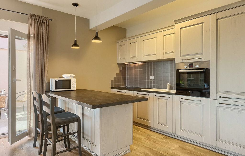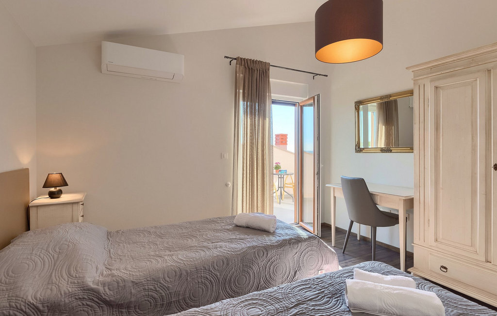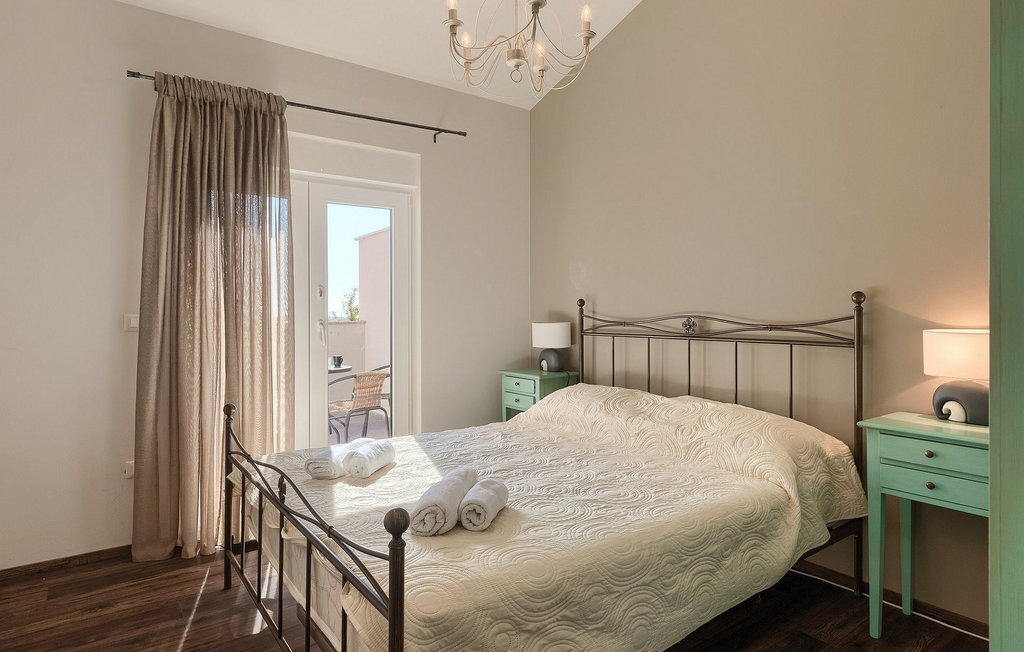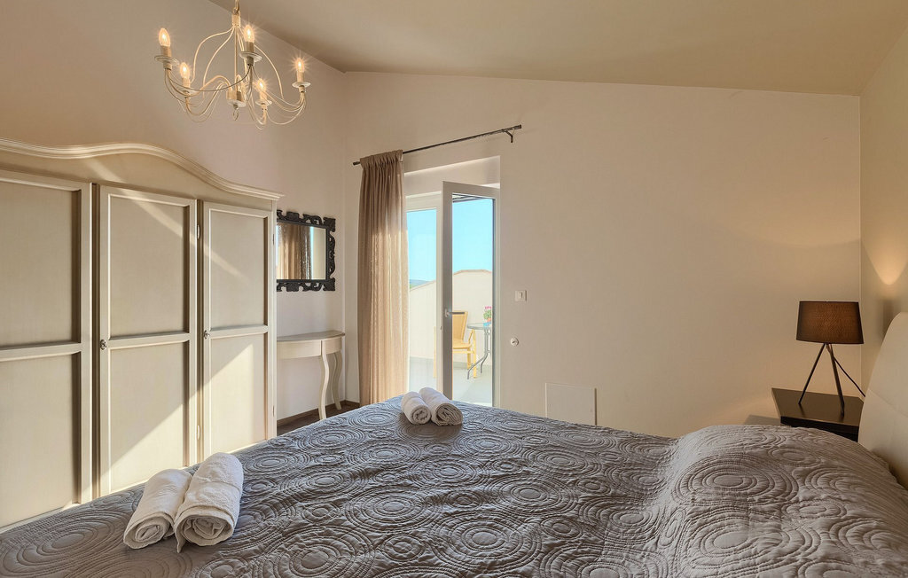 Si vous souhaitez vous détendre dans une villa avec piscine non loin de la mer, nous vous recommandons la Villa Sime. Cette charmante villa dispose de quatre chambres pouvant accueillir jusqu'à huit personnes. Au premier étage se trouvent deux chambres à coucher et une salle de bain. Une chambre dispose d'un lit double, l'autre de deux lits simples. Les deux chambres à coucher sont climatisées et ont accès à une terrasse commune avec une belle vue sur les environs et la mer. Au rez-de-chaussée de la villa se trouvent deux chambres à coucher climatisées avec lit double ainsi que deux salles de bains. Au même niveau se trouve également un salon confortable et chaleureusement meublé avec une télévision, qui communique avec la salle à manger et une cuisine entièrement équipée. Le salon donne accès à la terrasse couverte avec une table à manger et une vue sur la piscine. Dans le jardin de la villa, vous trouverez une piscine accueillante avec des chaises longues pour profiter du soleil. Vous serez certainement séduit par le rideau d'eau de massage qui, en plus d'être superbe, permet de masser la nuque et les épaules. Dans le jardin se trouve également une salle à manger couverte avec une table et un barbecue, où vous pourrez exercer vos talents de cuisinier.