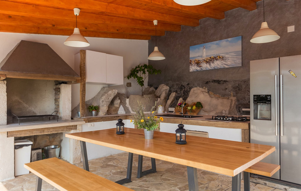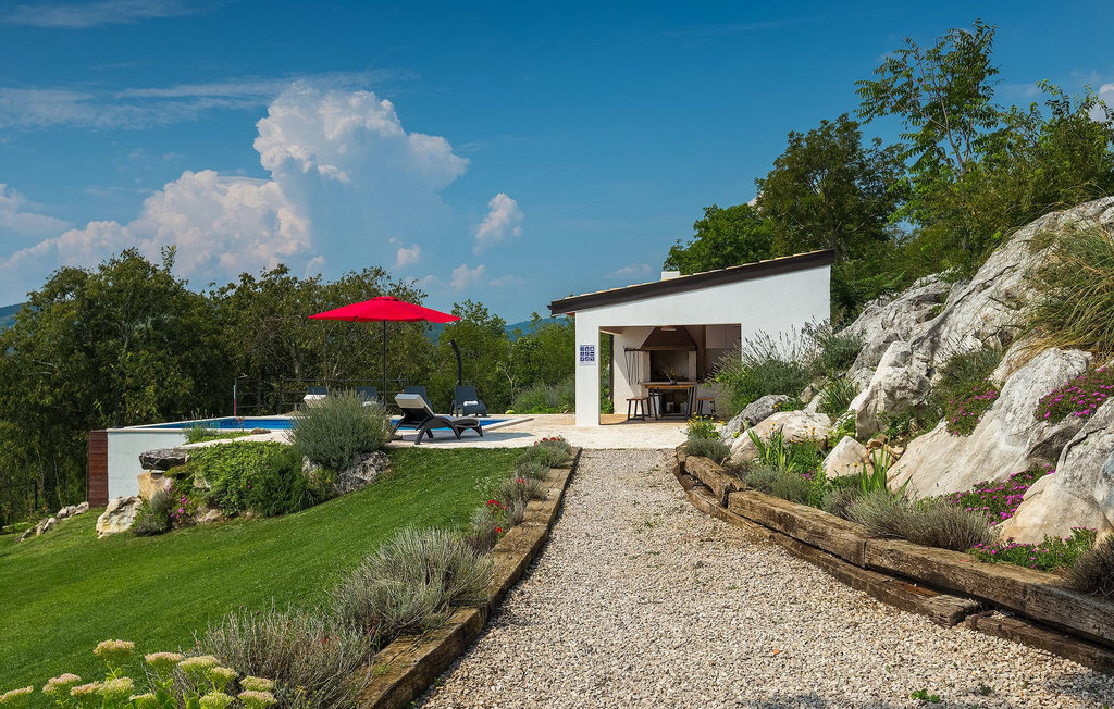 L'espace extérieur offre un lieu de détente au bord de la piscine. Vous pourrez vous y détendre en prenant un bain de soleil ou en nageant dans le bassin. La cuisine extérieure avec coin repas couvert se trouve juste à côté de la piscine et est équipée de tout le nécessaire pour déguster de délicieuses spécialités locales que vous et votre famille et vos amis pourrez savourer le soir en plein air. Pour les plus jeunes, la villa offre un divertissement sans souci sur un trampoline, une balançoire et un toboggan.La villa dispose d'un parking pour 4 voitures et du WiFi. Venez à la VIlla Elia et profitez de vacances uniques :)La magnifique Villa Elia est située dans un petit hameau dans la partie centrale de l'Istrie. L'Istrie est facilement accessible et dispose d'un excellent réseau routier à faible trafic. La côte avec ses grands centres touristiques et l'aéroport de Pula ne sont pas trop éloignés. La plage la plus proche, à Plomin Luka, est à 10 km. La péninsule istrienne Terra Magica est située sur la mer Adriatique, la mer chaude la plus proche au cœur de l'Europe. Rabac, la perle de la baie de Kvarner, fait partie de la partie orientale de la presqu'île. Dans la partie occidentale, le fantastique château médiéval de Pazin (Kastel) se trouve à 130 mètres au-dessus de la falaise, là où la rivière Pazinica se jette dans la fosse de Pazin : C'est ici que se déroule le roman Mathias Sandorf du célèbre écrivain français Jules Verne, publié en 1885. Aujourd'hui, il existe un club Jules Verne à Pazin, et des journées Jules Verne sont organisées chaque année à la fin du mois de juin.