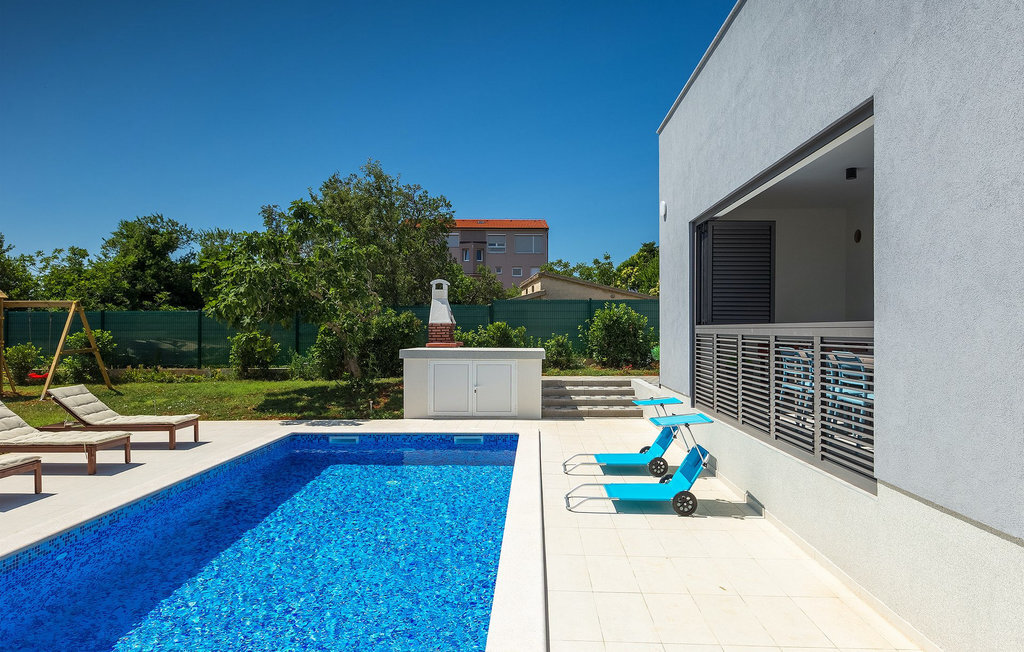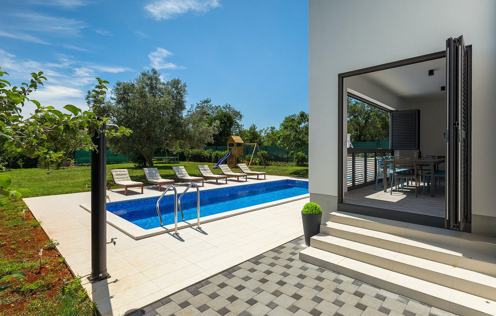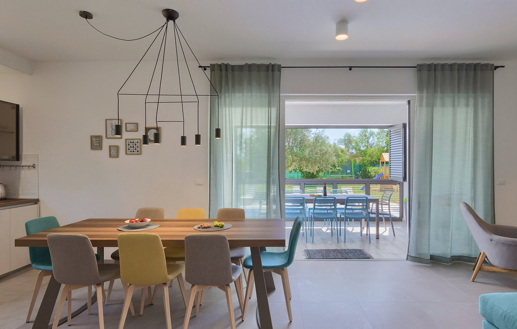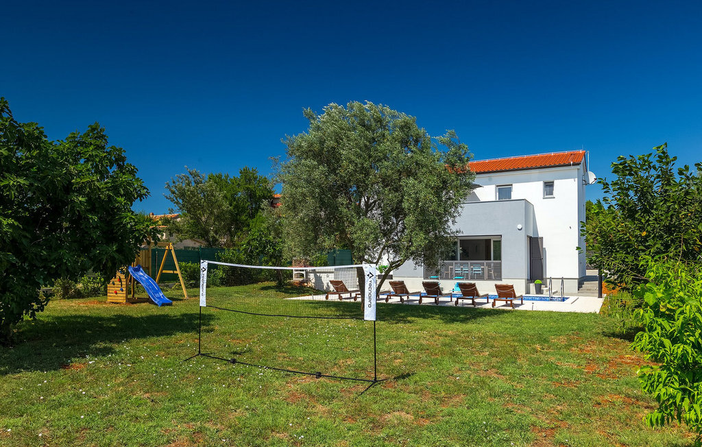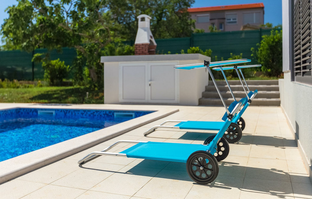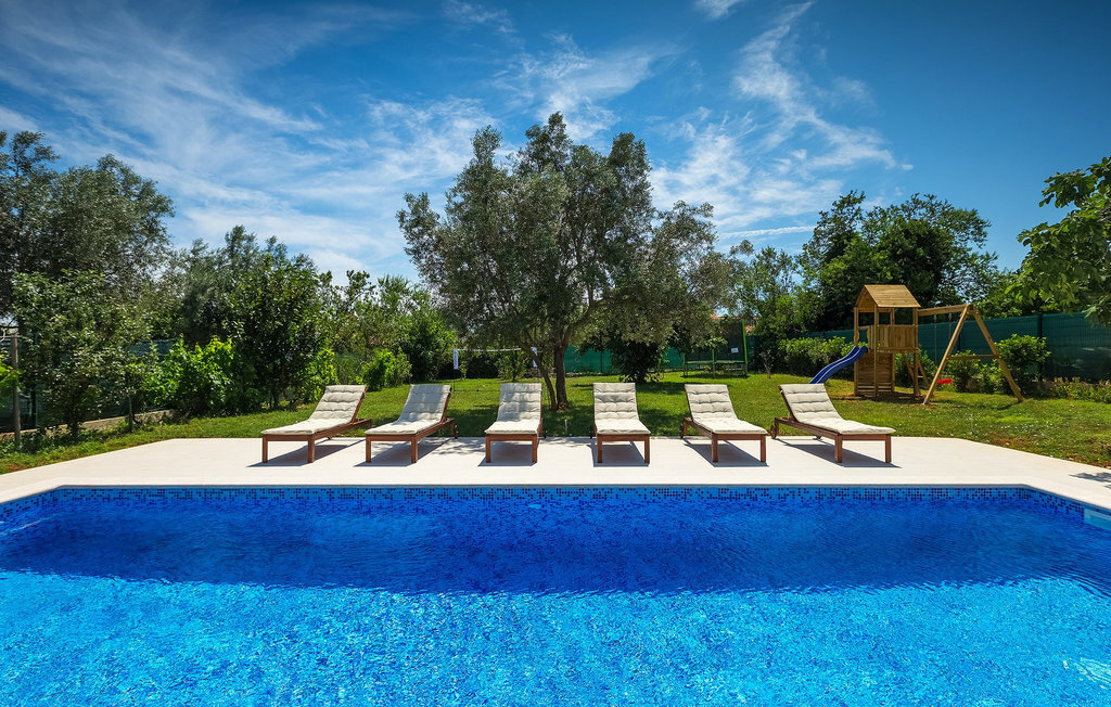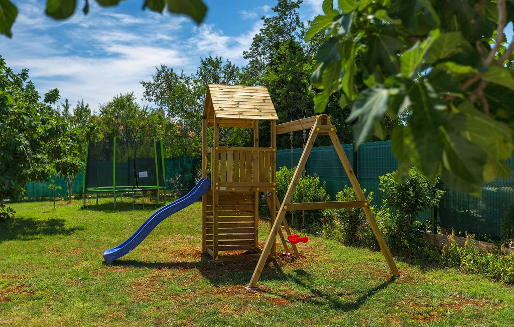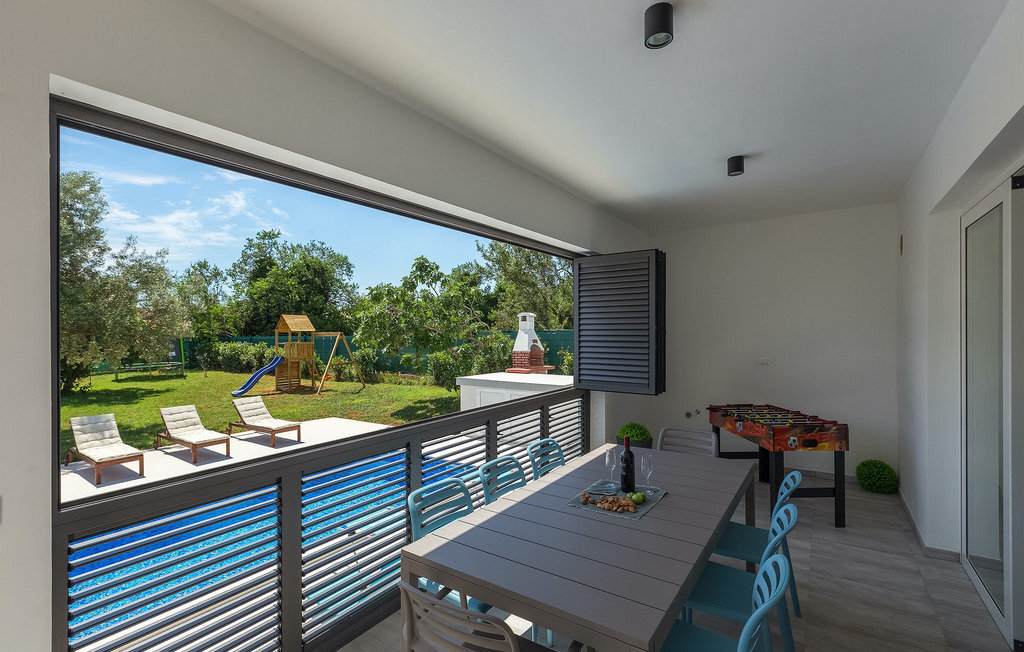 Au milieu du jardin, les enfants peuvent jouer sans souci sur l'aire de jeux ou le trampoline. Que vous souhaitiez vous détendre sur les chaises longues au bord de la piscine ou passer des vacances pleines d'activités dans la villa en jouant au badminton ou au baby-foot, ou encore vous amuser au bord de la mer, vous êtes sûr de passer de bons moments en passant vos vacances dans la magnifique Villa Elica :)La Villa Elica se trouve dans le célèbre village touristique de Medulin. Ancien village de pêcheurs, Medulin est aujourd'hui une destination touristique populaire, largement connue pour sa variété de plages de rochers, de galets et de sable. C'est un endroit idéal pour les amoureux de la nature, ainsi que pour ceux qui souhaitent se détendre loin de l'agitation de la vie quotidienne, tout en étant à proximité du centre de divertissement.