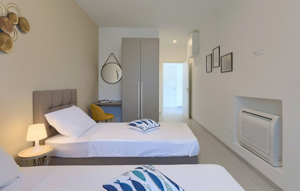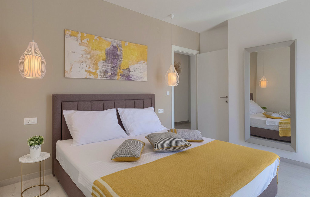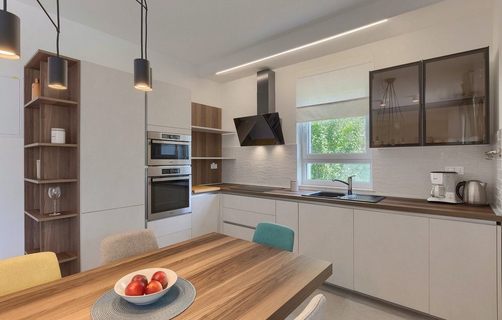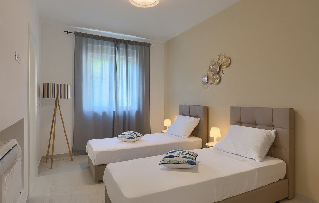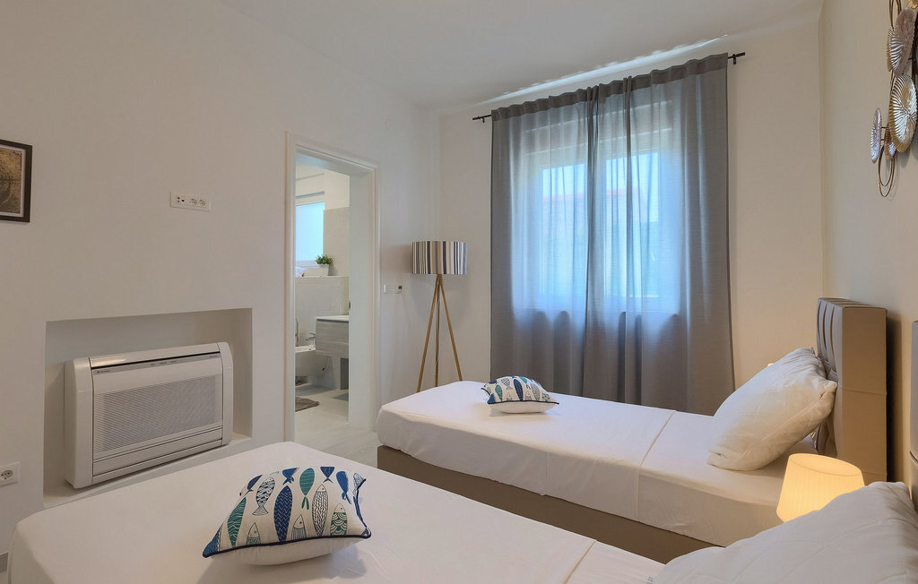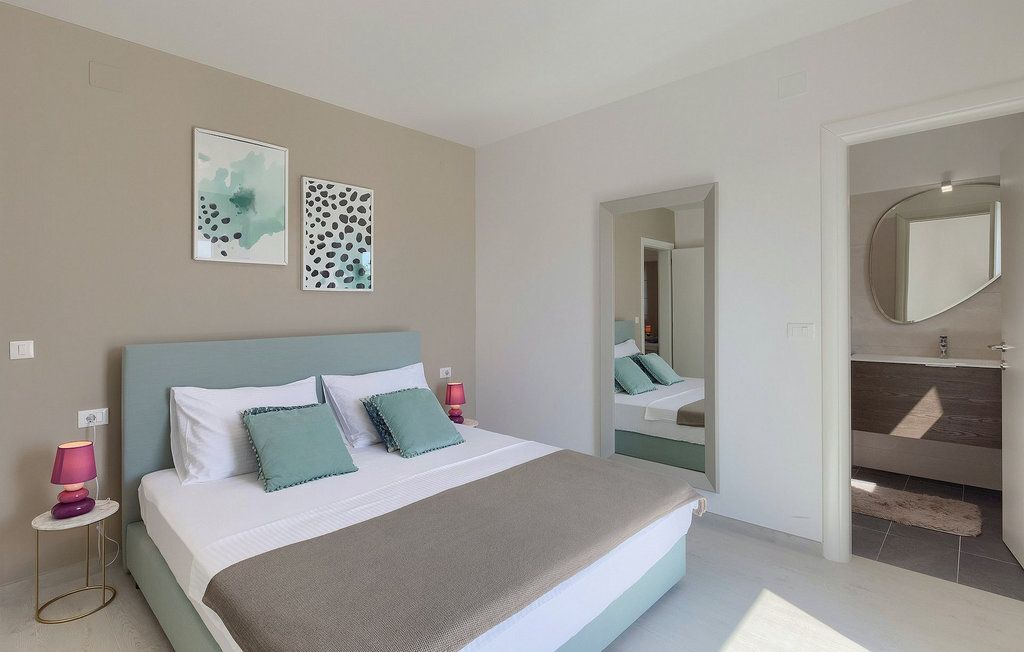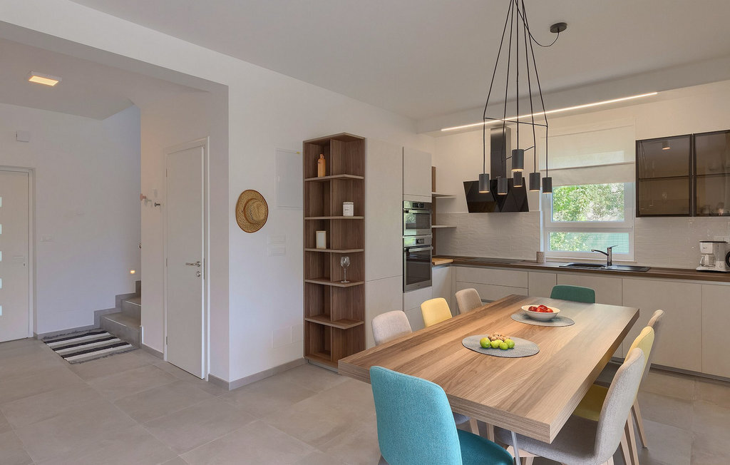 La villa moderne Elica est le bon choix si vous souhaitez passer des vacances tranquilles près de la mer dans la partie la plus calme de la belle Medulin, particulièrement adaptée aux familles avec de jeunes enfants. La villa Elica peut accueillir jusqu'à 8 personnes. L'intérieur moderne offre 4 chambres confortables et ensoleillées, chacune décorée dans des couleurs différentes et discrètes, ce qui donne une touche individuelle. Une des chambres dispose de deux lits simples et se trouve au rez-de-chaussée. Les trois autres chambres sont équipées de lits doubles et se trouvent au premier étage. Toutes les chambres sont équipées d'une salle de bain privée.