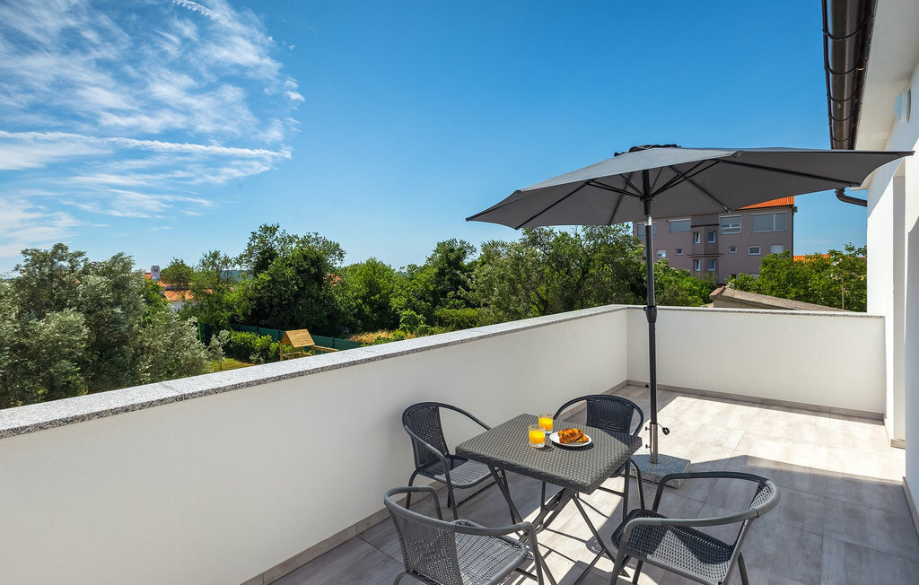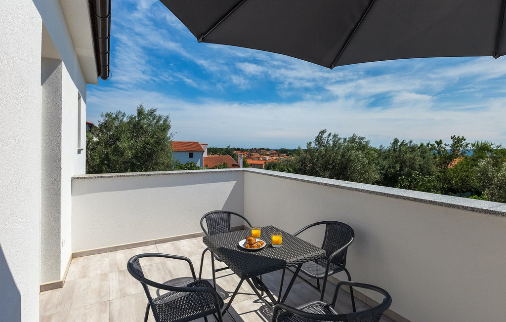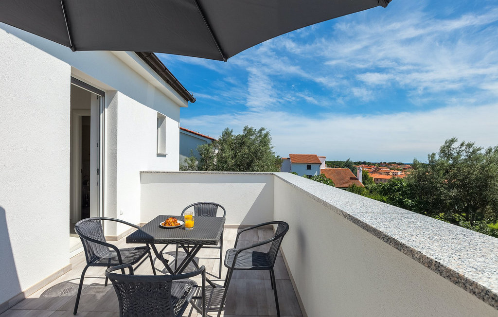 La terrasse non couverte au premier étage offre un bel endroit pour prendre votre thé ou café du matin tout en profitant de la belle vue sur Medulin et la mer située à moins d'un kilomètre.
