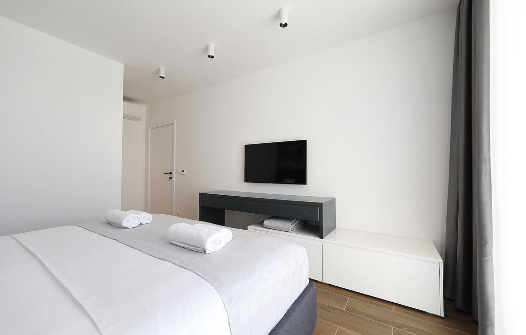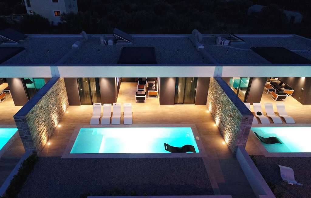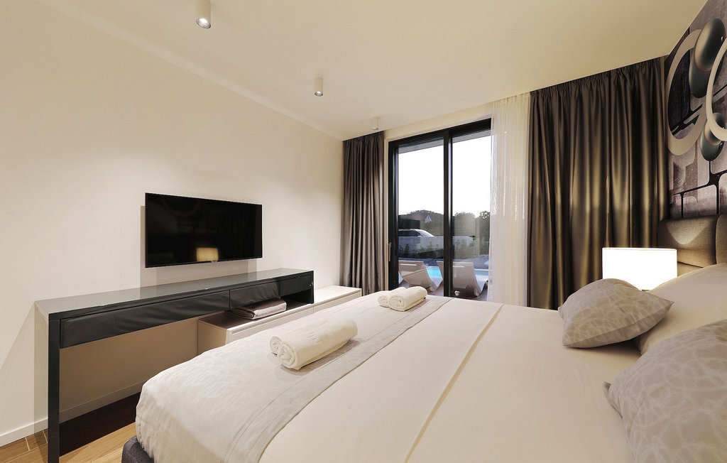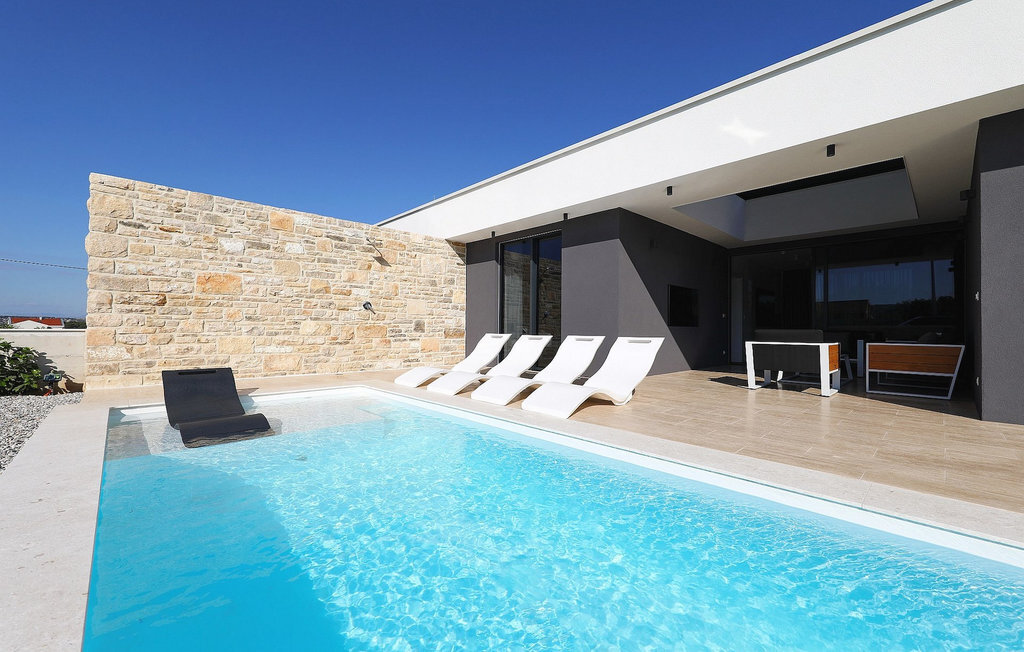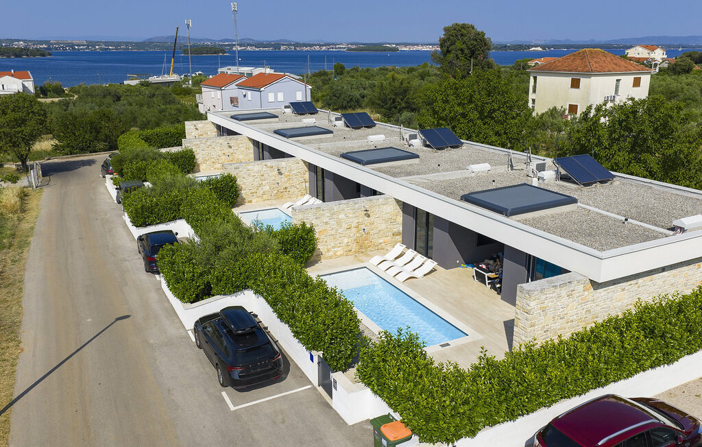 La villa K3 est parfaitement située sur la magnifique île de Pasman, près de Zadar. C'est la maison de vacances idéale pour les petites familles ou les couples qui souhaitent passer leurs vacances ensemble. La villa dispose de trois chambres, chacune équipée d'une télévision et de la climatisation. Deux des chambres ont des lits doubles, tandis que la troisième dispose de deux lits simples qui peuvent être réunis pour former un lit double. Il y a une cuisine moderne entièrement équipée avec un coin repas. La salle à manger mène à l'espace salon en plein air, qui invite à la détente et est équipé d'une télévision par satellite. Pour vous rafraîchir, la piscine privée est équipée de chaises longues sur lesquelles vous pourrez parfaitement bronzer en été. La villa fait partie d'un complexe de 4 villas. Toutes les villas sont identiques et disposent d'un équipement identique. Donc, si vous êtes un grand groupe, vous pouvez louer plus d'une villa. Les villas sont entièrement climatisées et disposent d'une connexion Wi-Fi gratuite.L'île de Paman est une île charmante située à proximité de Zadar et de Biograd. C'est une île magnifique avec une abondance d'herbes et de pins qui sont responsables des parfums méditerranéens intenses et irrésistibles dans l'air. L'île n'est pas seulement connue pour sa nature et ses plages magnifiques, mais aussi pour son riche patrimoine culturel et son architecture qui remonte au 12e siècle après Jésus-Christ. L'île vaut certainement la peine d'être visitée et est reliée à l'île d'Ugljan par un pont, il y a donc encore plus à découvrir.