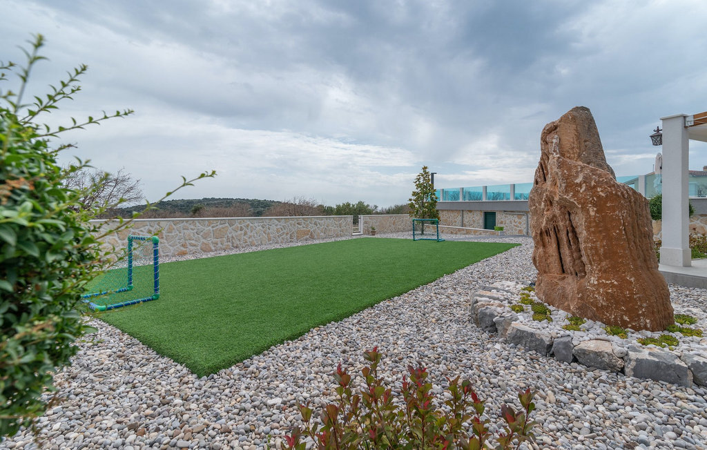 Vous vous réveillez avec l'envie de vous rafraîchir dans la piscine rafraîchissante avec jacuzzi, tandis que votre petit déjeuner est préparé dans la cuisine extérieure - bien sûr, puisque tout est à votre disposition, y compris le sauna et la salle de fitness. Pour les petits et les grands fans de football, il y a une pelouse verte et le ballon et l'intimité sont assurés puisque votre villa est entièrement clôturée.