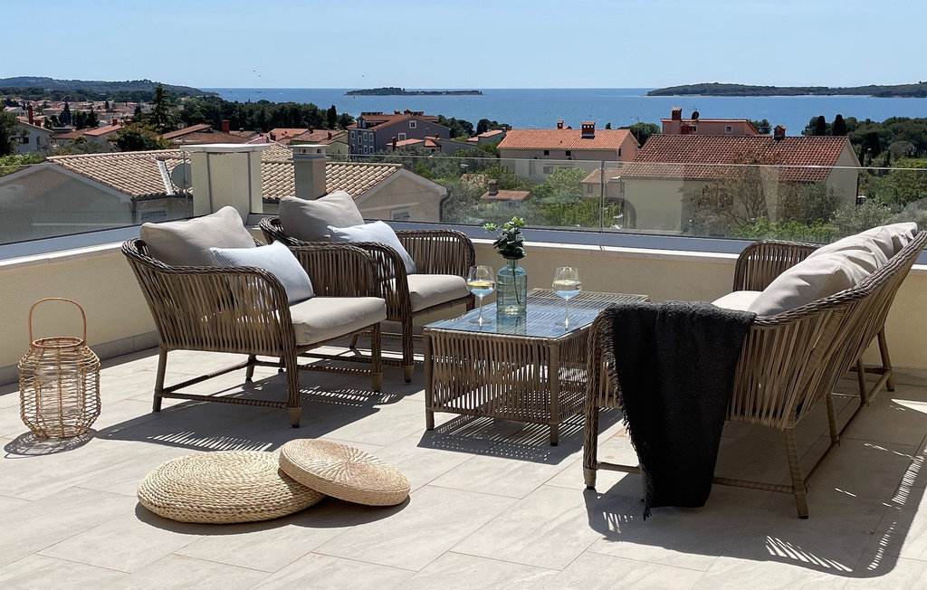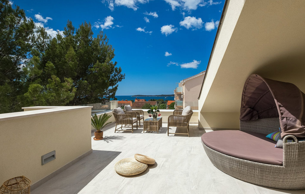 Cette villa moderne à l'intérieur chaleureux offre un hébergement confortable sur trois étages spacieux. Au rez-de-chaussée de la villa se trouvent deux chambres à coucher avec salle de bain privée, une cuisine spacieuse avec coin repas et un salon où vous pourrez déguster un café et discuter avec votre famille et vos amis. Au premier étage se trouvent un salon, 3 chambres à coucher avec salle de bains privative et un balcon. Au/au dernier étage se trouve une grande terrasse avec jacuzzi, d'où vous pourrez profiter de la vue impressionnante sur la mer et le célèbre parc national de Brijuni. Passez des soirées amusantes sur cette terrasse extérieure et profitez du ciel étoilé. Un jacuzzi est également à votre disposition pour vous détendre davantage.