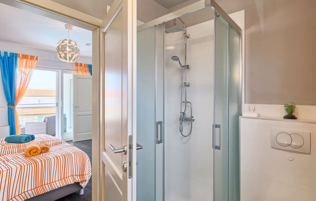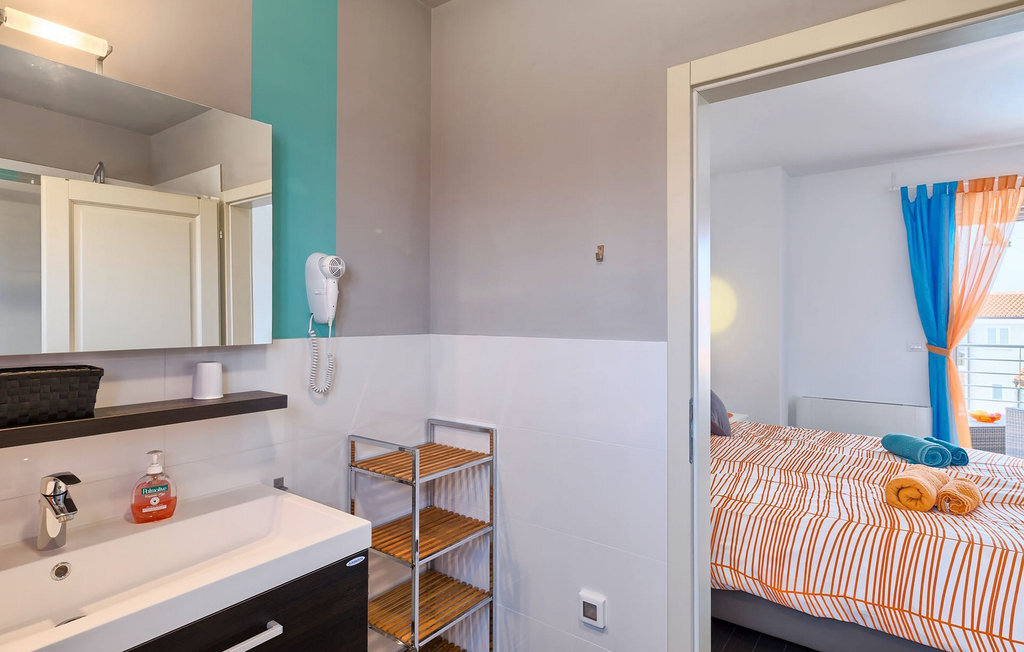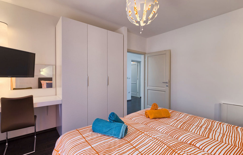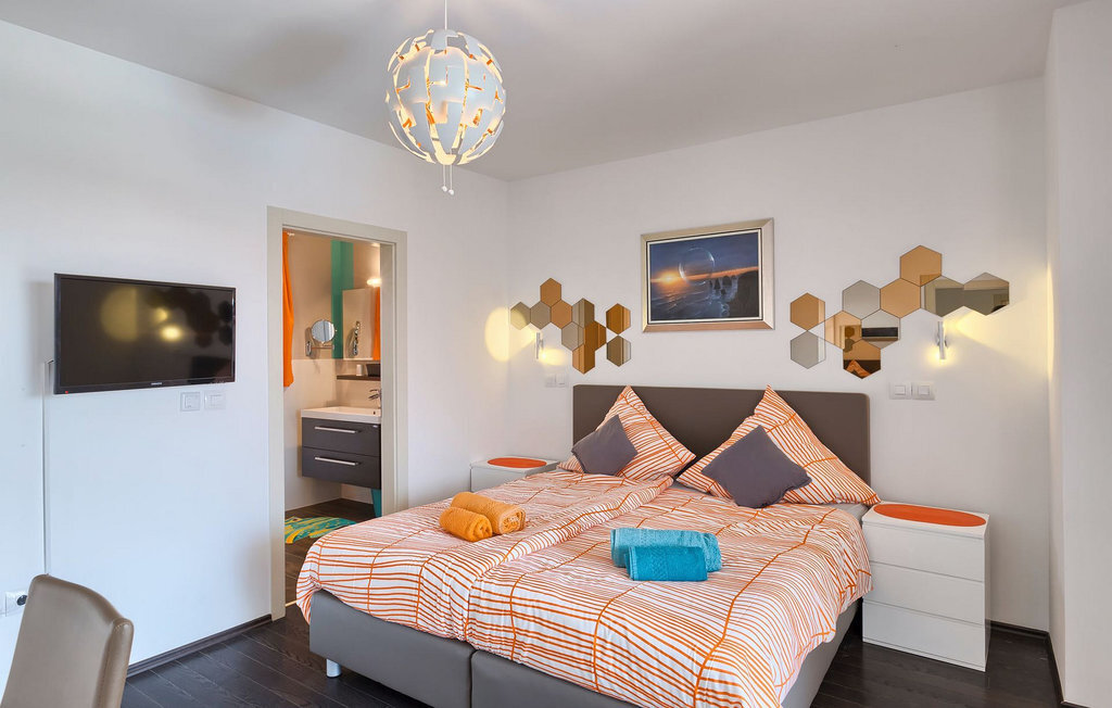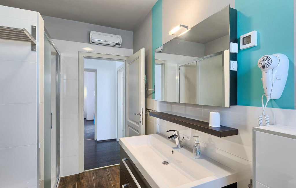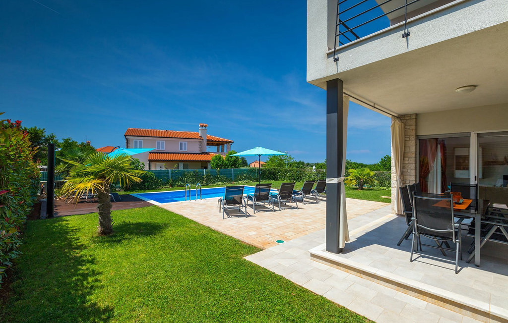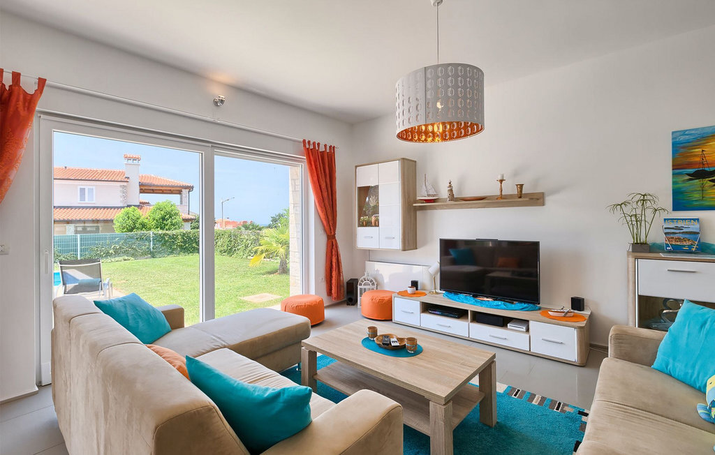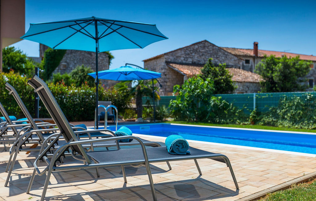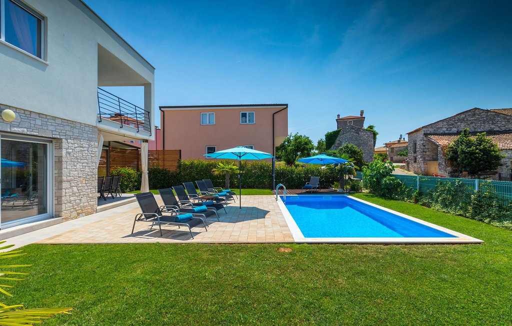 Grâce à son excellente situation au calme, cette magnifique villa résout le dilemme "campagne ou côte", car elle est entourée d'oliveraies idylliques, de collines boisées et de prairies vert émeraude, tandis que la ville côtière populaire de Novigrad se trouve à proximité immédiate, avec un large choix de boutiques, bars, cafés et restaurants, ainsi qu'une jolie marina et de nombreuses plages. Soigneusement conçue pour les vacances, cette villa de construction récente est aménagée dans un style moderne avec un magnifique collage de textures et de couleurs, créant ainsi une atmosphère chaleureuse. Les trois chambres à coucher, toutes équipées de l'air conditionné et d'une télévision à écran plat, se trouvent à l'étage supérieur, ainsi que deux salles de bains modernes avec chauffage au sol et une grande terrasse d'où l'on peut profiter d'une vue magnifique sur les oliveraies et la mer. Le rez-de-chaussée spacieux et inondé de lumière, avec son agencement ouvert, est divisé de manière très réussie en salon, cuisine et salle à manger et fait office de centre social de la maison. La cuisine est équipée d'un éclairage LED d'ambiance qui peut être réglé individuellement en fonction de l'humeur.