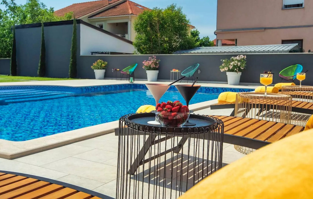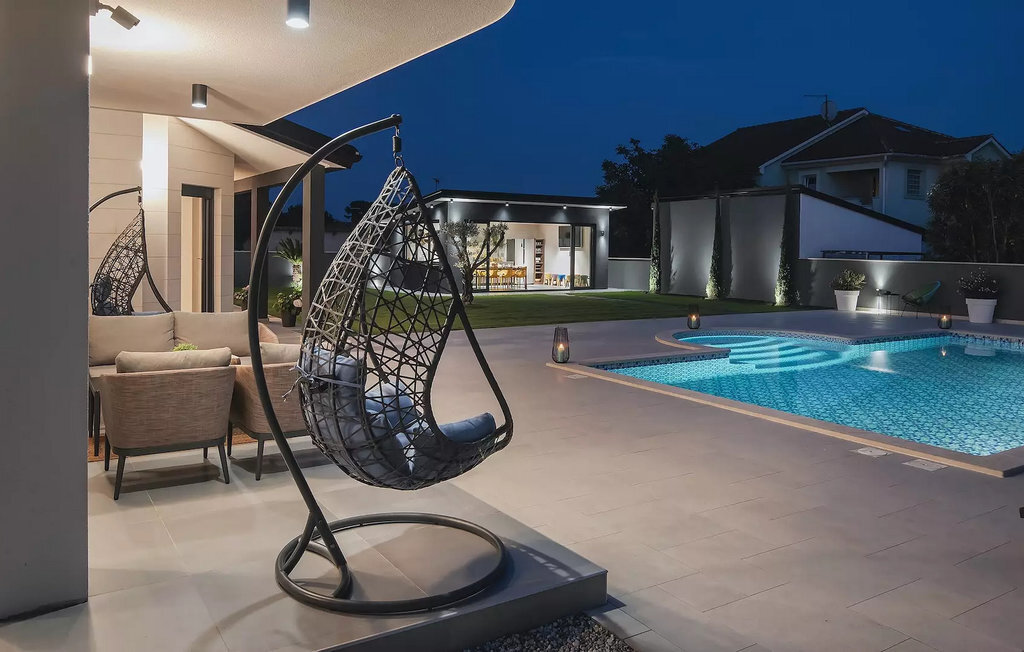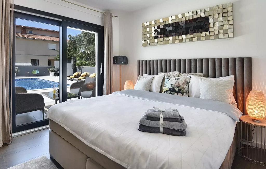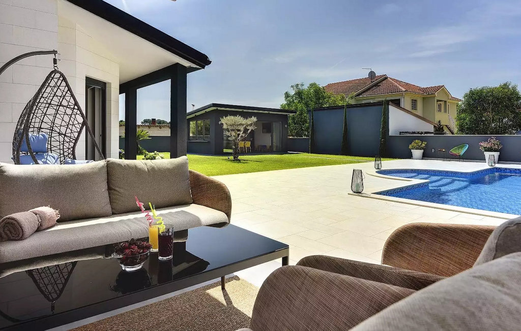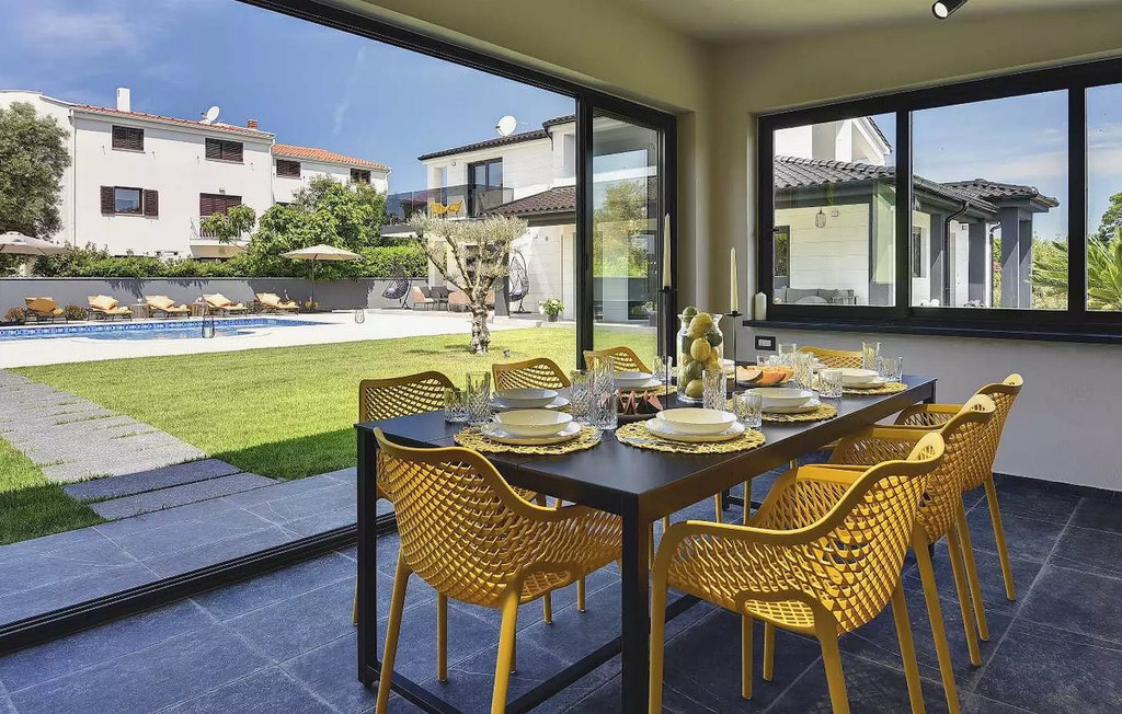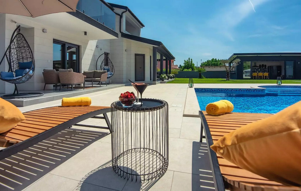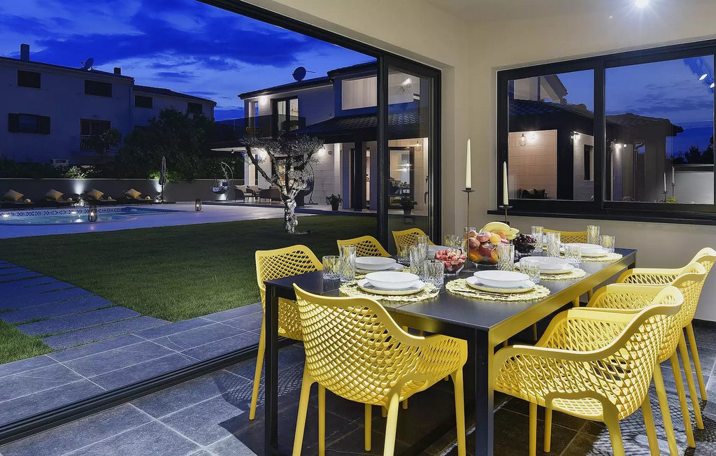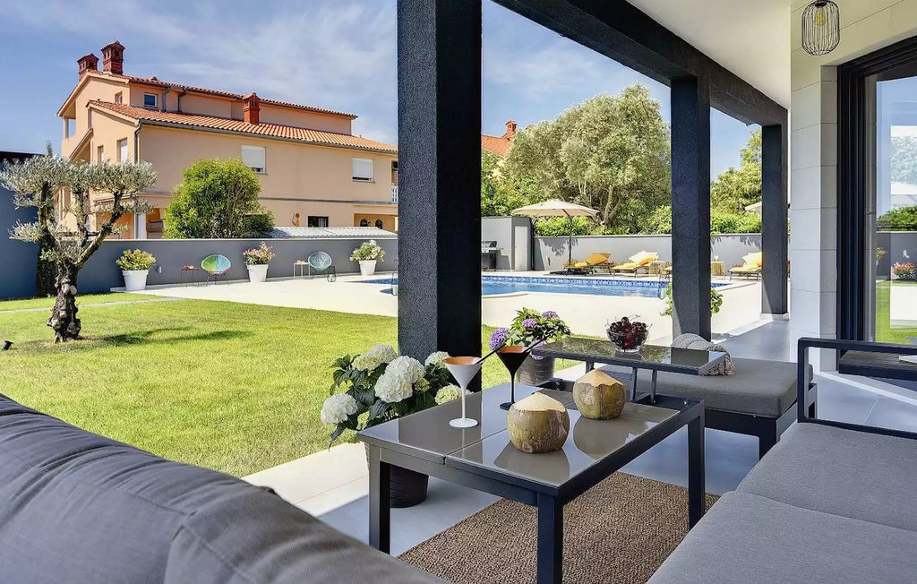Le beau jardin de la Villa D&V vous enchantera ! Ici, vous pouvez vous rafraîchir dans la grande piscine privée ou simplement vous détendre sur les chaises longues. Le jardin abrite également une grande cuisine extérieure moderne avec une table à manger où vous pourrez dîner en famille ou entre amis. Dans le jardin de la villa se trouve un olivier vieux de 80 ans.