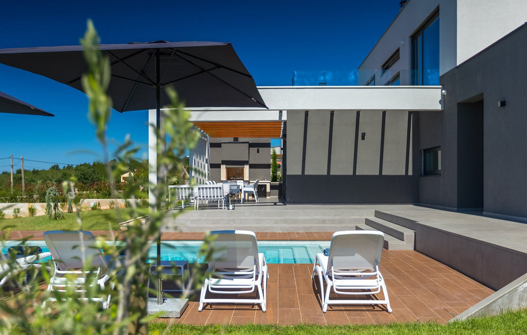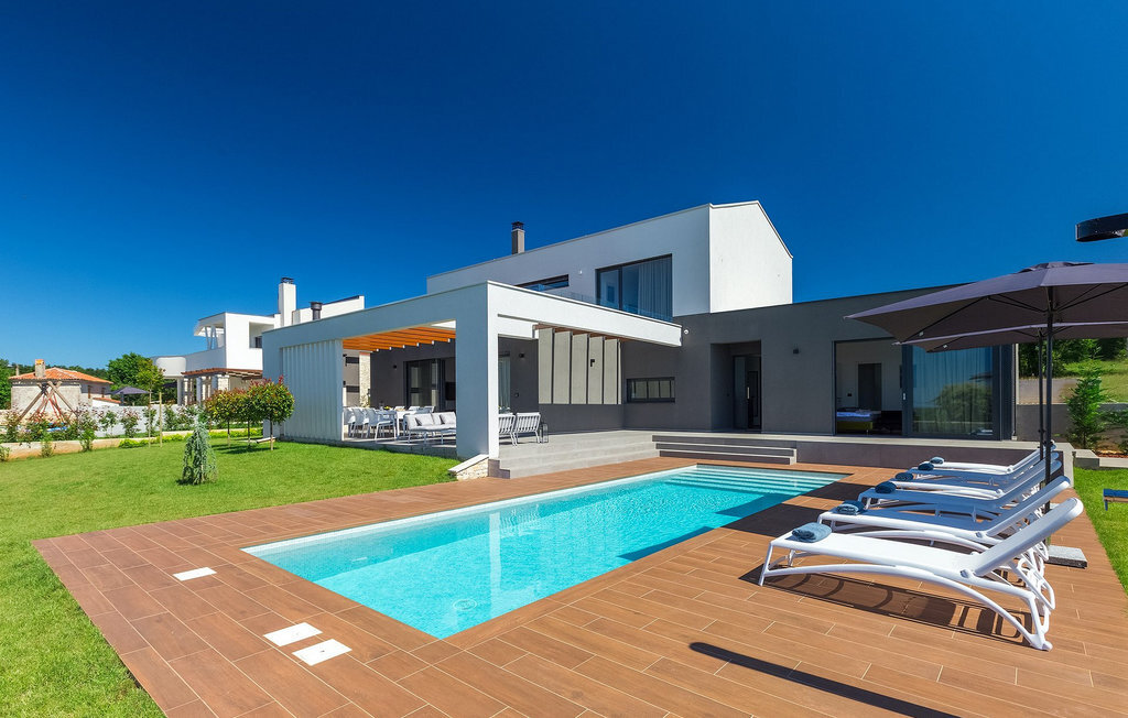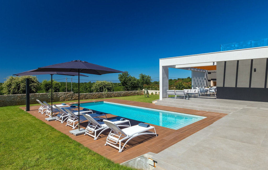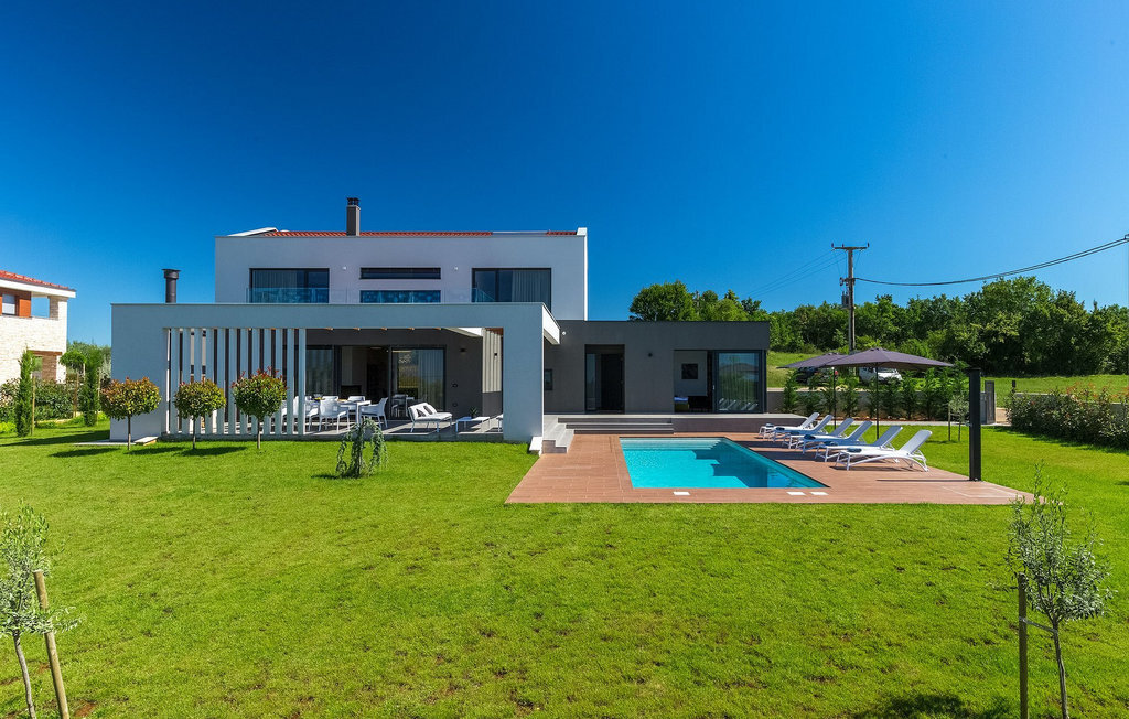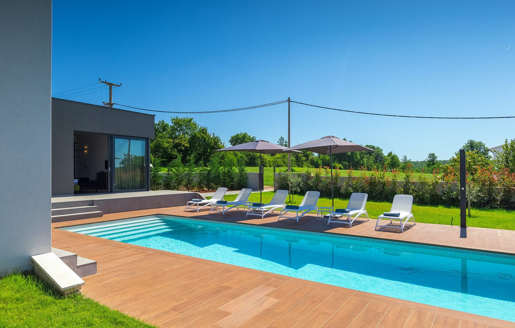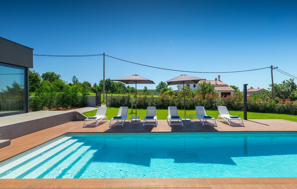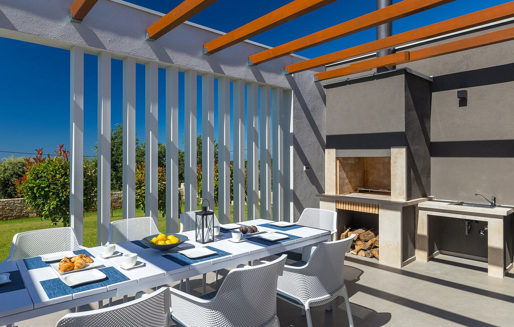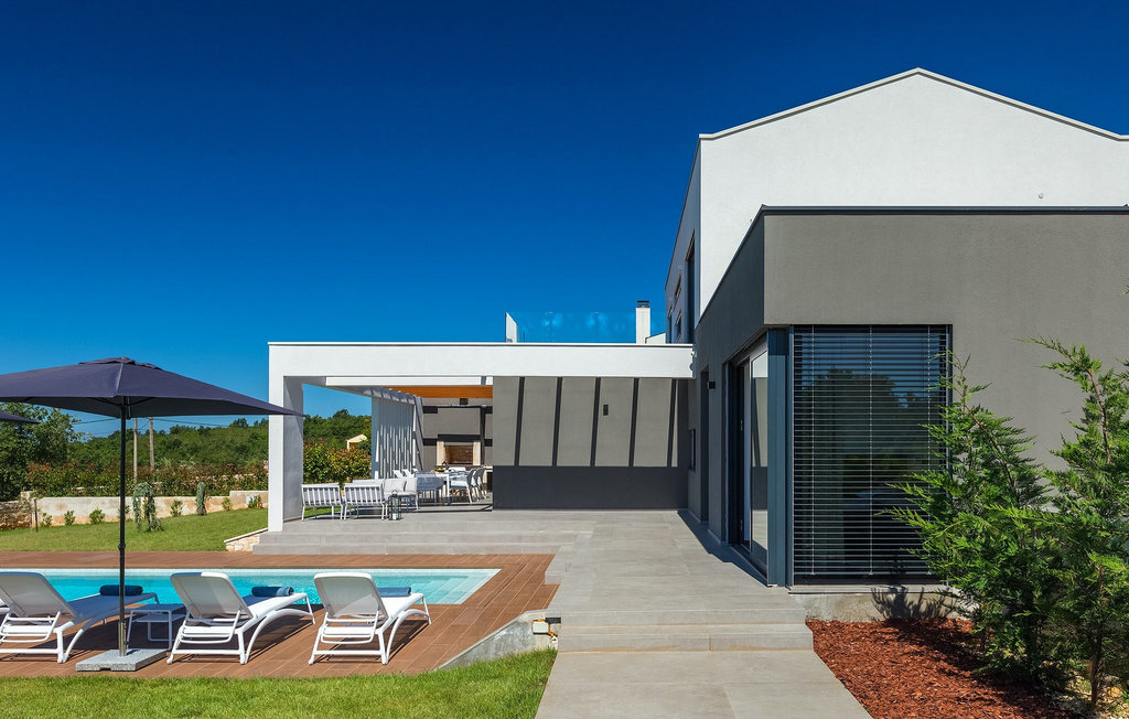 La Villa Sabina est une belle villa moderne avec piscine privée et quatre chambres à coucher. Elle peut accueillir jusqu'à 8 personnes. Dans le jardin de la villa, vous trouverez une piscine privée qui vous rafraîchira les jours de grande chaleur, ainsi que des chaises longues sur lesquelles vous pourrez vous détendre. Près de la piscine, un salon confortable est à votre disposition, où vous pourrez profiter de votre première tasse de café ou de thé le matin. Il y a également une salle à manger en plein air avec un barbecue où vous pourrez mettre en pratique vos talents de grilliste. Le salon est idéal pour les repas en plein air en famille ou entre amis.