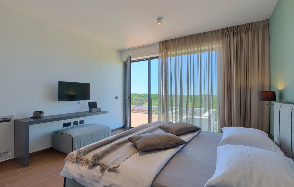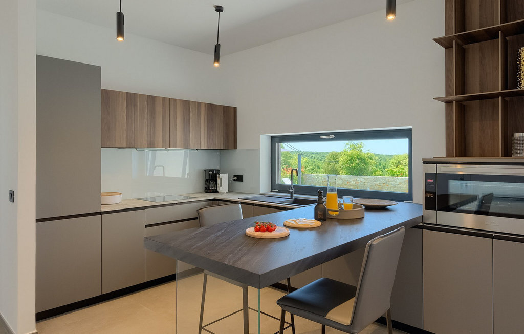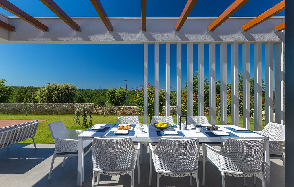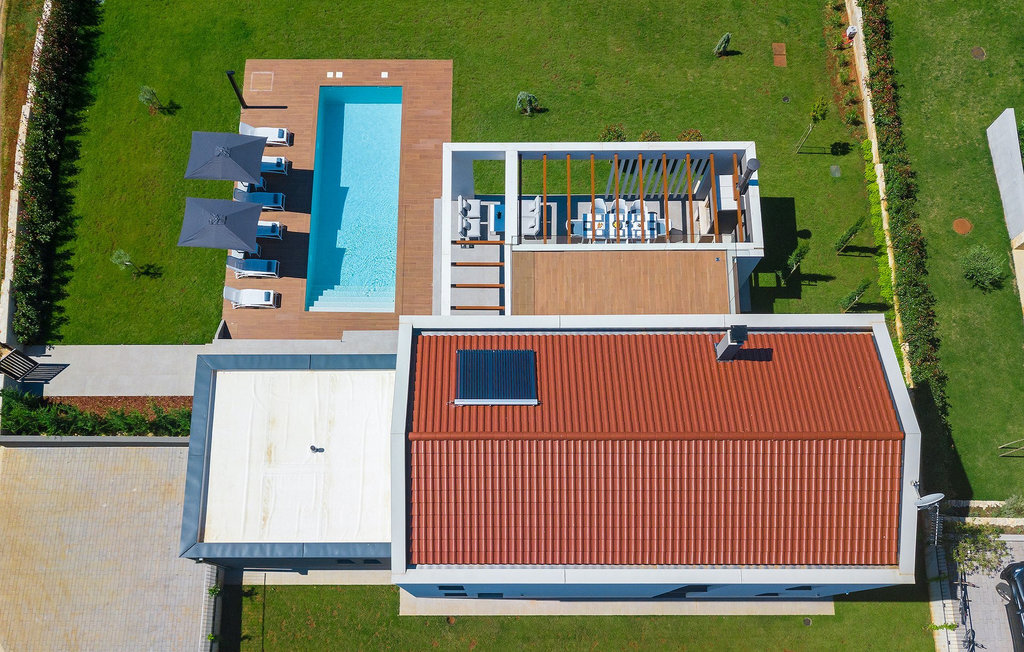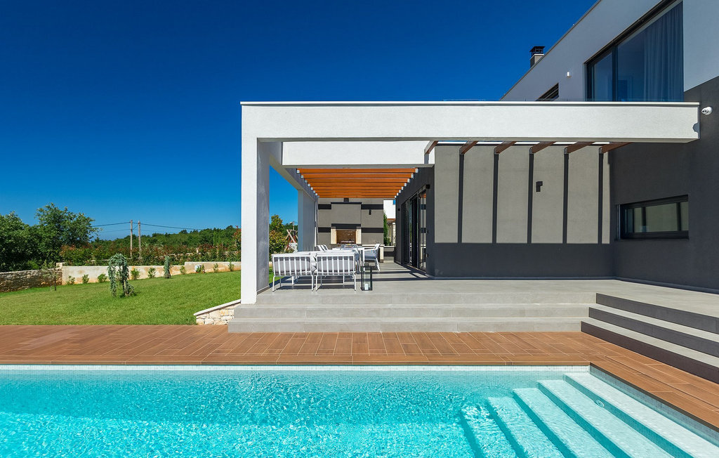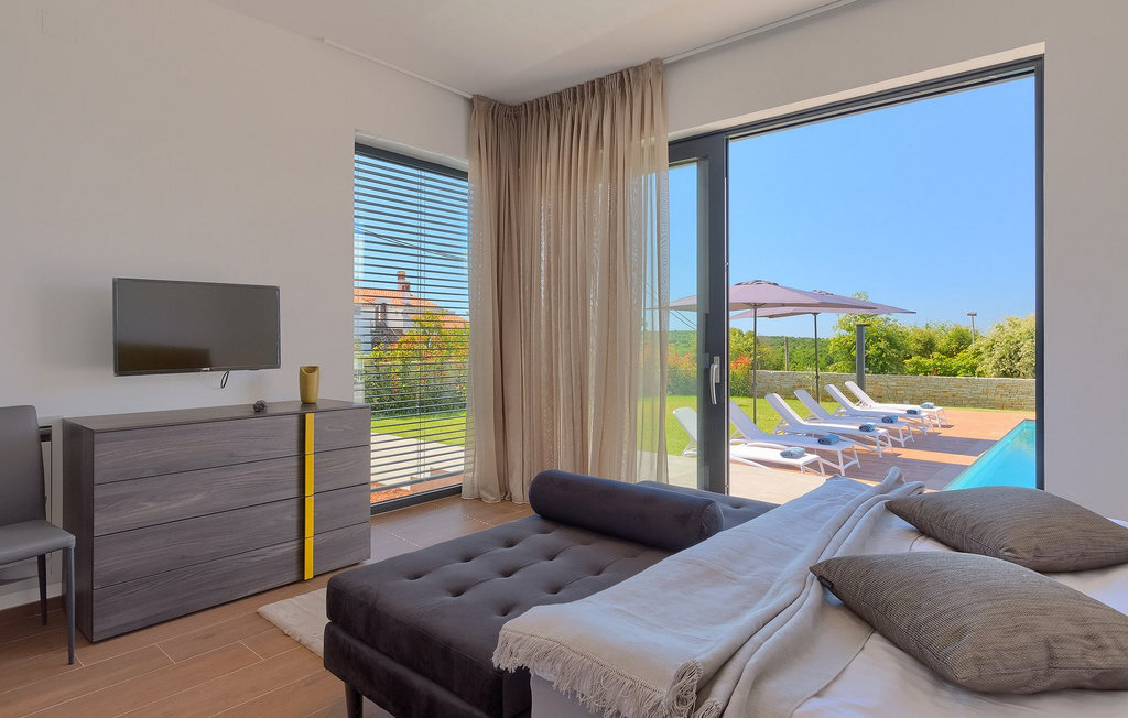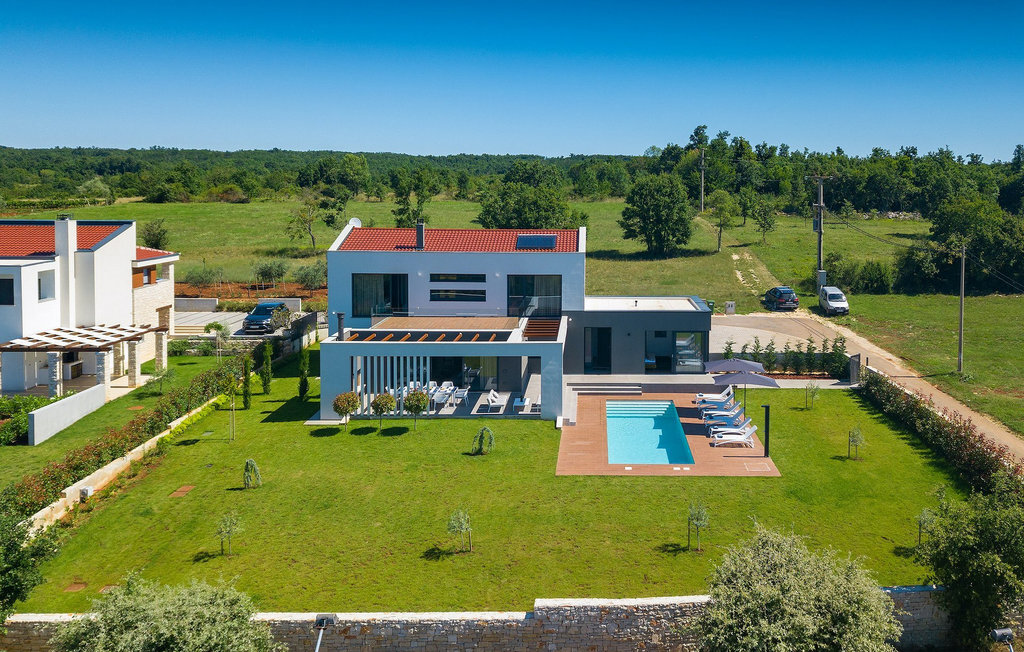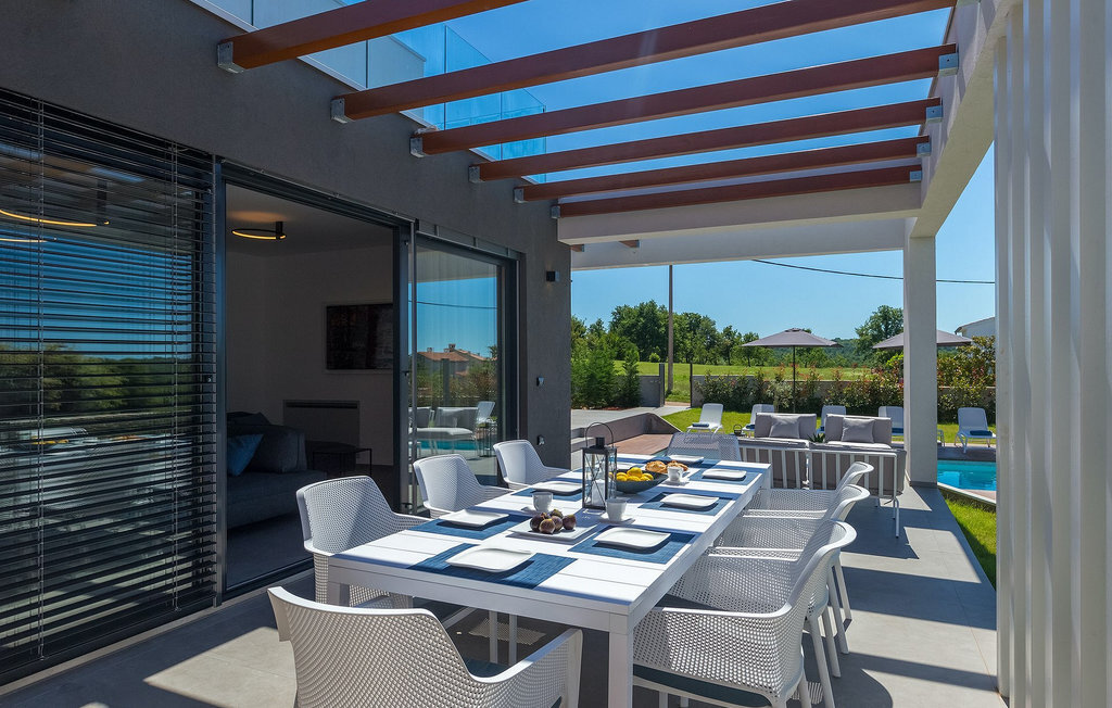 La Villa Sabina est une belle villa moderne avec piscine privée et quatre chambres à coucher. Elle peut accueillir jusqu'à 8 personnes. Dans le jardin de la villa, vous trouverez une piscine privée qui vous rafraîchira les jours de grande chaleur, ainsi que des chaises longues sur lesquelles vous pourrez vous détendre. Près de la piscine, un salon confortable est à votre disposition, où vous pourrez profiter de votre première tasse de café ou de thé le matin. Il y a également une salle à manger en plein air avec un barbecue où vous pourrez mettre en pratique vos talents de grilliste. Le salon est idéal pour les repas en plein air en famille ou entre amis.
