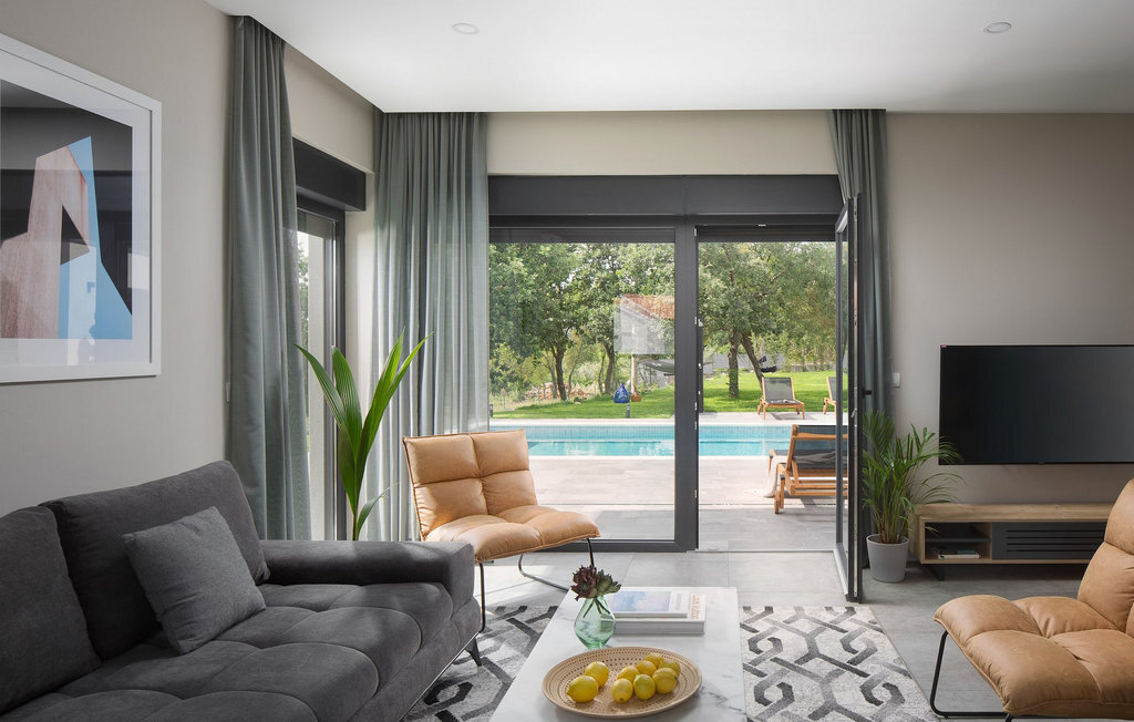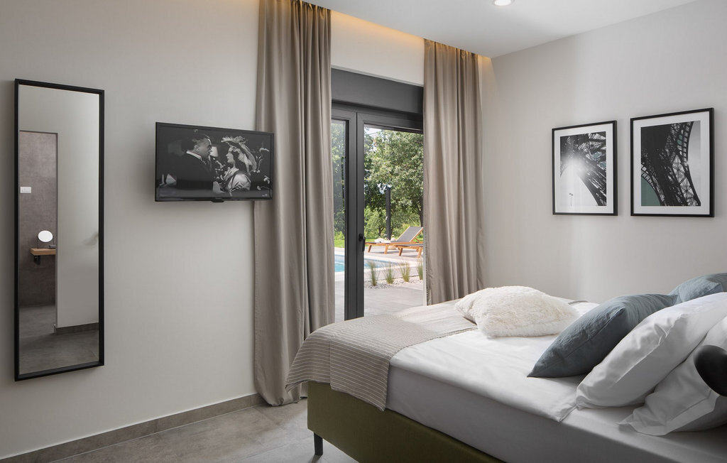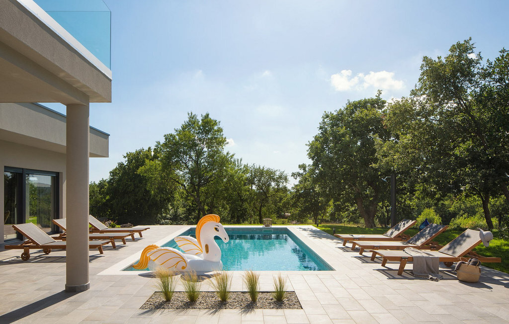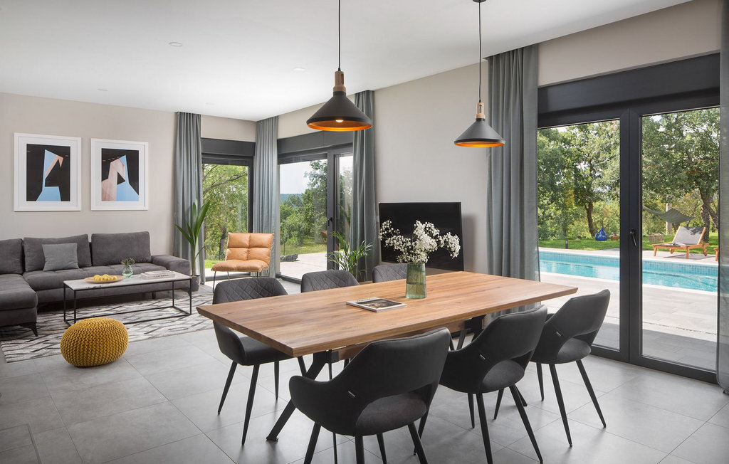 La Villa Sent est une villa moderne avec une piscine privée et une belle vue panoramique sur le paysage idyllique de l'Istrie. Si vous rêvez de vacances parfaites, la Villa Sent est le choix idéal pour vous. Au rez-de-chaussée de la villa se trouvent le salon, la salle à manger et la cuisine. Vous y trouverez également une chambre à coucher avec une salle de bain en suite, toutes deux adaptées aux personnes à mobilité réduite. Au premier étage se trouvent deux autres chambres à coucher avec salle de bain en suite. Il y a également un balcon au premier étage, où vous pourrez profiter de la soirée avec une belle vue. Au sous-sol, il y a une salle de jeux dans laquelle se trouvent un baby-foot, une table de ping-pong, un billard et des fléchettes. Si vous faites du yoga ou aimez faire du sport, cette salle est parfaite pour cela, car elle dispose d'un appareil de fitness Orbitrek qui vous permettra de rester en pleine forme pendant vos vacances. À l'extérieur, vous trouverez une salle à manger couverte et une cuisine où vous pourrez préparer et savourer vos repas. Autour de la piscine, vous trouverez des chaises longues sur lesquelles vous pourrez vous détendre. La grande piscine offre à votre corps une détente et un rafraîchissement bien mérités lors des chaudes journées d'été. Détendez-vous au soleil, savourez une boisson fraîche ou promenez-vous sur le vaste terrain qui s'étend sur 4900 m2 et qui abrite une magnifique oliveraie. Réservez dès maintenant la Villa Sent et laissez vos rêves devenir réalité. La ville médiévale de Labin se trouve sur un plateau au-dessus de la ville côtière de Rabac et est également le centre historique et administratif de l'Istrie orientale. Les premières habitations de la région datent de l'âge du bronze lointain et toute la région, avec son riche patrimoine culturel et architectural, est un paradis pour les amateurs d'histoire et d'art. À seulement trois kilomètres de la villa se trouve la commune de Rabac, un village de pêcheurs côtiers, également mieux connu sous le nom de "Perle de Kvarner". Depuis Labin, vous pouvez planifier de nombreuses excursions, car toute la région est reliée entre elles par de bonnes routes principales. Si vous souhaitez visiter de grandes villes côtières comme Pula, Porec et Rovinj, elles sont toutes trois à environ une heure de route. Il y a également de nombreuses pistes cyclables dans les environs. Si vous souhaitez explorer la magnifique nature, ne manquez pas la villa Sent.