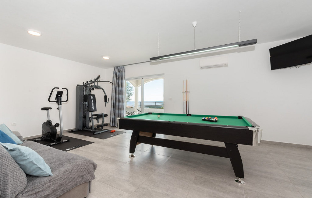 La Villa Dream View est une villa moderne située sur une colline et offrant une vue panoramique sur la mer. La villa dispose d'une piscine privée et d'une salle de jeux, de quatre chambres et peut accueillir jusqu'à 8 personnes. Rafraîchissez-vous et détendez-vous dans la piscine privée pendant les chaudes journées d'été, avec une boisson fraîche à la main ou votre livre préféré. Sur la terrasse se trouve un jacuzzi, parfait pour se détendre pendant les chaudes soirées d'été, lorsque le soleil se couche. Un barbecue est à votre disposition pour préparer vos repas et libérer votre chef intérieur, et la salle à manger en plein air est l'endroit idéal pour dîner en famille. Au rez-de-chaussée de la villa se trouvent une cuisine avec salle à manger et une salle de jeux. On y trouve également une table de billard, un sauna, un appareil de fitness multifonctionnel et aussi une douche séparée. Grâce aux appareils de sport, vous ne devez pas renoncer à votre entraînement quotidien pendant vos vacances. Au premier étage se trouvent une cuisine, une salle à manger et un salon, quatre chambres à coucher et quatre salles de bains. Une des chambres est équipée de deux lits simples. Deux chambres ont des salles de bains en suite. Au premier étage se trouve une petite terrasse sur laquelle se trouve une petite table à manger, parfaite pour le premier café du matin ou une tasse de thé avec une vue parfaite sur la mer. C'est une villa dont vous rêvez. Réservez la villa Dream View et réalisez vos rêves!Koromacno est une petite localité située dans la commune de Rasa, dans la partie sud-est de l'Istrie. Il s'agit d'une région à la nature magnifique et paisible, avec de nombreuses baies, plages et collines. Cette région est connue pour ses pistes cyclables et ses sentiers de randonnée, ainsi que pour ses nombreux et beaux sites de plongée. À environ 15-20 kilomètres de la villa se trouvent les villes de Labin et Rabac, deux villes voisines. Rabac est une ville côtière et Labin se trouve à quelques kilomètres à l'intérieur de l'Istrie. La ville de Labin est un endroit parfait pour les amateurs d'art et d'histoire, et la ville de Rabac est connue pour ses belles plages et son excellente gastronomie. Si vous souhaitez explorer la région plus large de l'Istrie, vous pouvez planifier des excursions en voiture vers Pula et Rovinj, deux anciennes villes romaines sur la côte. Toutes deux se trouvent à environ une heure de route et vous pouvez passer toute la journée à les explorer, car elles regorgent de sites historiques célèbres - comme les arènes de Pula et l'église Sainte-Euphémie à Rovinj.