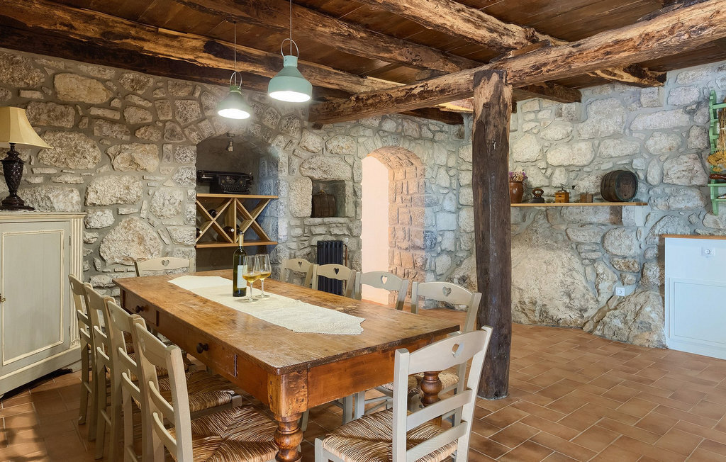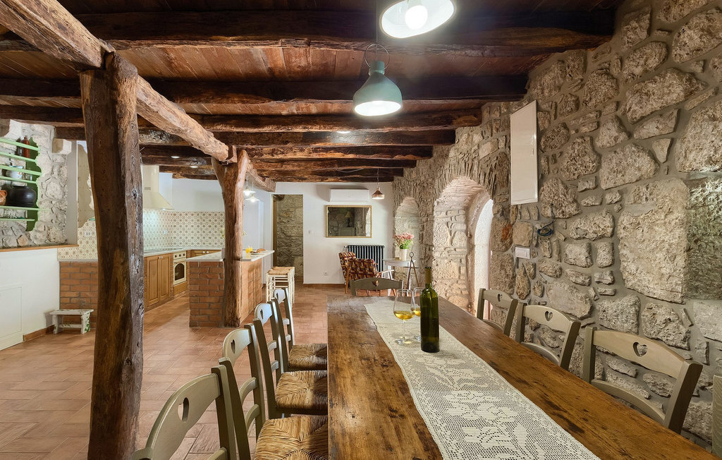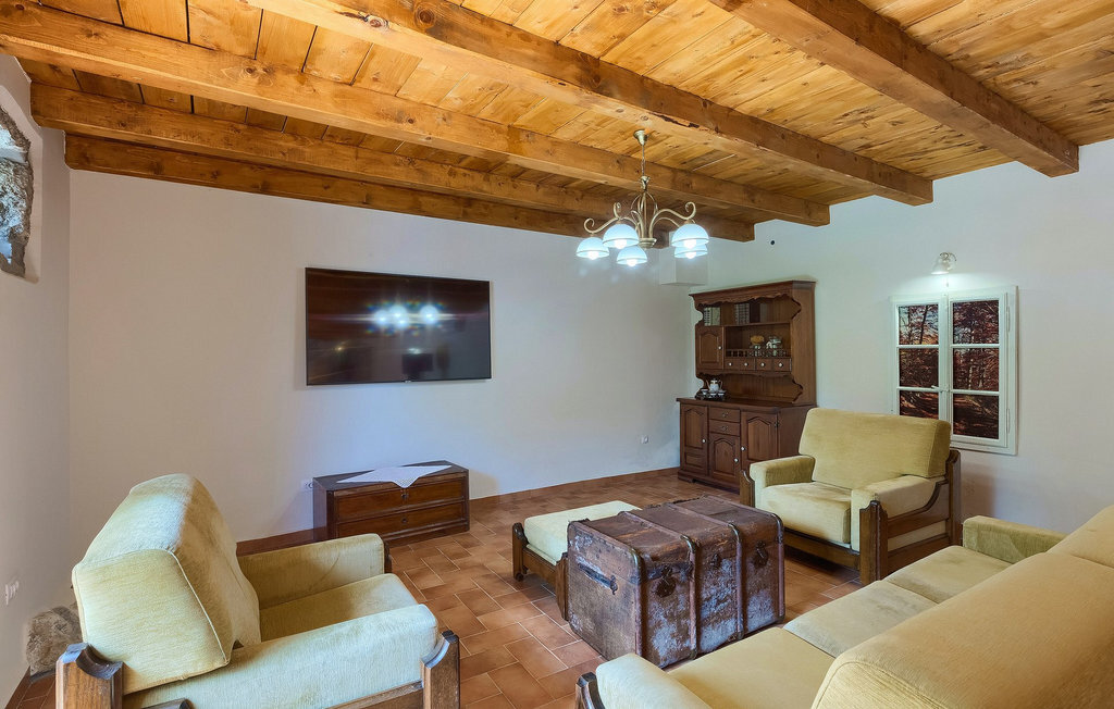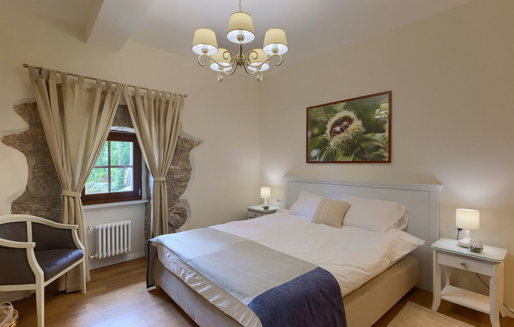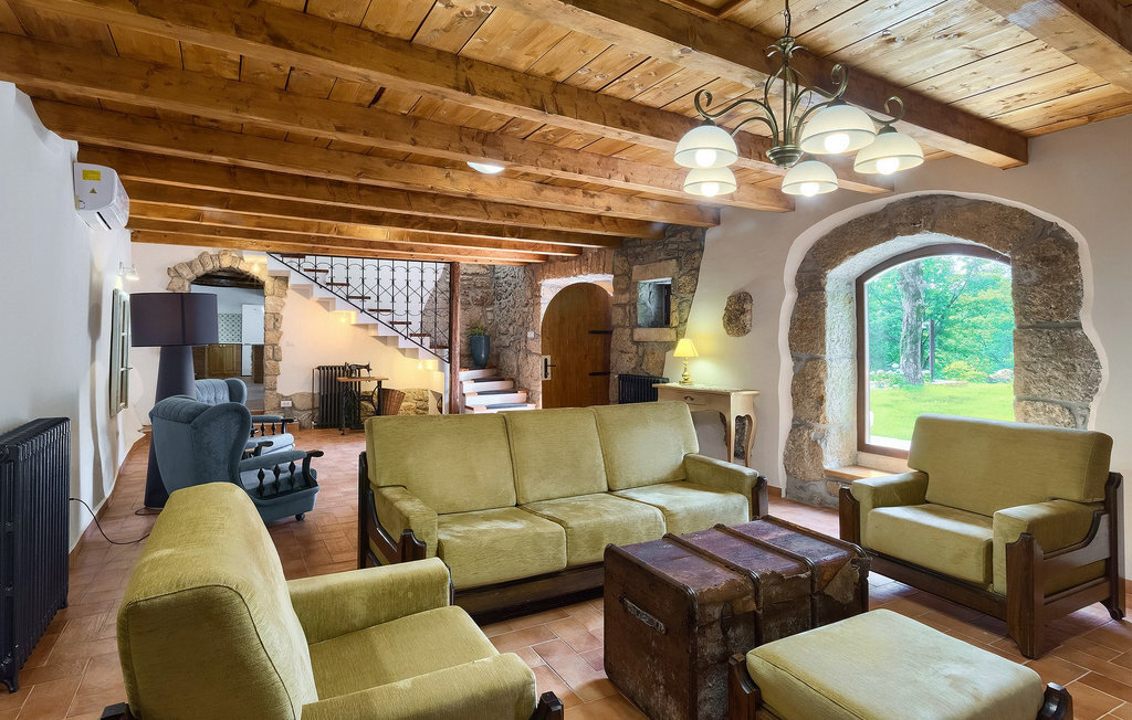 Vous souhaitez passer vos vacances dans une magnifique villa traditionnelle située à l'orée d'une forêt de châtaigniers ? Un séjour tranquille et relaxant dans la magnifique Villa Lumaca, aménagée avec soin, est alors votre choix ! Cette superbe villa en pierre vous enchantera avec ses détails vintage et son aménagement rustique qui allie avec succès la pierre et le bois. Au rez-de-chaussée de la villa, vous trouverez un grand espace de vie avec une cuisine authentique, un salon et une salle à manger séparée par des arches en pierre. Choyé par des objets qui rappellent un peu la cuisine de grand-mère, vous pourrez y préparer vos plats préférés ainsi que sur le barbecue dans le jardin. Au premier étage se trouvent 4 chambres à coucher agréables avec de beaux détails, chaque chambre dans l'harmonie de couleurs appropriée avec des éléments en pierre reconnaissables pour Villa Lumaca. Chaque chambre dispose également de la climatisation, d'une télévision et d'une salle de bain privée adaptée. Si vous souhaitez vous détendre complètement et reposer votre regard sur l'environnement verdoyant, vous pouvez passer vos vacances à côté de la piscine privée. Que vous preniez le soleil sur les chaises longues, que vous planifiiez une randonnée dans les environs ou que vous prépariez des grillades, le beau jardin de la villa ne vous décevra pas ! La Villa Lumaca vous attend !