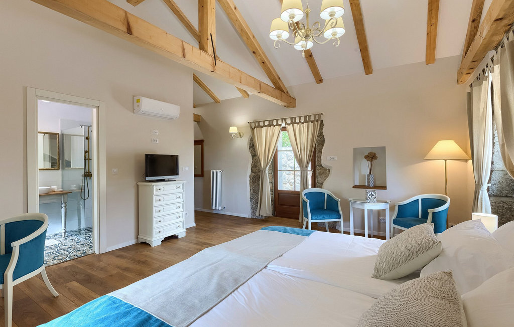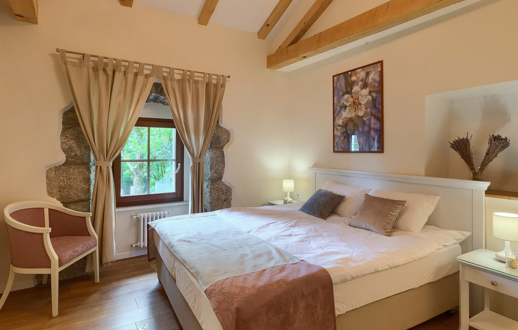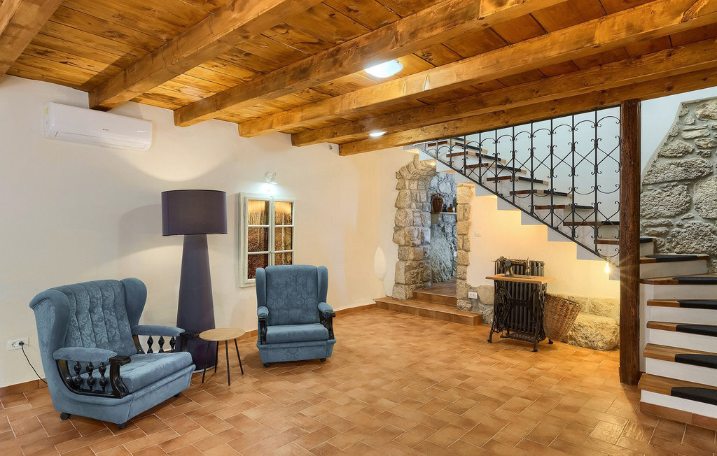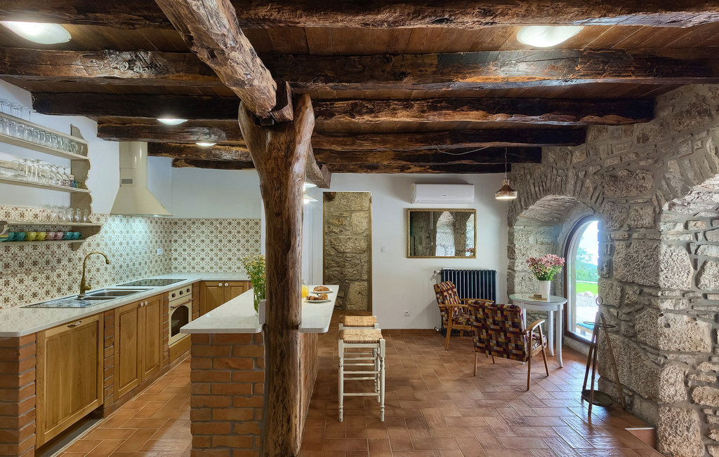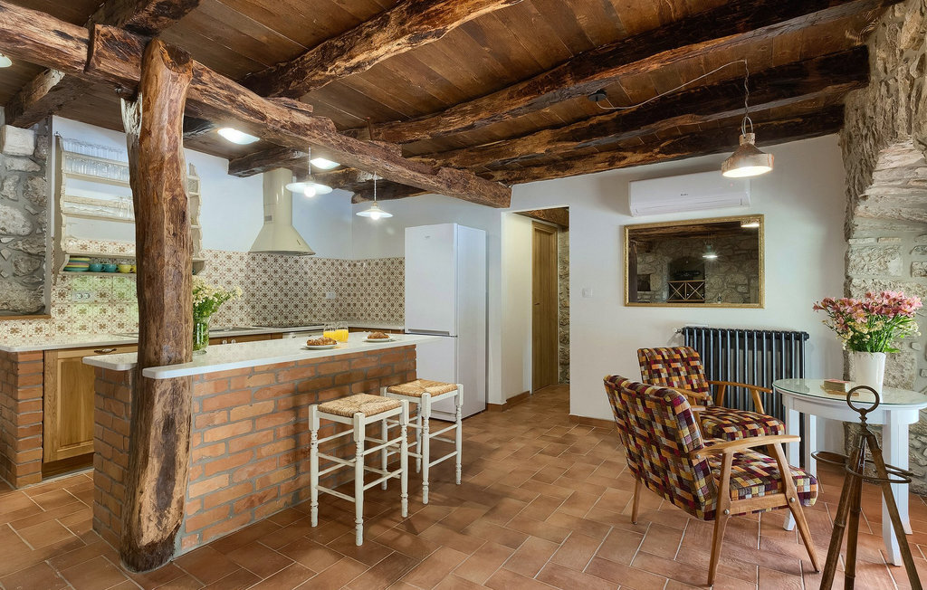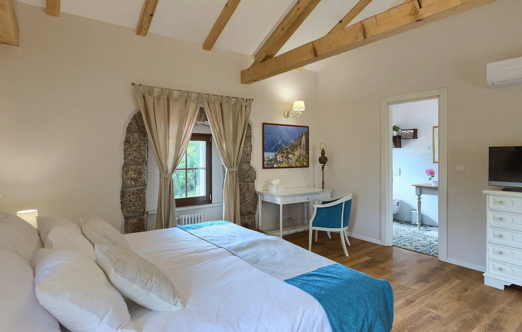 Vous souhaitez passer vos vacances dans une magnifique villa traditionnelle située à l'orée d'une forêt de châtaigniers ? Un séjour tranquille et relaxant dans la magnifique Villa Lumaca, aménagée avec soin, est alors votre choix ! Cette superbe villa en pierre vous enchantera avec ses détails vintage et son aménagement rustique qui allie avec succès la pierre et le bois. Au rez-de-chaussée de la villa, vous trouverez un grand espace de vie avec une cuisine authentique, un salon et une salle à manger séparée par des arches en pierre. Choyé par des objets qui rappellent un peu la cuisine de grand-mère, vous pourrez y préparer vos plats préférés ainsi que sur le barbecue dans le jardin. Au premier étage se trouvent 4 chambres à coucher agréables avec de beaux détails, chaque chambre dans l'harmonie de couleurs appropriée avec des éléments en pierre reconnaissables pour Villa Lumaca. Chaque chambre dispose également de la climatisation, d'une télévision et d'une salle de bain privée adaptée. Si vous souhaitez vous détendre complètement et reposer votre regard sur l'environnement verdoyant, vous pouvez passer vos vacances à côté de la piscine privée. Que vous preniez le soleil sur les chaises longues, que vous planifiiez une randonnée dans les environs ou que vous prépariez des grillades, le beau jardin de la villa ne vous décevra pas ! La Villa Lumaca vous attend !