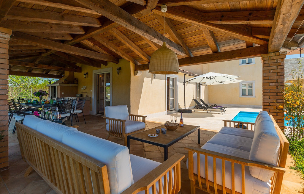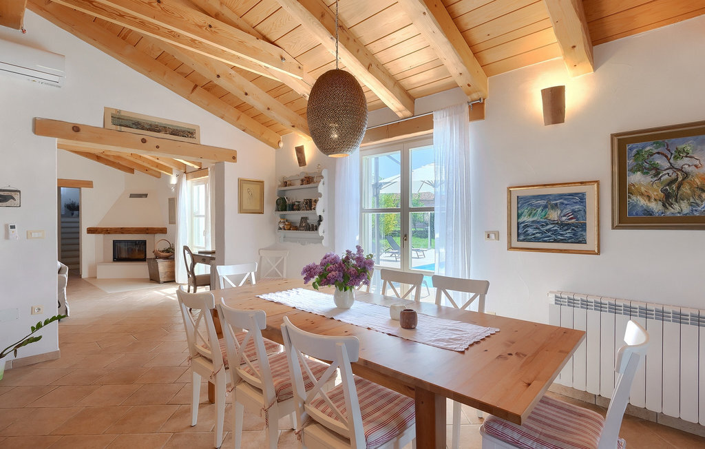 La belle villa Lavanda Savicenta se trouve dans le petit hameau de Rojnici, dans la commune de Barban. La villa familiale peut accueillir jusqu'à 10 personnes au total. Le rez-de-chaussée se compose d'un salon spacieux avec cheminée, d'un coin repas, d'une cuisine entièrement équipée et de deux chambres à coucher avec salle de bains privative. À l'étage, vous trouverez deux autres chambres à coucher, également avec salle de bain privée. Au total, la villa dispose de quatre chambres, dont deux sont équipées d'un lit double et les deux autres de deux lits simples. Devant la villa se trouve une piscine privée de 40m2 dans laquelle vous pouvez prendre un bain rafraîchissant ou vous détendre sur l'une des confortables chaises longues. À côté de la piscine se trouve une salle à manger couverte avec un barbecue au charbon de bois, où vous pourrez préparer de délicieux repas pour votre famille et vos amis. La villa est le choix parfait pour une grande famille avec des enfants ou un groupe d'amis qui souhaitent passer des vacances relaxantes en Istrie.Cette charmante villa est située dans un petit village de Rojnii, dans la commune de Barban. Toutes les installations nécessaires, comme les magasins, les cafés et les restaurants, se trouvent à proximité de la villa. Si vous souhaitez passer vos vacances au bord de la mer Adriatique turquoise, la première plage se trouve à 18 kilomètres, à Trget. L'emplacement de la villa est un point de départ idéal pour de nombreuses excursions d'une journée. Nous vous recommandons de visiter des villes côtières comme Pula et son magnifique amphithéâtre, Rovinj et ses nombreuses maisons colorées et Pore et sa basilique d'Euphrasius, classée au patrimoine culturel de l'UNESCO. Une destination incontournable pour tous les amoureux de la nature est le seul parc national d'Istrie, Brijuni. Cet endroit magique vous séduira par ses belles plages, sa nature intacte et ses nombreux animaux sauvages. L'Istrie centrale est idéale pour tous les amateurs de sports actifs et de gastronomie. Visitez la vallée de la rivière Mirna et de nombreuses villes sur les collines, comme Motovun, Gronjan et Buzet.