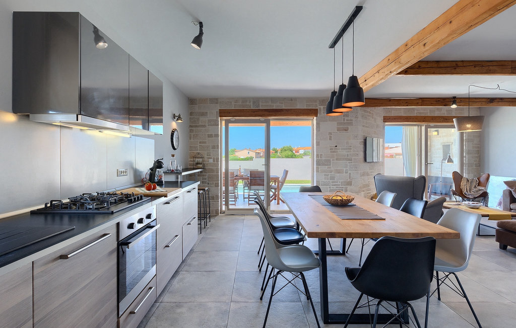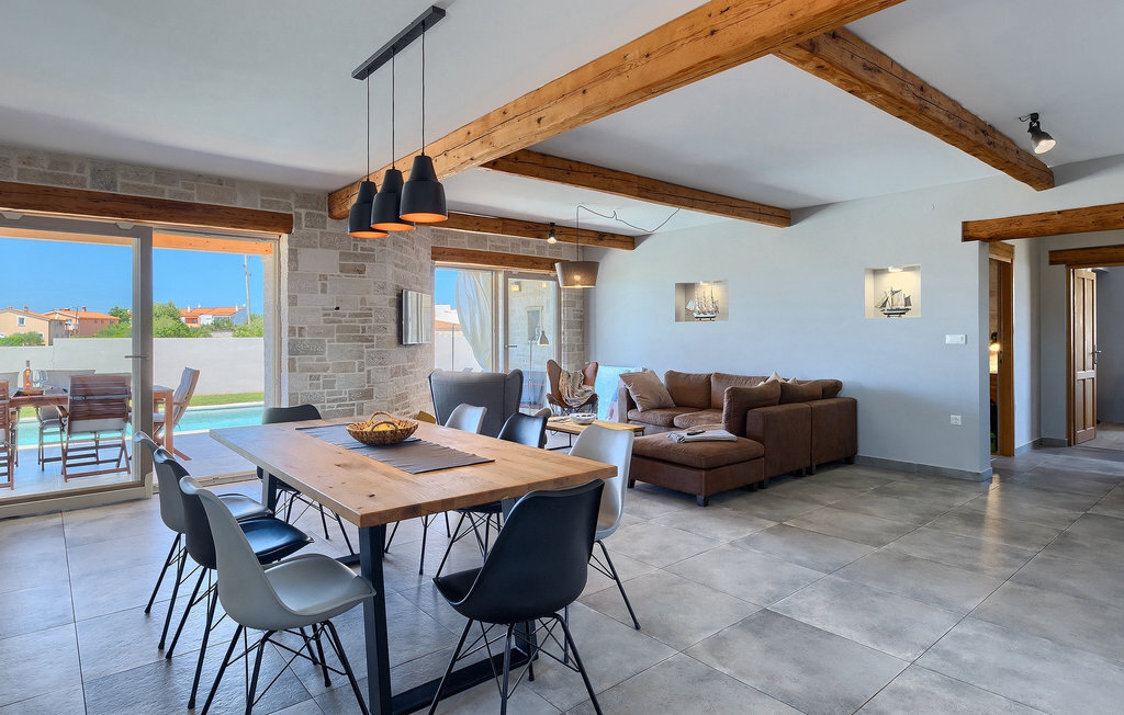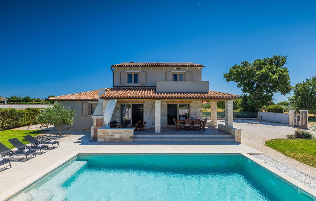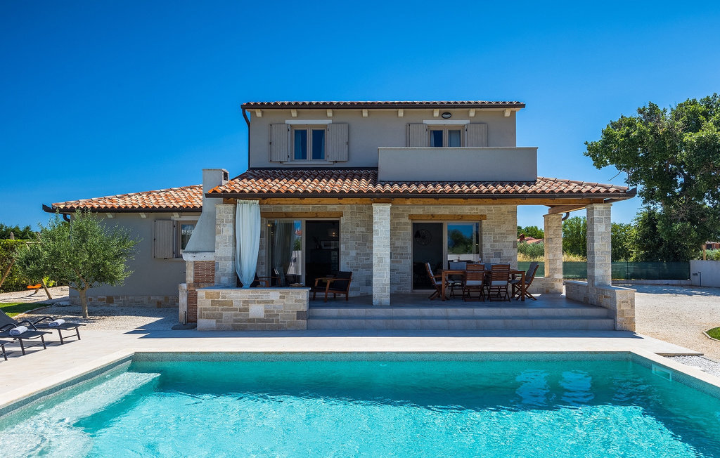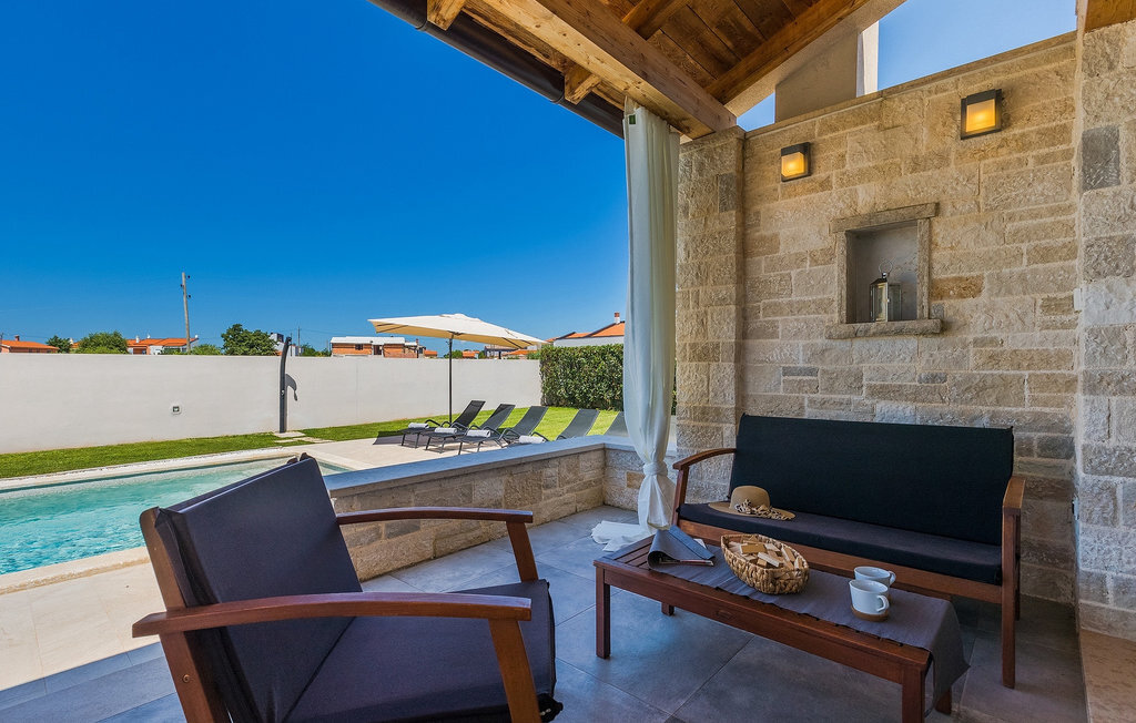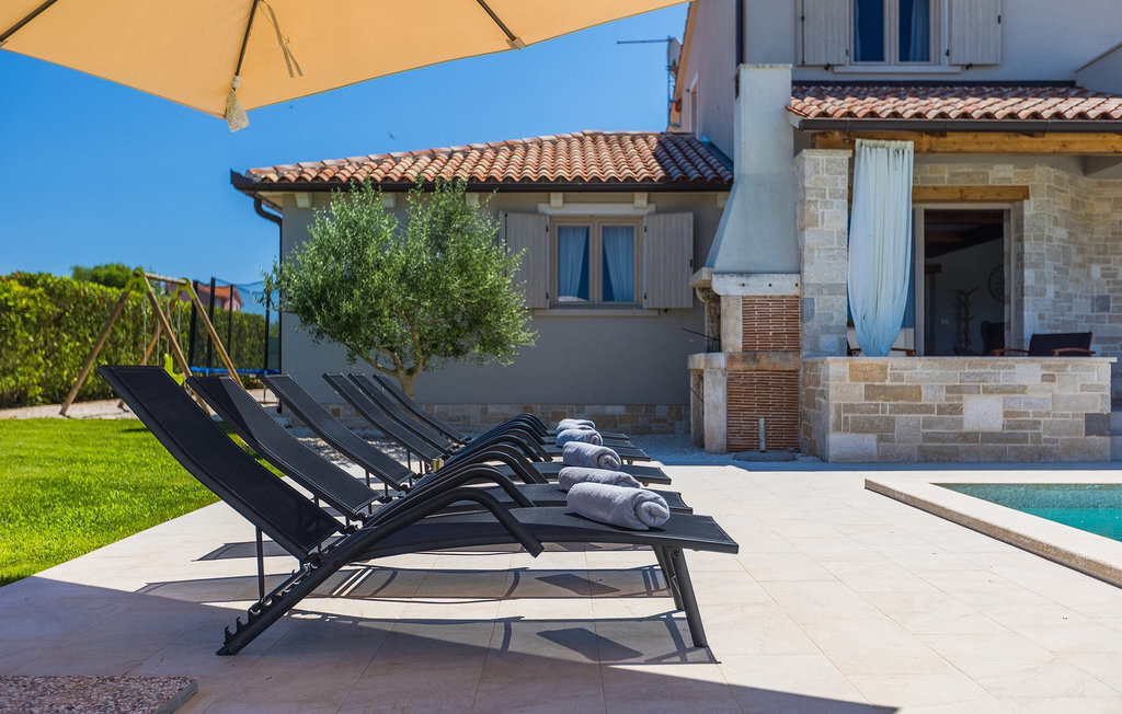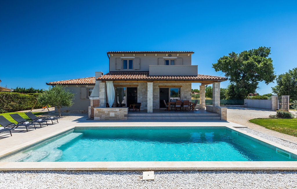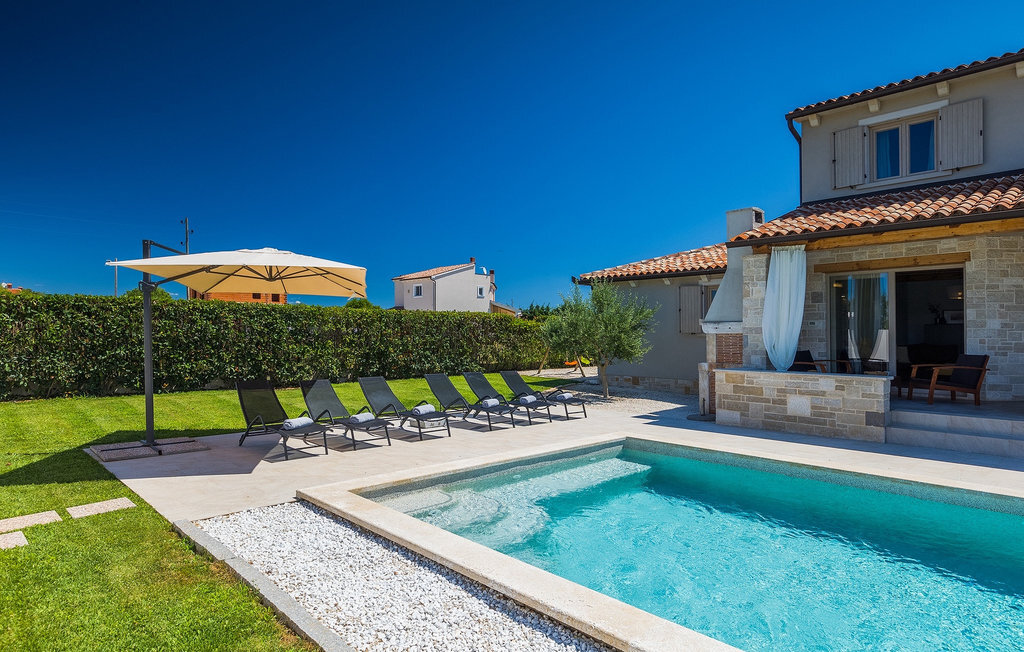 La Villa Prato est une magnifique villa située dans le sud de l'Istrie, près de Pula. La villa est moderne, très confortable et aménagée avec charme. Le rez-de-chaussée de la villa dispose d'une cuisine entièrement équipée et d'un salon avec coin repas qui offrent une belle vue sur le jardin et la piscine. Au premier étage de la villa se trouvent quatre chambres à coucher confortables, dont trois ont un lit double et une chambre double avec deux lits simples. Outre les chambres, le premier étage comprend trois salles de bains modernes et une terrasse avec une vue unique sur la magnifique nature istrienne. Dans le grand jardin, il y a une piscine de 32 m2 qui offre des rafraîchissements pendant les chaudes journées d'été, ainsi qu'une aire de jeux pour les enfants. Dans la partie couverte de la terrasse se trouve un coin repas où vous pourrez déguster des plats istriens accompagnés d'un verre de malvazija. Si vous souhaitez faire une pause dans votre quotidien, la Villa Prato est le choix idéal pour votre famille et vos amis.La magnifique Villa Prato est située près du petit village de Loborika, sur le côté sud de la péninsule istrienne. L'emplacement de la villa offre un équilibre parfait entre tranquillité et plaisirs privés, loin de l'agitation de la ville et de la foule de touristes, tout en étant proche de toutes les villes importantes d'Istrie. Pula, la plus grande ville d'Istrie, n'est pas loin de la villa et est mondialement connue pour son étonnant colisée, un amphithéâtre antique construit au 1er siècle sous le règne de l'empereur romain Vespasien.