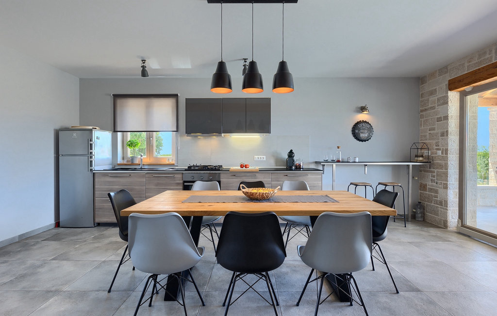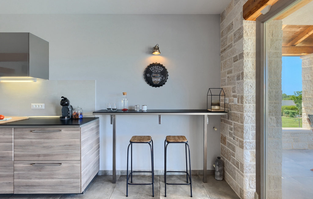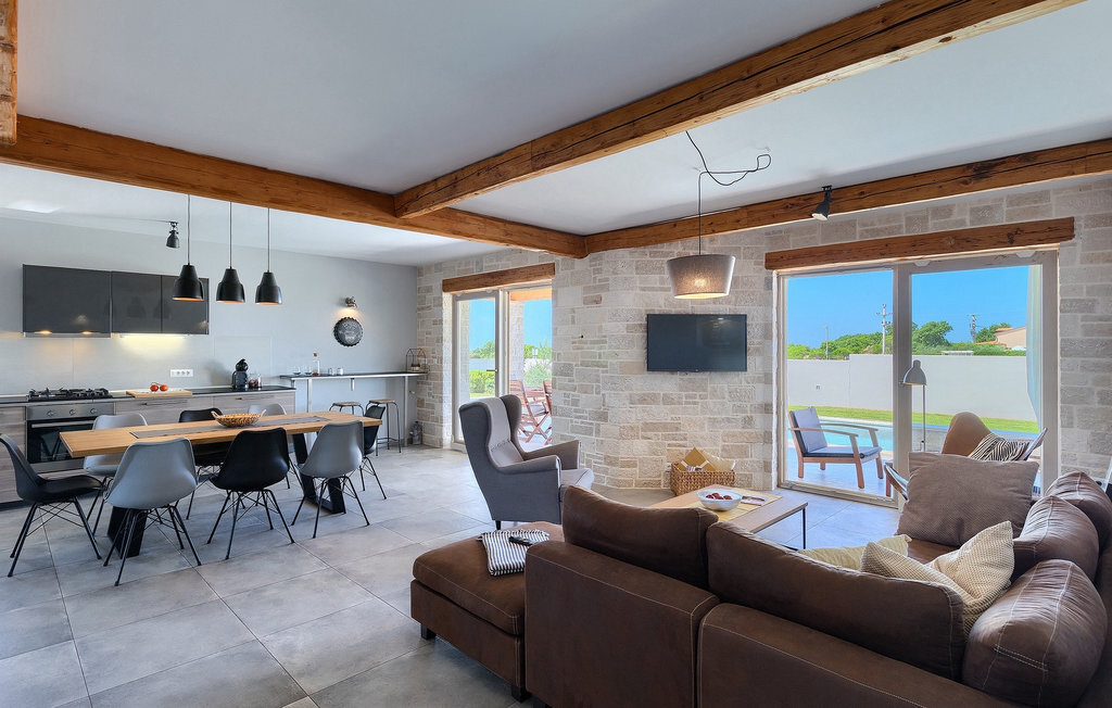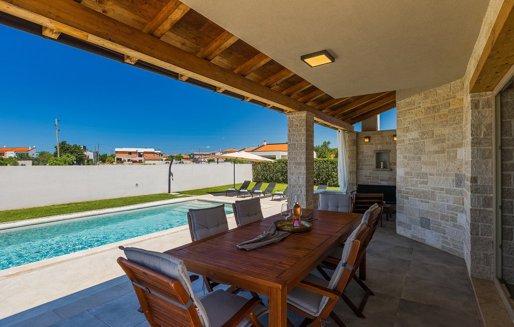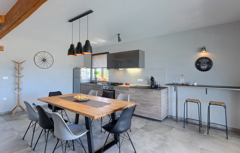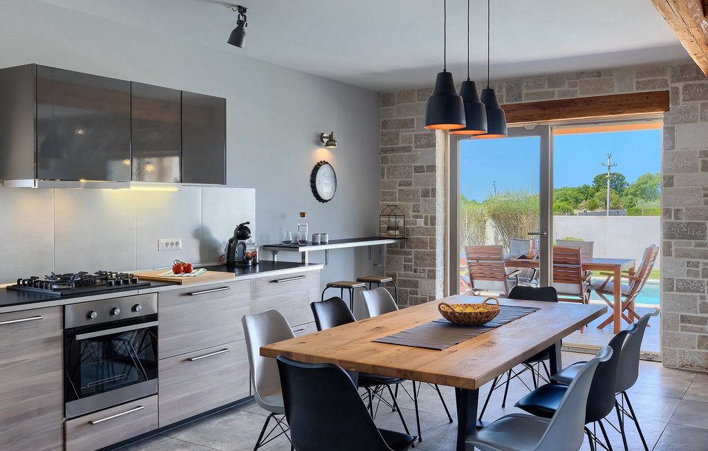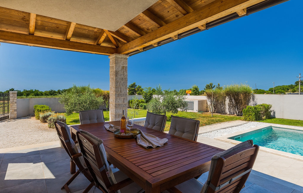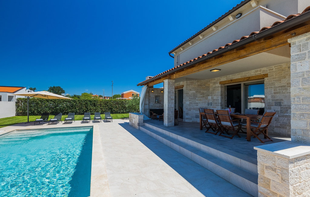 La Villa Prato est une magnifique villa située dans le sud de l'Istrie, près de Pula. La villa est moderne, très confortable et aménagée avec charme. Le rez-de-chaussée de la villa dispose d'une cuisine entièrement équipée et d'un salon avec coin repas qui offrent une belle vue sur le jardin et la piscine. Au premier étage de la villa se trouvent quatre chambres à coucher confortables, dont trois ont un lit double et une chambre double avec deux lits simples. Outre les chambres, le premier étage comprend trois salles de bains modernes et une terrasse avec une vue unique sur la magnifique nature istrienne. Dans le grand jardin, il y a une piscine de 32 m2 qui offre des rafraîchissements pendant les chaudes journées d'été, ainsi qu'une aire de jeux pour les enfants. Dans la partie couverte de la terrasse se trouve un coin repas où vous pourrez déguster des plats istriens accompagnés d'un verre de malvazija. Si vous souhaitez faire une pause dans votre quotidien, la Villa Prato est le choix idéal pour votre famille et vos amis.La magnifique Villa Prato est située près du petit village de Loborika, sur le côté sud de la péninsule istrienne. L'emplacement de la villa offre un équilibre parfait entre tranquillité et plaisirs privés, loin de l'agitation de la ville et de la foule de touristes, tout en étant proche de toutes les villes importantes d'Istrie. Pula, la plus grande ville d'Istrie, n'est pas loin de la villa et est mondialement connue pour son étonnant colisée, un amphithéâtre antique construit au 1er siècle sous le règne de l'empereur romain Vespasien.