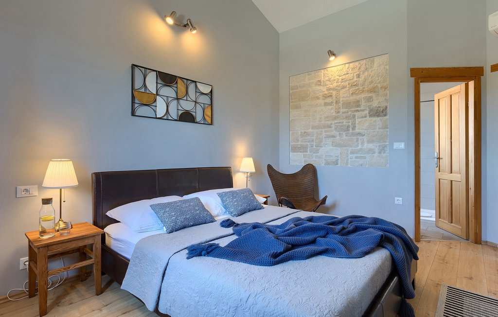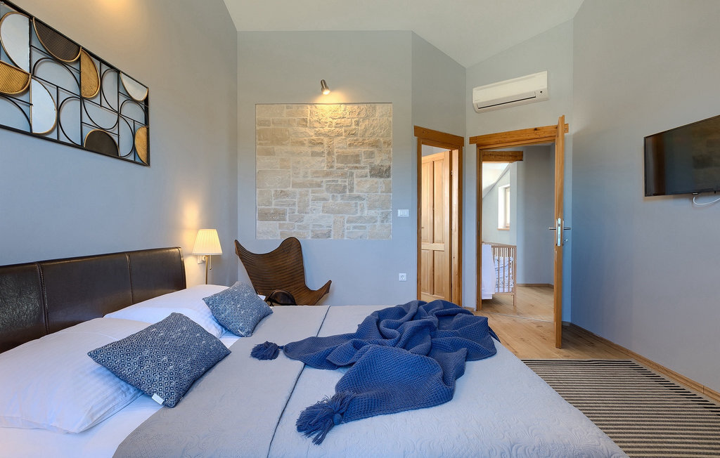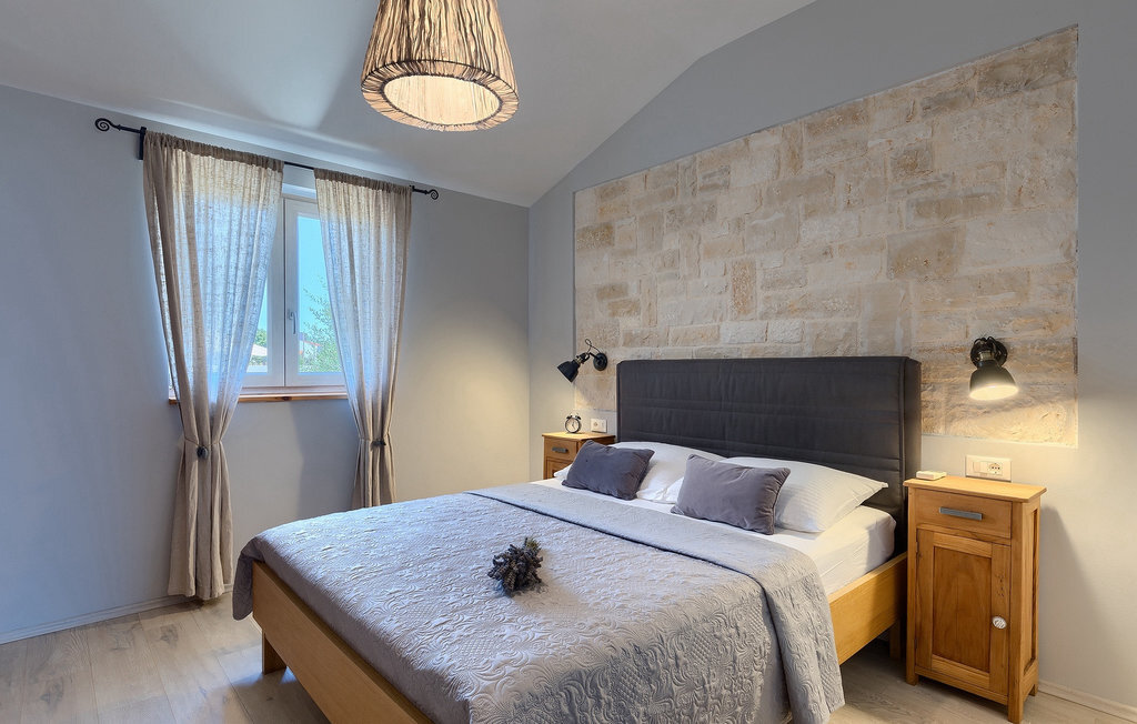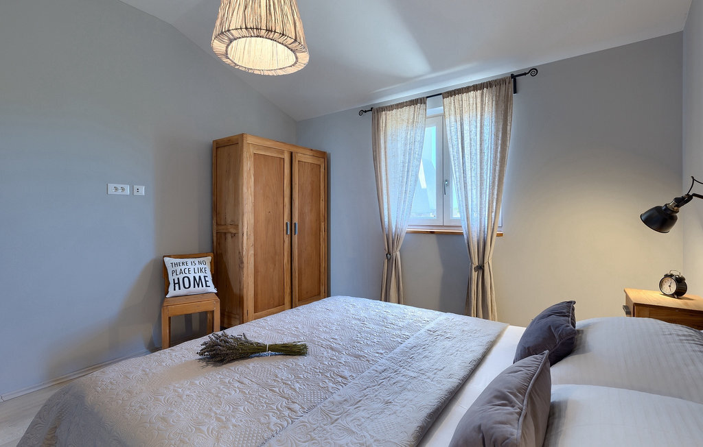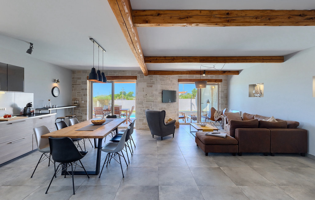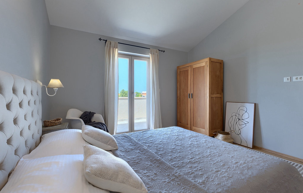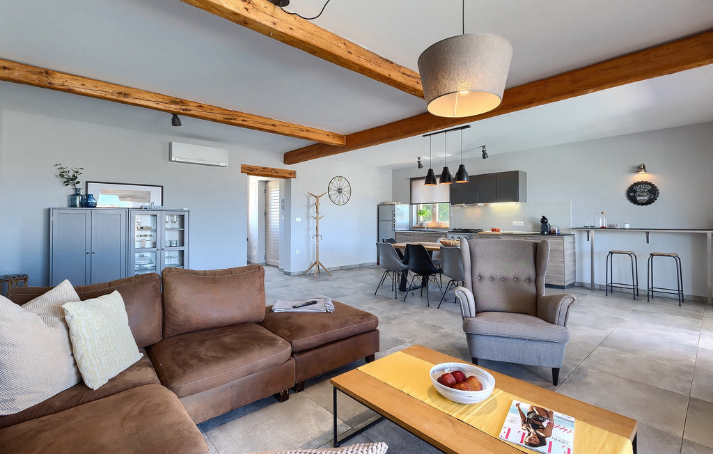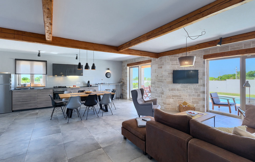 La Villa Prato est une magnifique villa située dans le sud de l'Istrie, près de Pula. La villa est moderne, très confortable et aménagée avec charme. Le rez-de-chaussée de la villa dispose d'une cuisine entièrement équipée et d'un salon avec coin repas qui offrent une belle vue sur le jardin et la piscine. Au premier étage de la villa se trouvent quatre chambres à coucher confortables, dont trois ont un lit double et une chambre double avec deux lits simples. Outre les chambres, le premier étage comprend trois salles de bains modernes et une terrasse avec une vue unique sur la magnifique nature istrienne. Dans le grand jardin, il y a une piscine de 32 m2 qui offre des rafraîchissements pendant les chaudes journées d'été, ainsi qu'une aire de jeux pour les enfants. Dans la partie couverte de la terrasse se trouve un coin repas où vous pourrez déguster des plats istriens accompagnés d'un verre de malvazija. Si vous souhaitez faire une pause dans votre quotidien, la Villa Prato est le choix idéal pour votre famille et vos amis.La magnifique Villa Prato est située près du petit village de Loborika, sur le côté sud de la péninsule istrienne. L'emplacement de la villa offre un équilibre parfait entre tranquillité et plaisirs privés, loin de l'agitation de la ville et de la foule de touristes, tout en étant proche de toutes les villes importantes d'Istrie. Pula, la plus grande ville d'Istrie, n'est pas loin de la villa et est mondialement connue pour son étonnant colisée, un amphithéâtre antique construit au 1er siècle sous le règne de l'empereur romain Vespasien.