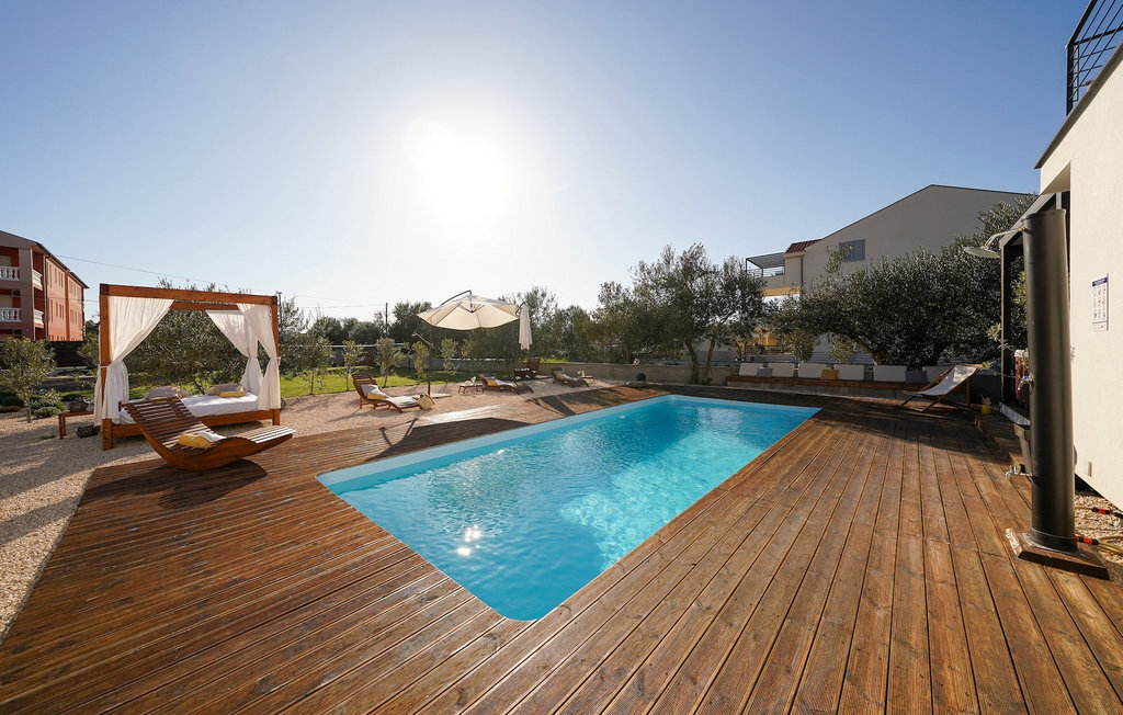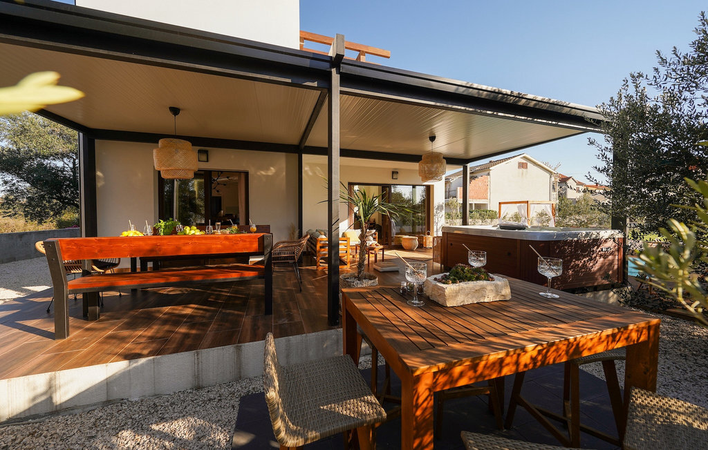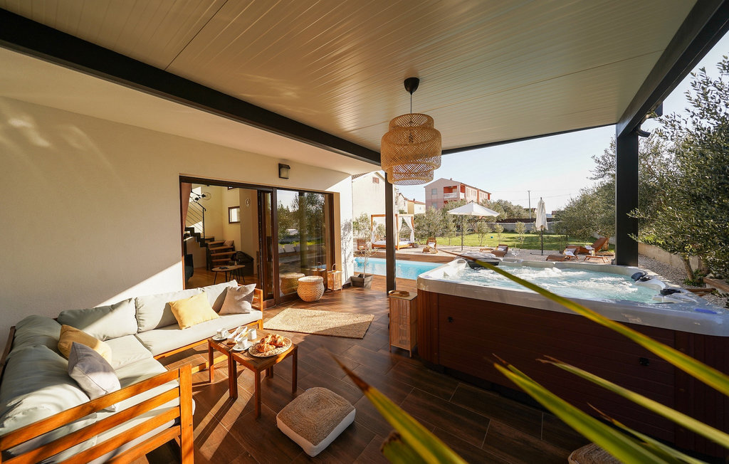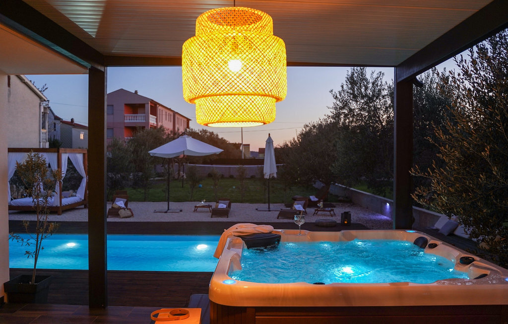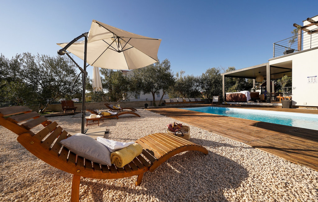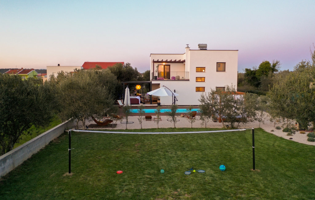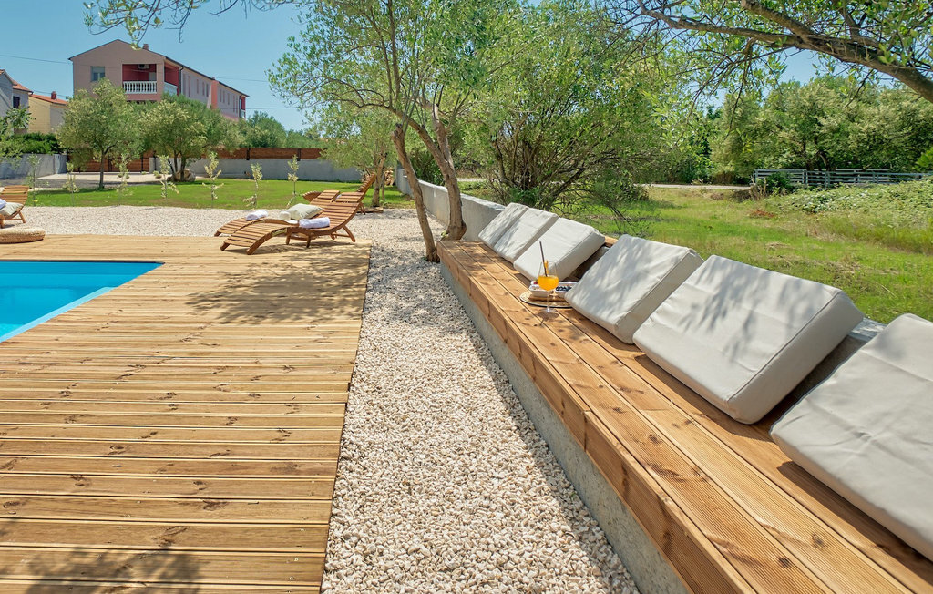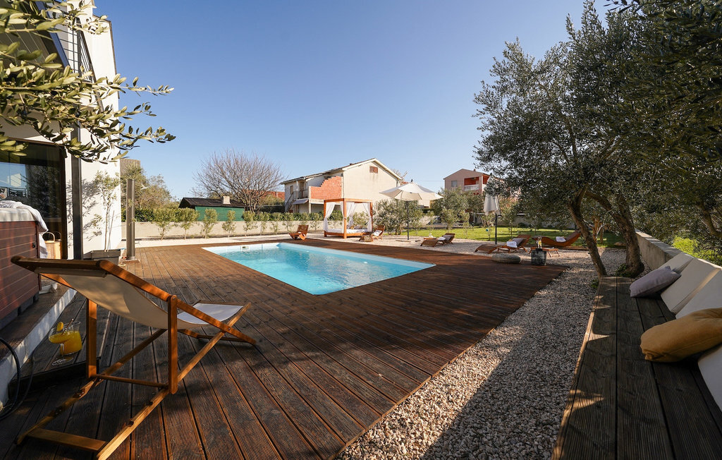 Cette villa est située sur un terrain de plus de 900 m2 à Sukosan, une petite ville côtière pittoresque près de Zadar. Seule une courte promenade depuis cette belle villa vous sépare de la plage la plus proche. Une belle piscine privée est à votre disposition. La piscine est certainement l'endroit où vous passerez le plus de temps car il y a des chaises longues confortables pour se détendre près de la piscine et un espace de restauration extérieur avec un barbecue idéal pour préparer et savourer des repas al fresco. La villa dispose de 4 chambres et 3 salles de bains et est joliment meublée dans un style simple mais avec une grande attention aux détails. Le premier étage se compose d'une salle de séjour et d'un coin repas spacieux avec une cuisine entièrement équipée. La chambre d'enfants colorée avec deux lits simples séparés se trouve également au premier étage, ainsi qu'une salle de bain et une toilette séparée. Les 2 salles de bains et les 3 chambres restantes, chacune avec un lit double, une télévision et l'air conditionné, se trouvent à l'étage supérieur. Vous pouvez profiter des couchers de soleil sur le grand balcon avec vue sur la mer. La villa est entièrement clôturée, offre deux places de parking privées et de nombreuses possibilités de se détendre et de passer des vacances inoubliables près de Zadar.Cette villa est située dans le petit village de Sukosan, à seulement un court trajet en voiture de Zadar. Zadar est une vieille ville riche en patrimoine culturel et en attractions historiques. Le célèbre Alfred Hitchcock a dit que le plus beau coucher de soleil se trouve à Zadar - ne le manquez pas ! La vieille ville offre des monuments de l'Antiquité, du Moyen Âge et de la Renaissance : le forum romain (1er siècle), l'église de St Donat (9e siècle), l'église de St Marija (11e siècle, reconstruite au 16e siècle), la cathédrale de St Anastasia (12e-13e siècle), des parties des murs défensifs ... Aujourd'hui, Zadar est connue pour son orgue de mer et son installation lumineuse "Pozdrav suncu" (Salut au soleil). La région offre de beaux paysages, de bons restaurants avec une cuisine méditerranéenne, mais aussi de magnifiques parcs nationaux et naturels (Krka Waterfalls, Kornati, Plitvice Lakes, Tela??ica, Paklenica ?). Si vous voulez vous amuser davantage, Zadar offre des bars et cafés de plage, des night-clubs et des discothèques du coucher au lever du soleil. Pendant votre séjour à Zadar, n'oubliez pas de goûter à la douce liqueur de cerise Maraschino !