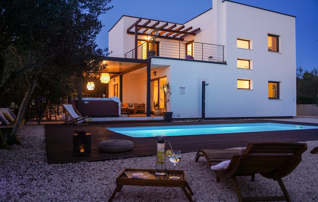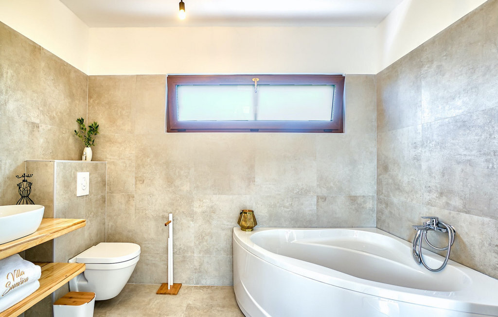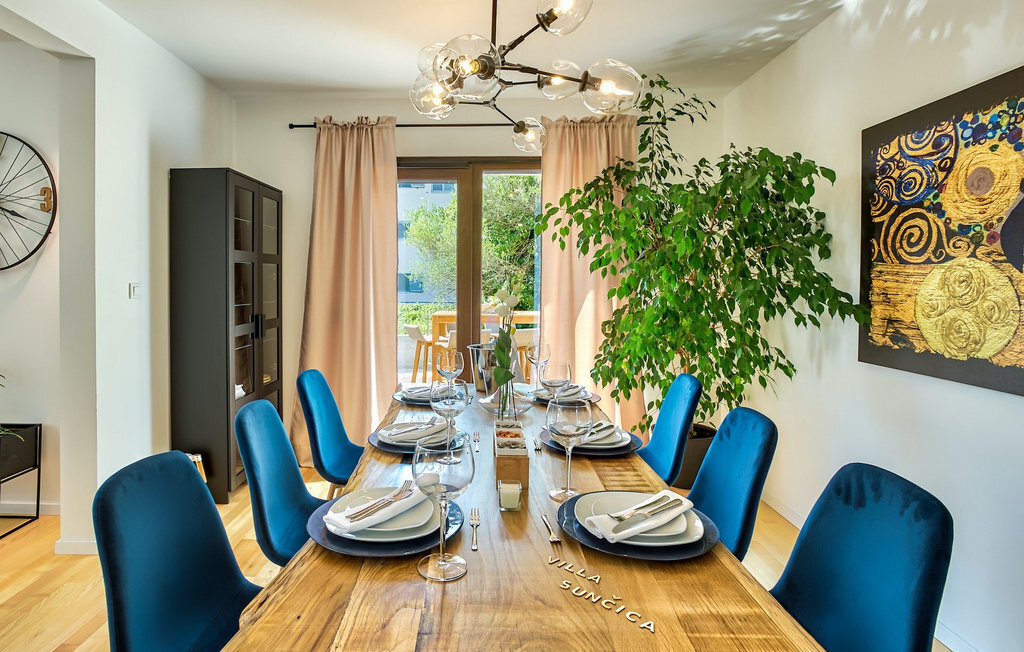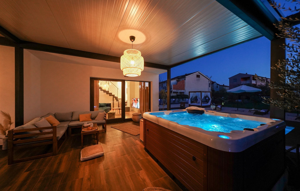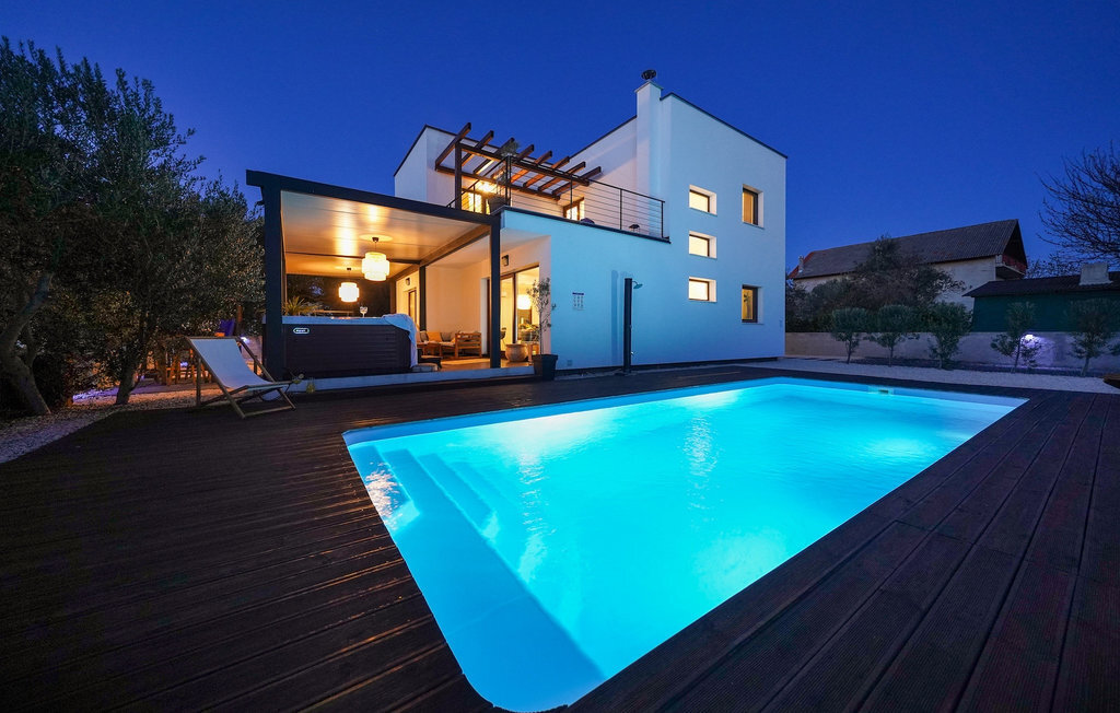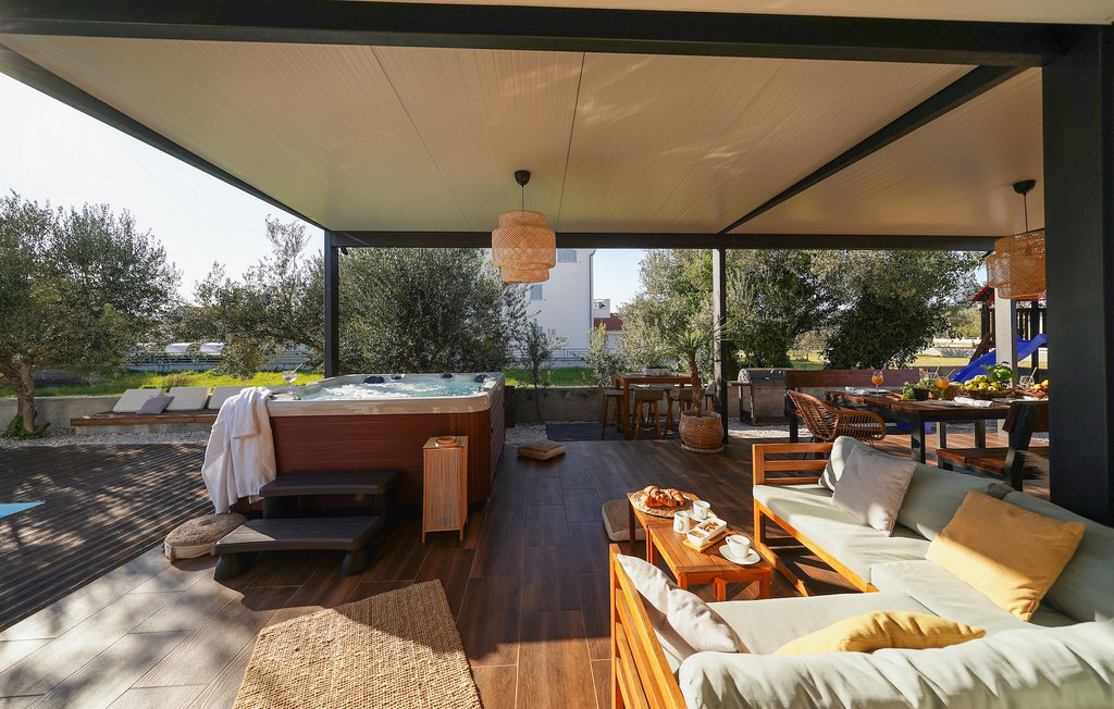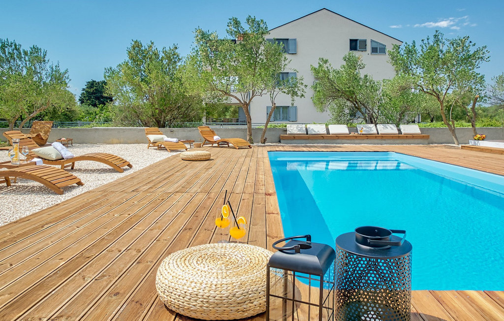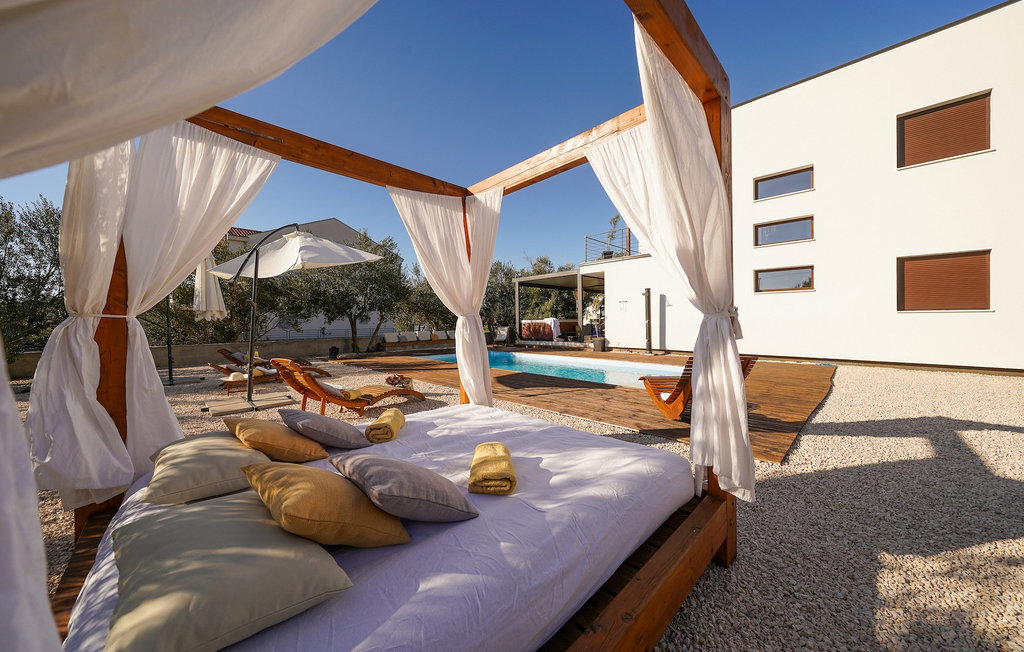 Cette villa est située sur un terrain de plus de 900 m2 à Sukosan, une petite ville côtière pittoresque près de Zadar. Seule une courte promenade depuis cette belle villa vous sépare de la plage la plus proche. Une belle piscine privée est à votre disposition. La piscine est certainement l'endroit où vous passerez le plus de temps car il y a des chaises longues confortables pour se détendre près de la piscine et un espace de restauration extérieur avec un barbecue idéal pour préparer et savourer des repas al fresco. La villa dispose de 4 chambres et 3 salles de bains et est joliment meublée dans un style simple mais avec une grande attention aux détails. Le premier étage se compose d'une salle de séjour et d'un coin repas spacieux avec une cuisine entièrement équipée. La chambre d'enfants colorée avec deux lits simples séparés se trouve également au premier étage, ainsi qu'une salle de bain et une toilette séparée. Les 2 salles de bains et les 3 chambres restantes, chacune avec un lit double, une télévision et l'air conditionné, se trouvent à l'étage supérieur. Vous pouvez profiter des couchers de soleil sur le grand balcon avec vue sur la mer. La villa est entièrement clôturée, offre deux places de parking privées et de nombreuses possibilités de se détendre et de passer des vacances inoubliables près de Zadar.Cette villa est située dans le petit village de Sukosan, à seulement un court trajet en voiture de Zadar. Zadar est une vieille ville riche en patrimoine culturel et en attractions historiques. Le célèbre Alfred Hitchcock a dit que le plus beau coucher de soleil se trouve à Zadar - ne le manquez pas ! La vieille ville offre des monuments de l'Antiquité, du Moyen Âge et de la Renaissance : le forum romain (1er siècle), l'église de St Donat (9e siècle), l'église de St Marija (11e siècle, reconstruite au 16e siècle), la cathédrale de St Anastasia (12e-13e siècle), des parties des murs défensifs ... Aujourd'hui, Zadar est connue pour son orgue de mer et son installation lumineuse "Pozdrav suncu" (Salut au soleil). La région offre de beaux paysages, de bons restaurants avec une cuisine méditerranéenne, mais aussi de magnifiques parcs nationaux et naturels (Krka Waterfalls, Kornati, Plitvice Lakes, Tela??ica, Paklenica ?). Si vous voulez vous amuser davantage, Zadar offre des bars et cafés de plage, des night-clubs et des discothèques du coucher au lever du soleil. Pendant votre séjour à Zadar, n'oubliez pas de goûter à la douce liqueur de cerise Maraschino !