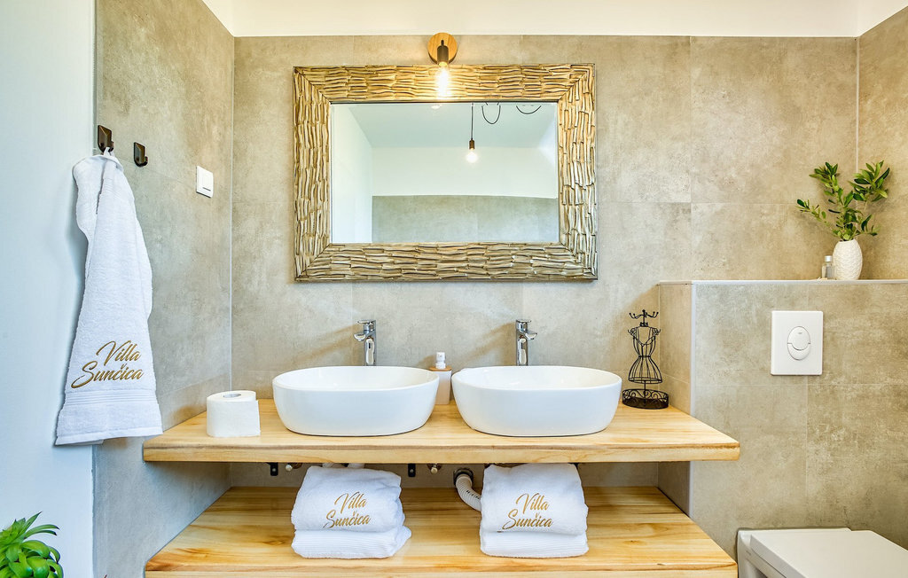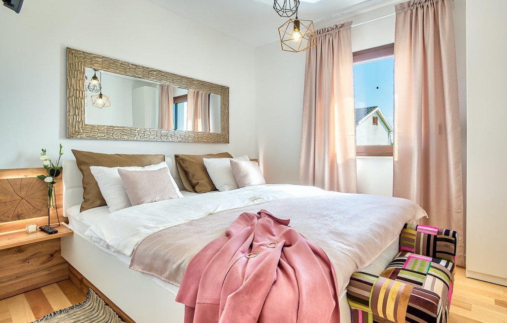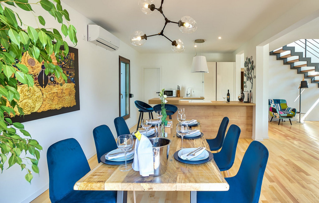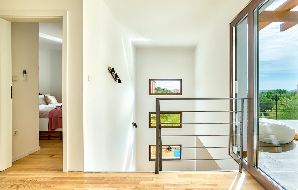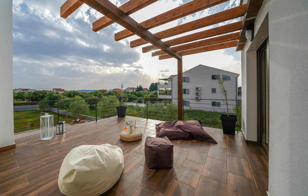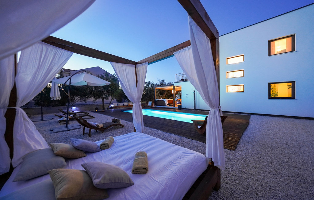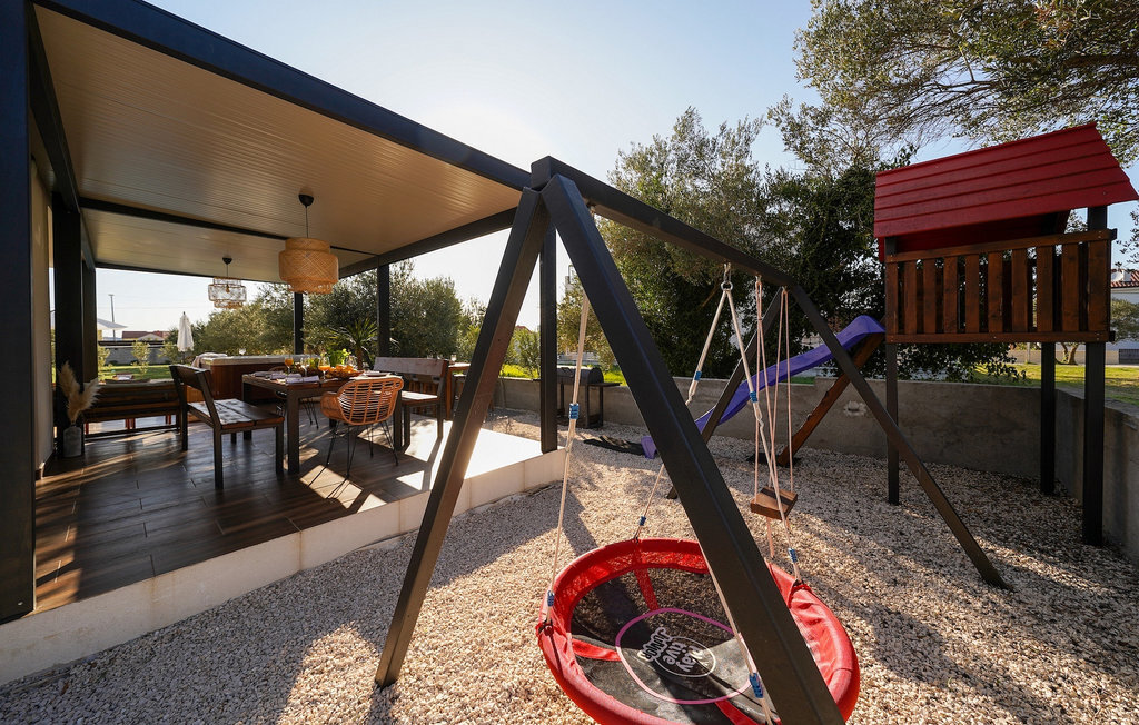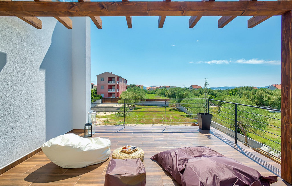 Cette villa est située sur un terrain de plus de 900 m2 à Sukosan, une petite ville côtière pittoresque près de Zadar. Seule une courte promenade depuis cette belle villa vous sépare de la plage la plus proche. Une belle piscine privée est à votre disposition. La piscine est certainement l'endroit où vous passerez le plus de temps car il y a des chaises longues confortables pour se détendre près de la piscine et un espace de restauration extérieur avec un barbecue idéal pour préparer et savourer des repas al fresco. La villa dispose de 4 chambres et 3 salles de bains et est joliment meublée dans un style simple mais avec une grande attention aux détails. Le premier étage se compose d'une salle de séjour et d'un coin repas spacieux avec une cuisine entièrement équipée. La chambre d'enfants colorée avec deux lits simples séparés se trouve également au premier étage, ainsi qu'une salle de bain et une toilette séparée. Les 2 salles de bains et les 3 chambres restantes, chacune avec un lit double, une télévision et l'air conditionné, se trouvent à l'étage supérieur. Vous pouvez profiter des couchers de soleil sur le grand balcon avec vue sur la mer. La villa est entièrement clôturée, offre deux places de parking privées et de nombreuses possibilités de se détendre et de passer des vacances inoubliables près de Zadar.Cette villa est située dans le petit village de Sukosan, à seulement un court trajet en voiture de Zadar. Zadar est une vieille ville riche en patrimoine culturel et en attractions historiques. Le célèbre Alfred Hitchcock a dit que le plus beau coucher de soleil se trouve à Zadar - ne le manquez pas ! La vieille ville offre des monuments de l'Antiquité, du Moyen Âge et de la Renaissance : le forum romain (1er siècle), l'église de St Donat (9e siècle), l'église de St Marija (11e siècle, reconstruite au 16e siècle), la cathédrale de St Anastasia (12e-13e siècle), des parties des murs défensifs ... Aujourd'hui, Zadar est connue pour son orgue de mer et son installation lumineuse "Pozdrav suncu" (Salut au soleil). La région offre de beaux paysages, de bons restaurants avec une cuisine méditerranéenne, mais aussi de magnifiques parcs nationaux et naturels (Krka Waterfalls, Kornati, Plitvice Lakes, Tela??ica, Paklenica ?). Si vous voulez vous amuser davantage, Zadar offre des bars et cafés de plage, des night-clubs et des discothèques du coucher au lever du soleil. Pendant votre séjour à Zadar, n'oubliez pas de goûter à la douce liqueur de cerise Maraschino !