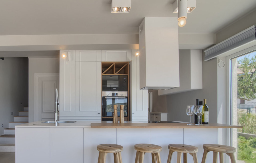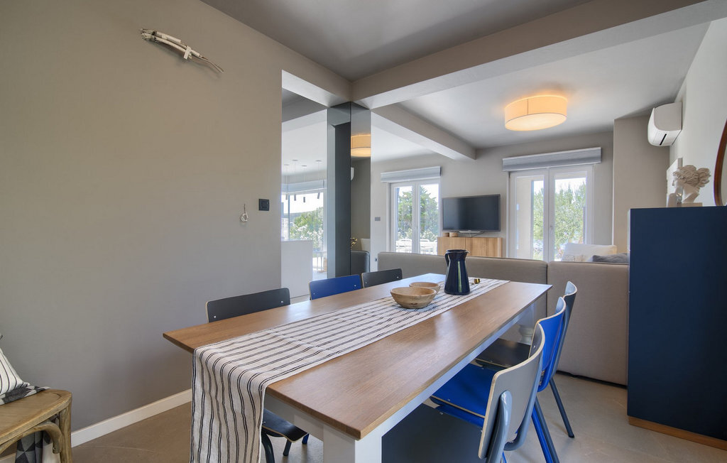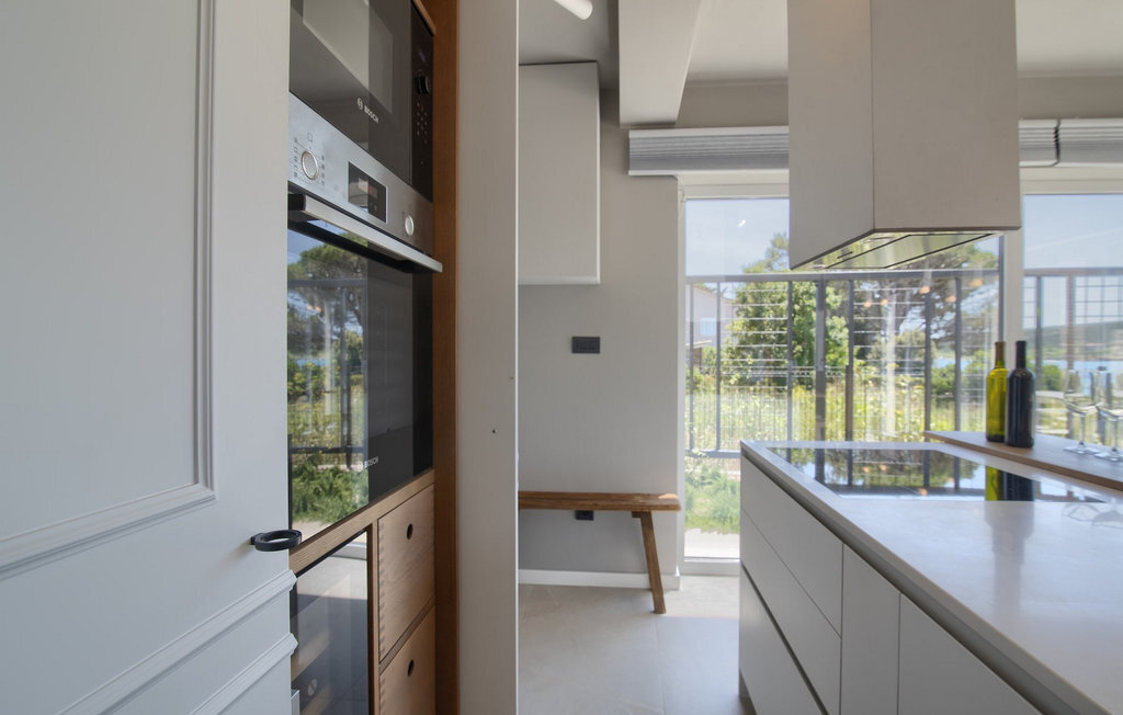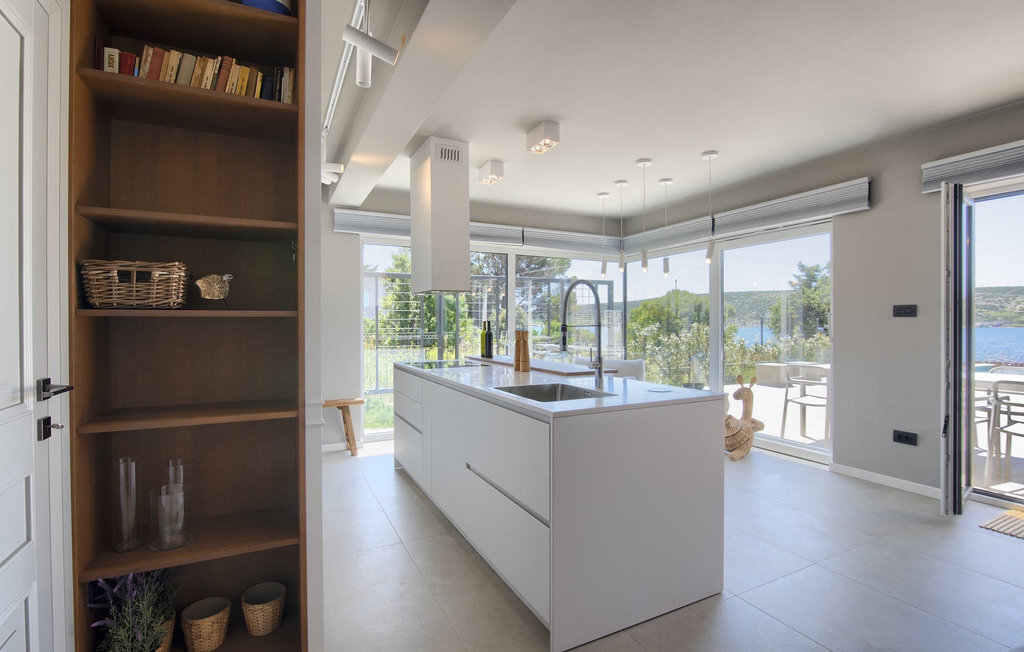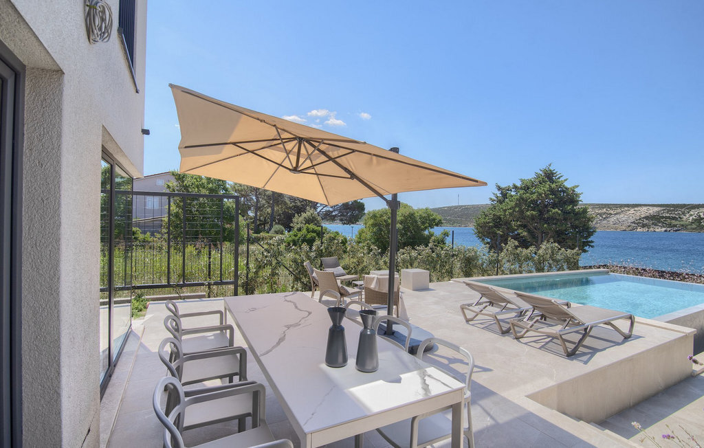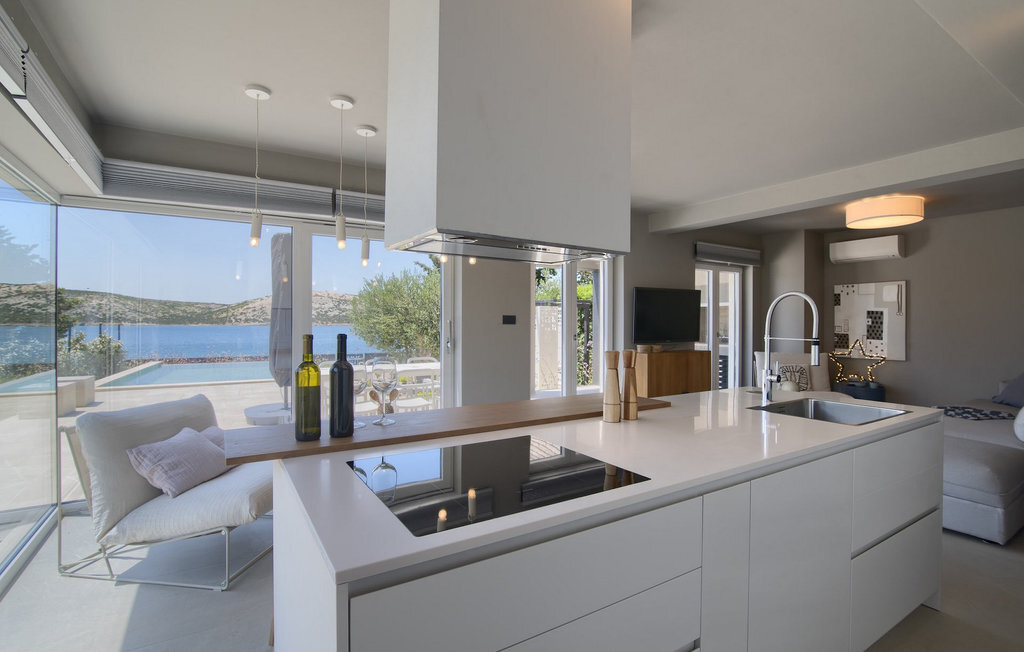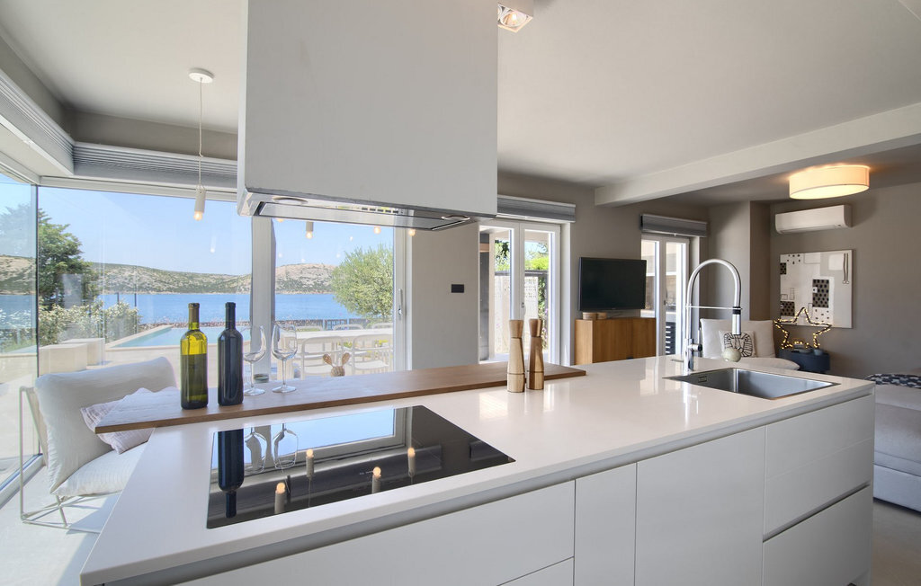 La villa Lunjsko à l'équipement moderne sur l'île de Pag est tout simplement époustouflante ! Cette belle villa se trouve en bordure de l'île, à Stara Novalja. La vue depuis presque toutes les pièces de la villa vous enchantera. Villa Lunjsko est divisée en rez-de-chaussée et premier étage. Le rez-de-chaussée de la villa comprend un salon, une cuisine entièrement équipée, une salle à manger donnant accès à une spacieuse terrasse extérieure avec coin repas, un garde-manger et une salle de bain. Au premier étage se trouvent trois chambres à coucher, dont deux disposent d'une salle de bain privée, une salle de bain supplémentaire et un balcon. L'intérieur de la villa Lunjsko est aménagé avec style et offre un hébergement confortable pour 6 personnes. Il y a également un magnifique jardin avec une vue magnifique. La Villa Lunjsko offre à ses hôtes une place d'amarrage personnelle pour un bateau devant la villa. Rafraîchissez-vous dans la piscine de la villa ou profitez tout simplement de l'accès direct à la mer. Réservez vos vacances de rêve à la Villa Lunjsko sur l'île de Pag.
