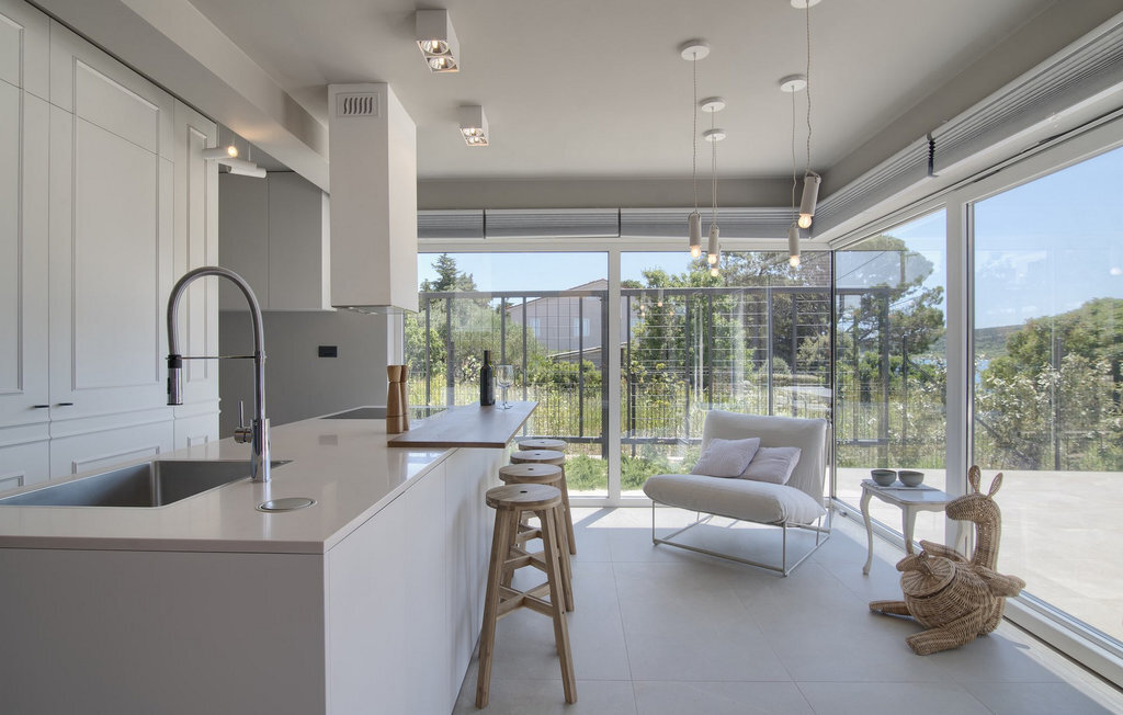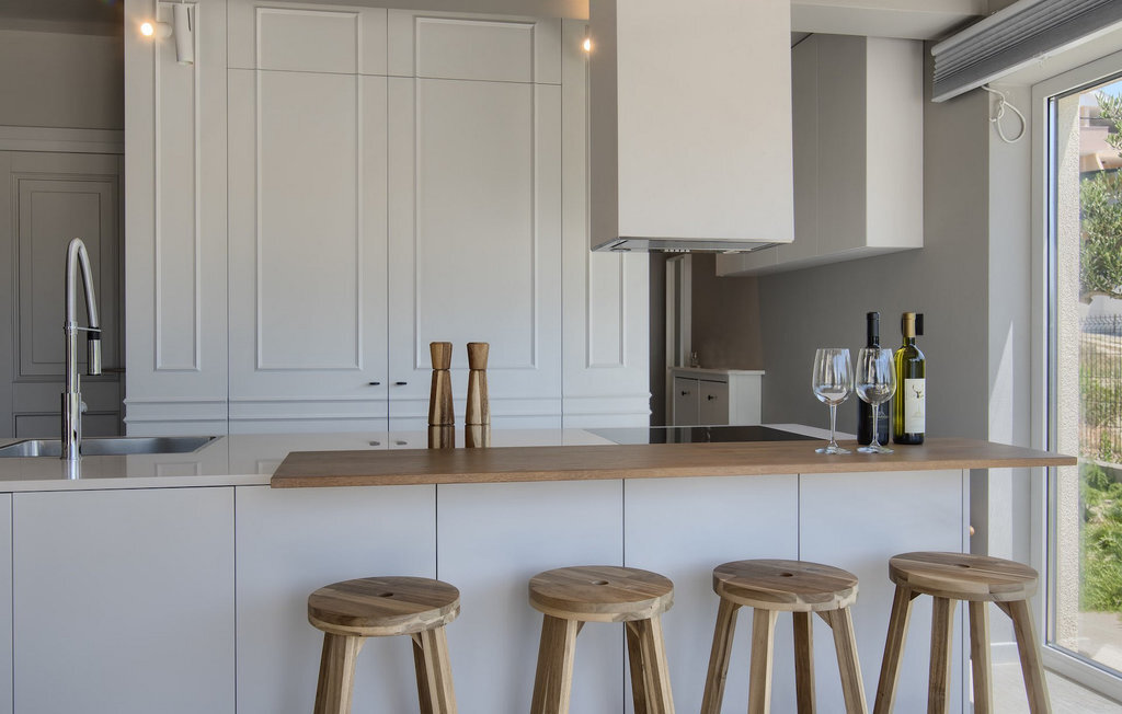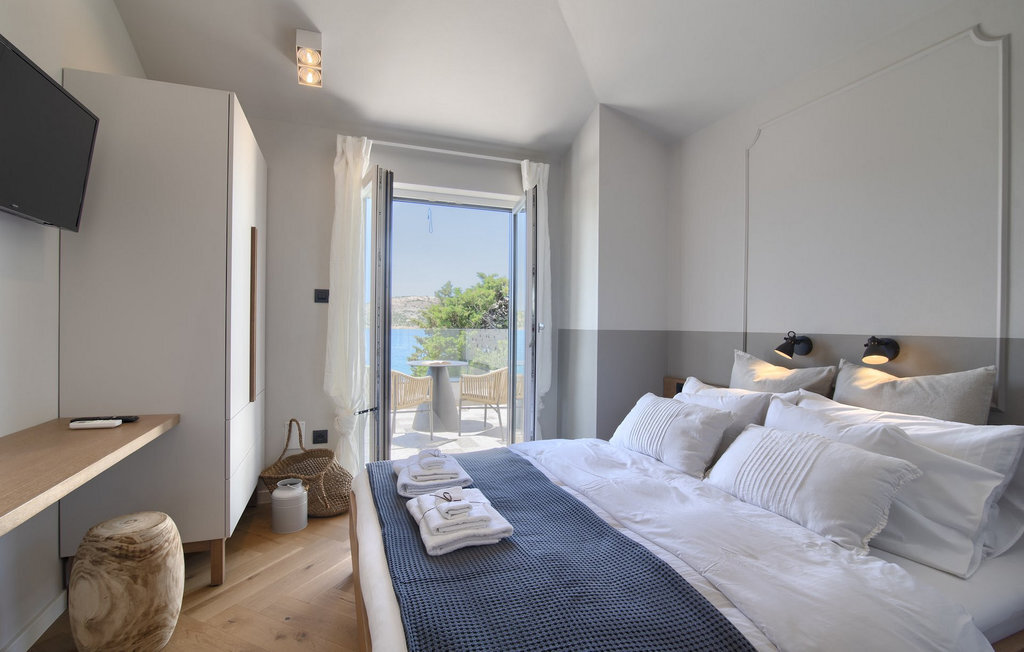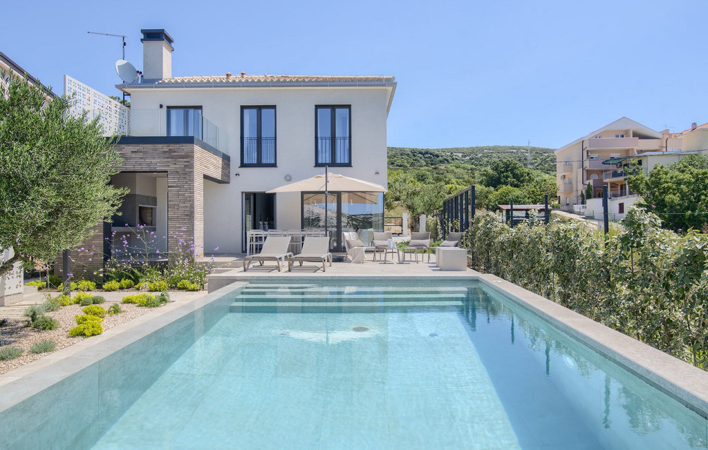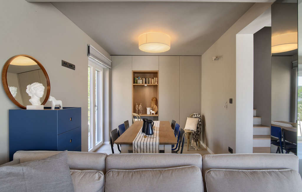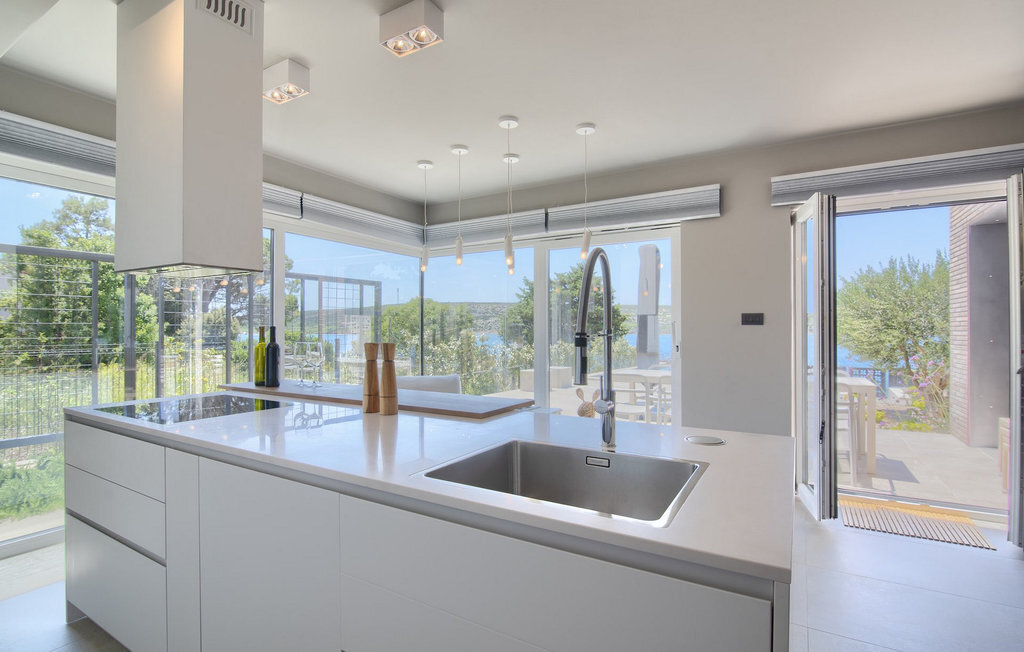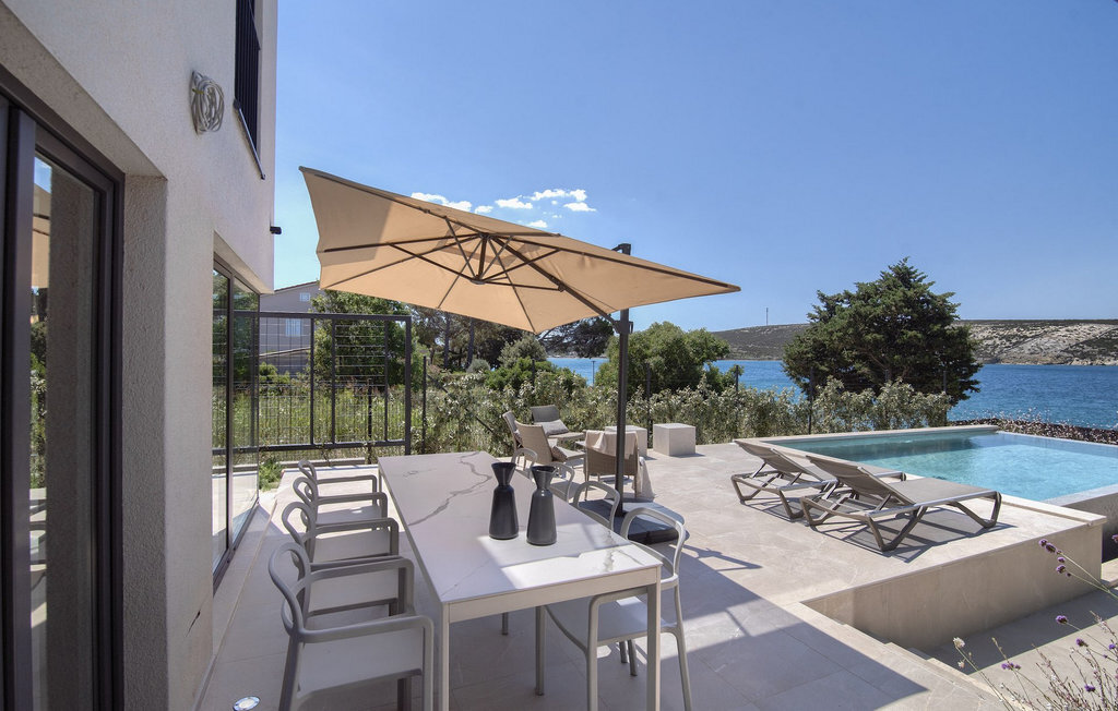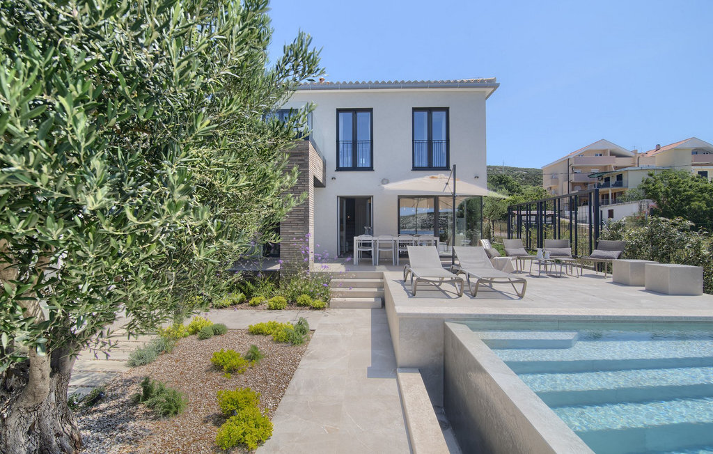 La villa Lunjsko à l'équipement moderne sur l'île de Pag est tout simplement époustouflante ! Cette belle villa se trouve en bordure de l'île, à Stara Novalja. La vue depuis presque toutes les pièces de la villa vous enchantera. Villa Lunjsko est divisée en rez-de-chaussée et premier étage. Le rez-de-chaussée de la villa comprend un salon, une cuisine entièrement équipée, une salle à manger donnant accès à une spacieuse terrasse extérieure avec coin repas, un garde-manger et une salle de bain. Au premier étage se trouvent trois chambres à coucher, dont deux disposent d'une salle de bain privée, une salle de bain supplémentaire et un balcon. L'intérieur de la villa Lunjsko est aménagé avec style et offre un hébergement confortable pour 6 personnes. Il y a également un magnifique jardin avec une vue magnifique. La Villa Lunjsko offre à ses hôtes une place d'amarrage personnelle pour un bateau devant la villa. Rafraîchissez-vous dans la piscine de la villa ou profitez tout simplement de l'accès direct à la mer. Réservez vos vacances de rêve à la Villa Lunjsko sur l'île de Pag.