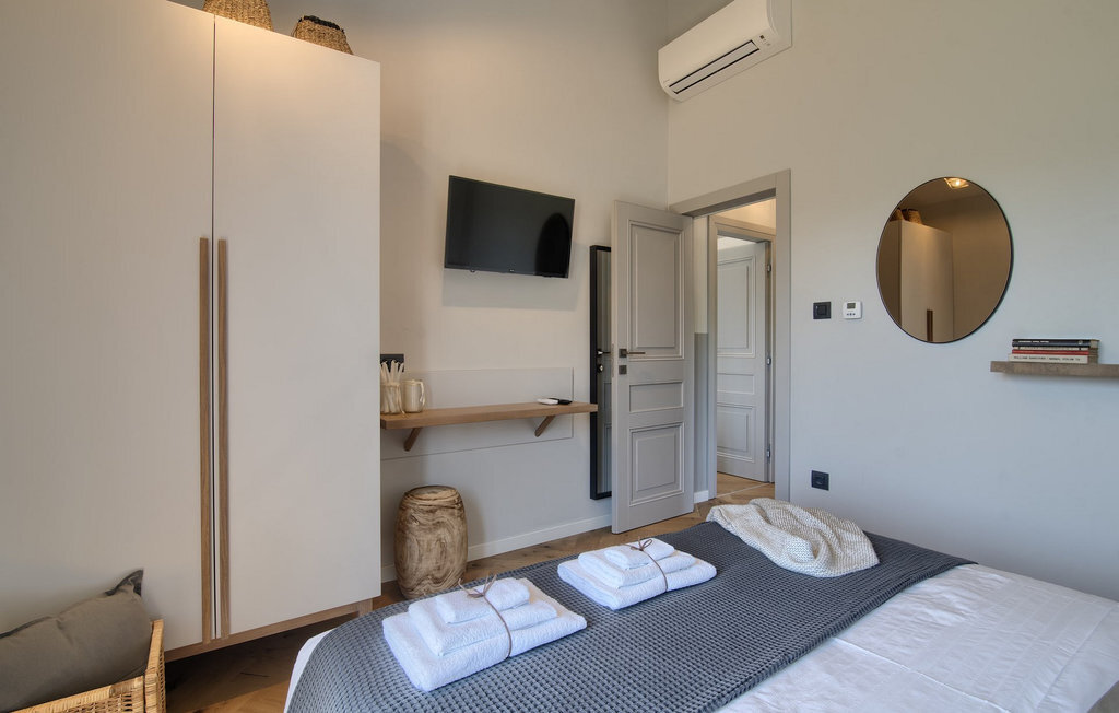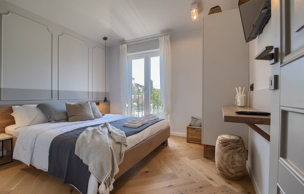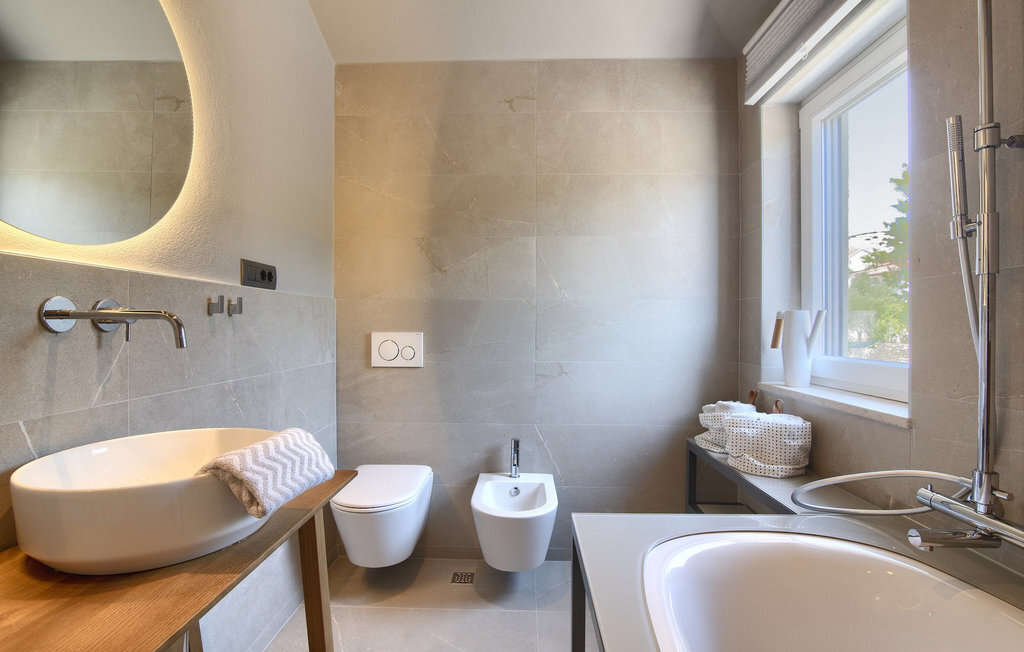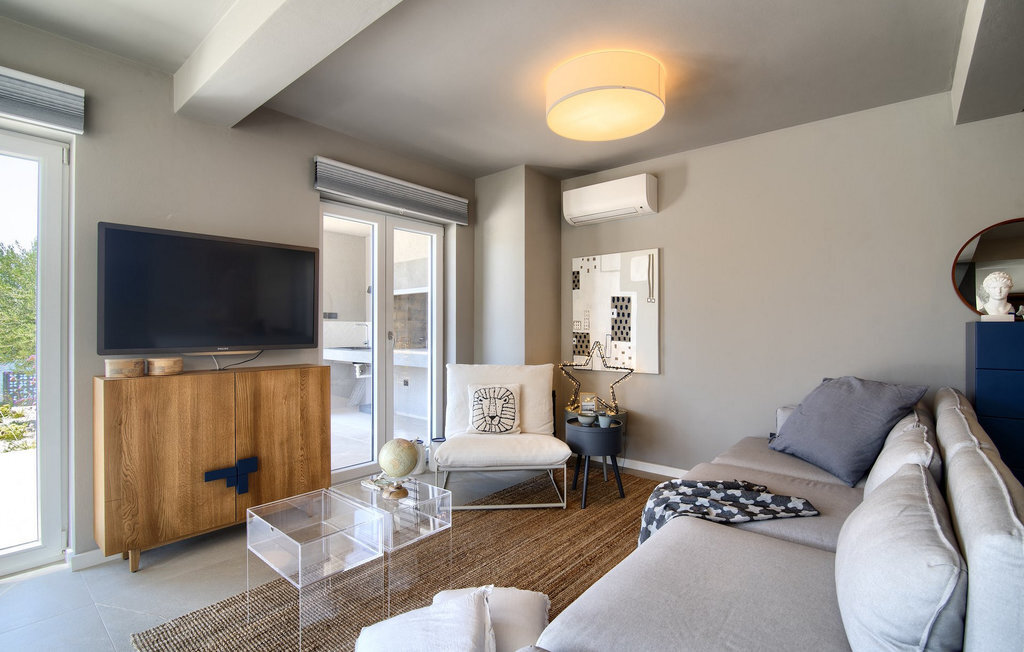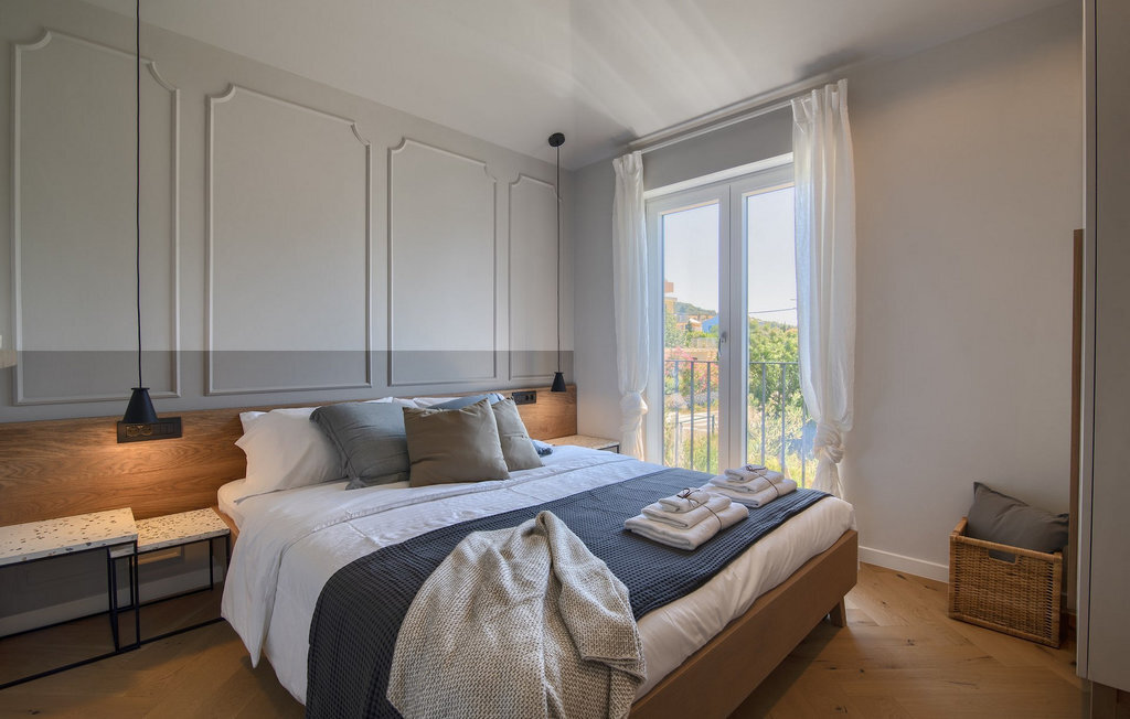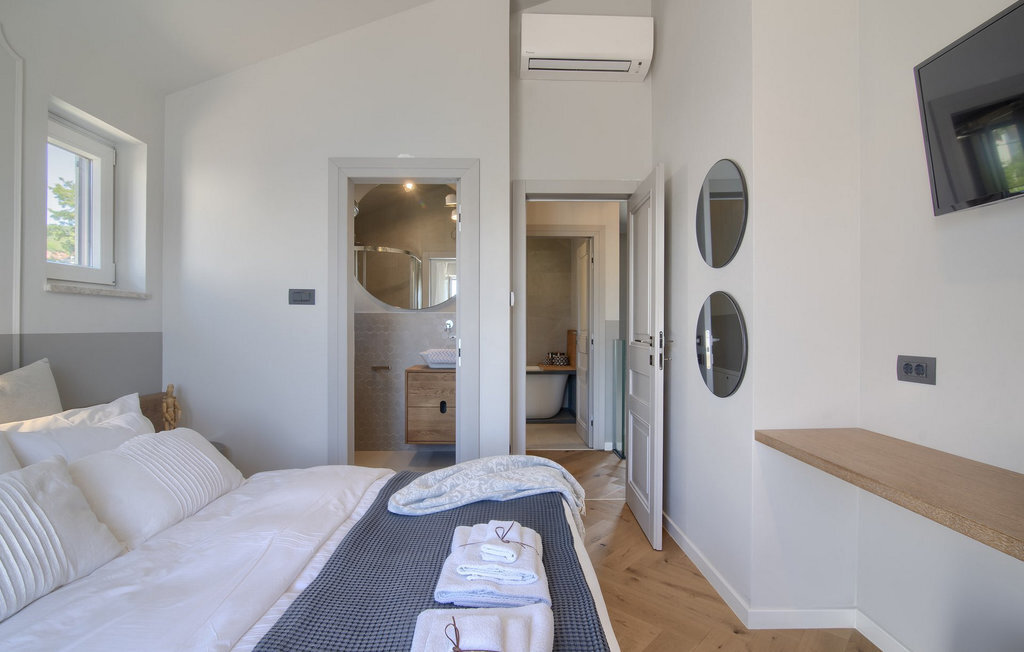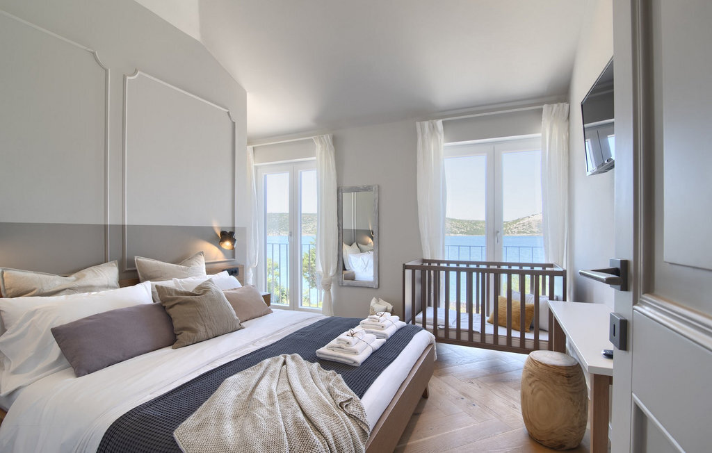 La villa Lunjsko à l'équipement moderne sur l'île de Pag est tout simplement époustouflante ! Cette belle villa se trouve en bordure de l'île, à Stara Novalja. La vue depuis presque toutes les pièces de la villa vous enchantera. Villa Lunjsko est divisée en rez-de-chaussée et premier étage. Le rez-de-chaussée de la villa comprend un salon, une cuisine entièrement équipée, une salle à manger donnant accès à une spacieuse terrasse extérieure avec coin repas, un garde-manger et une salle de bain. Au premier étage se trouvent trois chambres à coucher, dont deux disposent d'une salle de bain privée, une salle de bain supplémentaire et un balcon. L'intérieur de la villa Lunjsko est aménagé avec style et offre un hébergement confortable pour 6 personnes. Il y a également un magnifique jardin avec une vue magnifique. La Villa Lunjsko offre à ses hôtes une place d'amarrage personnelle pour un bateau devant la villa. Rafraîchissez-vous dans la piscine de la villa ou profitez tout simplement de l'accès direct à la mer. Réservez vos vacances de rêve à la Villa Lunjsko sur l'île de Pag.