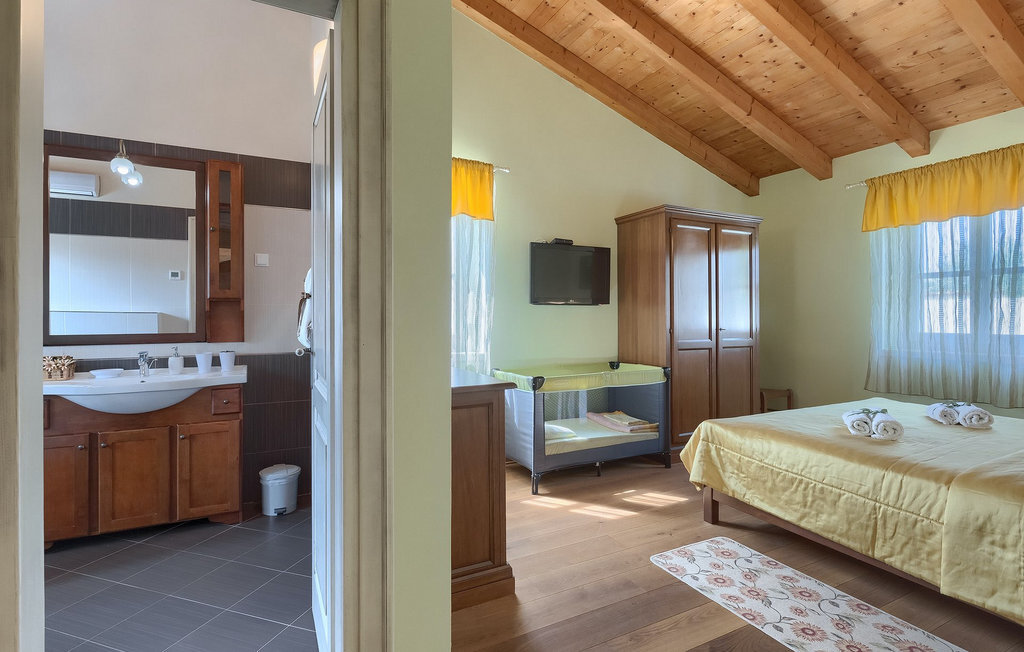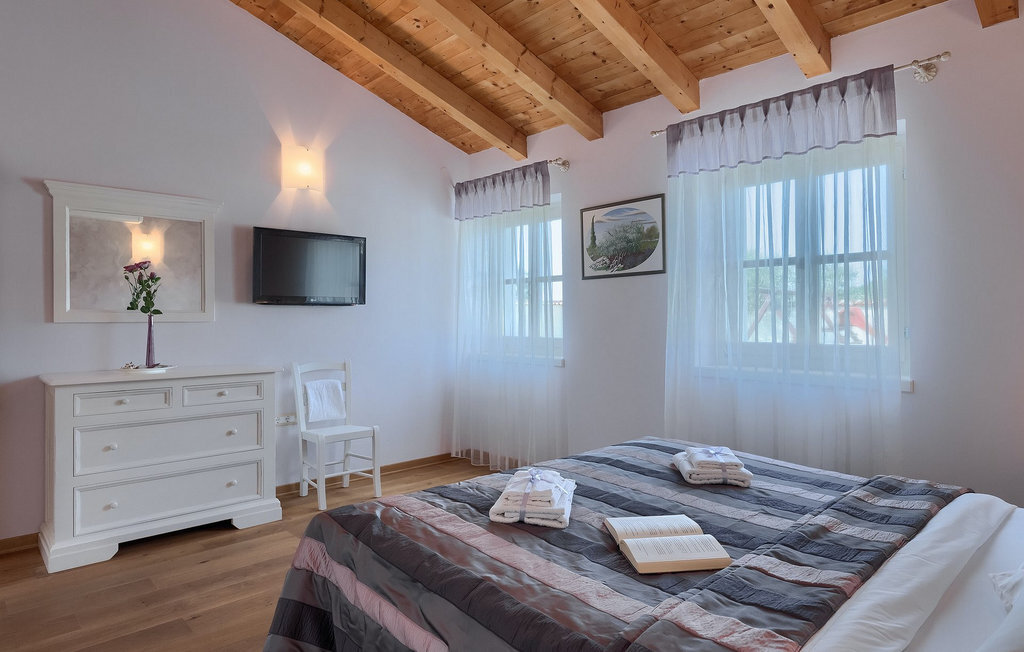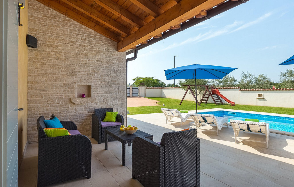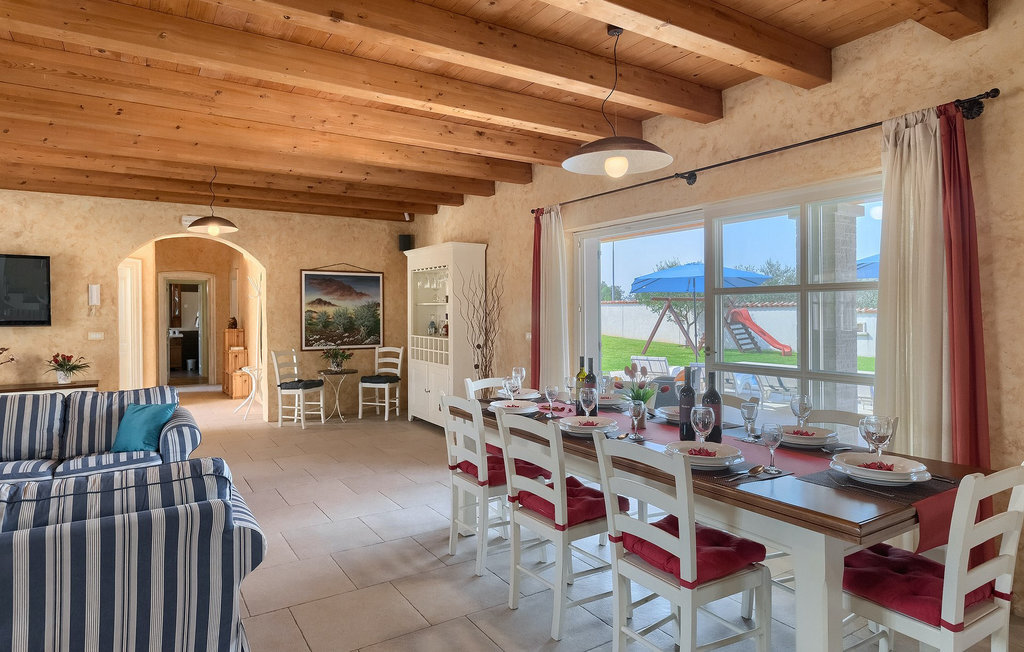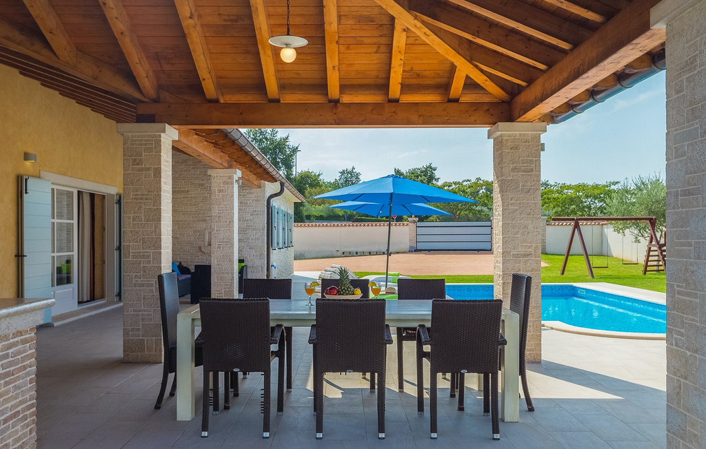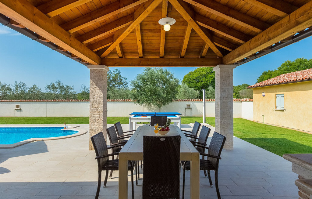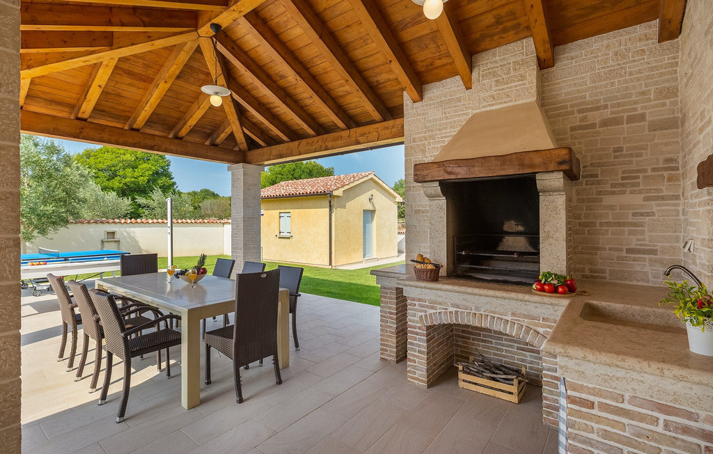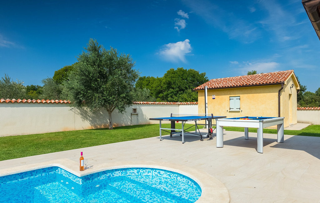 La Villa Eni est parfaite pour des vacances relaxantes et décontractées en famille ou avec des amis, loin de la routine quotidienne. Si l'envie d'aventure vous prend malgré tout, la ville animée et intéressante de Pula, avec tout son éventail de possibilités, n'est pas très loin.Cette villa élégante et moderne se trouve dans le petit village de Pavicini, près de la ville de Pula. Pavicini est très célèbre pour l'un des plus anciens moulins à huile d'Istrie. Vous pouvez le visiter et déguster de l'huile d'olive fraîche pressée à froid. La région est également connue pour la pêche, l'agriculture et l'élevage. La Villa Eni se trouve à 2 km de la plage de Duga Uvala et est entourée de vastes champs et de verdure. Si vous souhaitez goûter à la cuisine locale, de fantastiques restaurants se trouvent à 10 minutes en voiture. Nous vous recommandons vivement de visiter les villes suivantes dans les environs : Pula, Medulin, Rovinj, Fayana, Vodnjan ; ou peut-être des îles célèbres comme Losinj, Krk ou Cres. L'Istrie est un lieu de vacances parfait pour tous ceux qui souhaitent se reposer, profiter des paysages fascinants et nager dans la mer bleu ciel.