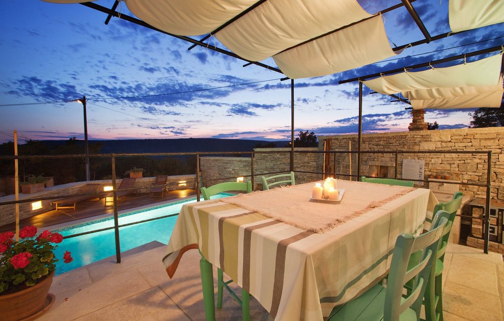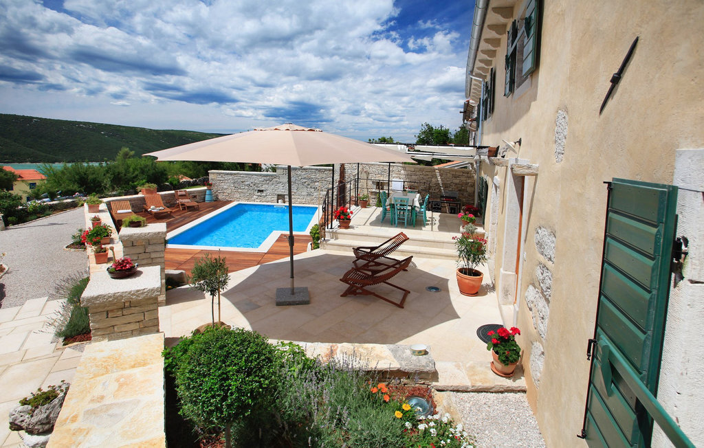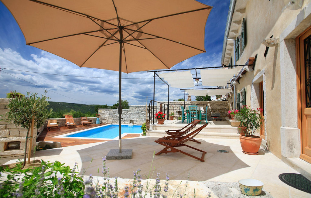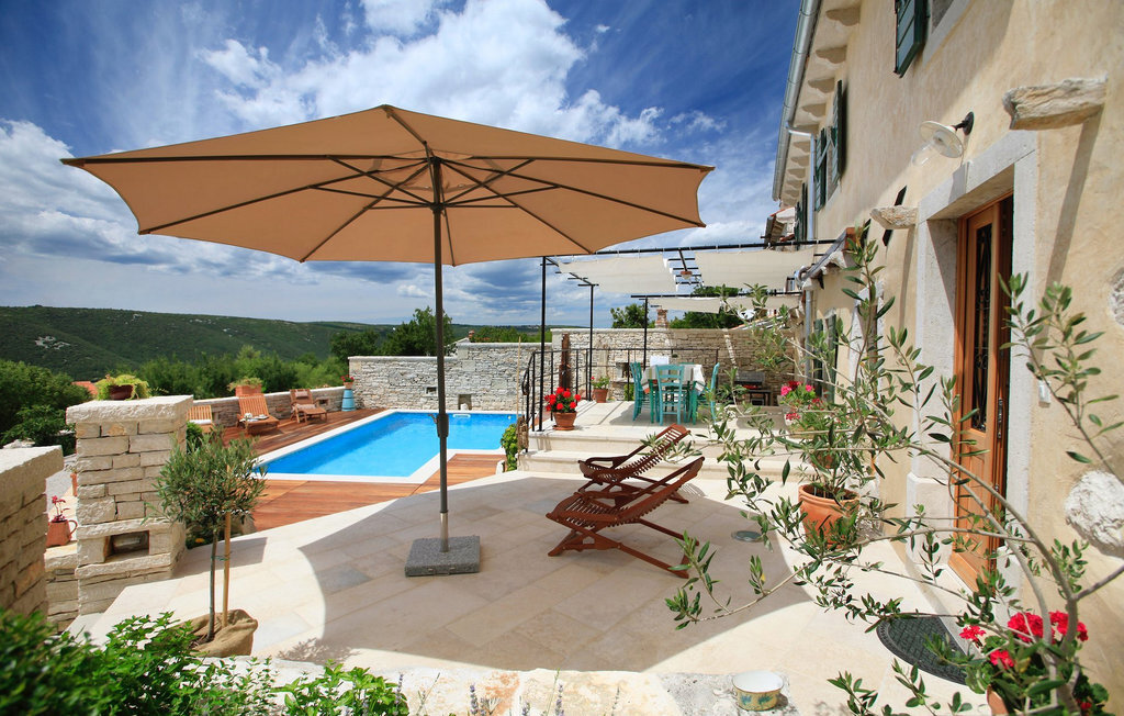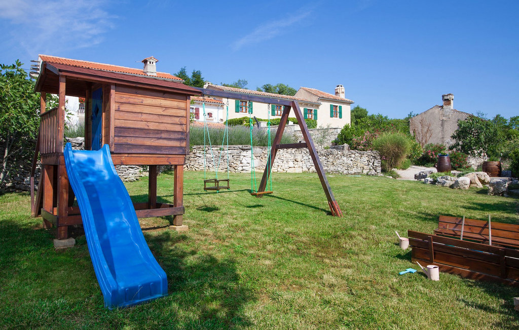 À l'extérieur de la propriété de 1400 mètres carrés se trouve une terrasse spacieuse avec une piscine privée, d'où l'on peut admirer une vue imprenable sur la mer Adriatique et les collines environnantes. Si vous avez envie de goûter à quelques délices locaux, un barbecue est également à votre disposition sur la terrasse. Et pendant que vous testez vos compétences culinaires, vos enfants peuvent se défouler sur l'aire de jeux juste à côté. Tous les hôtes qui ne veulent pas seulement faire le plein de soleil et de mer, mais qui souhaitent aussi être actifs et explorer le paysage et la nature uniques de l'Istrie, ont la possibilité de louer des vélos sur place. En bref : Tout ce dont vous avez besoin pour des vacances parfaites se trouve dans la magnifique Villa Gelci.La Villa Gelci se trouve à Trget en Istrie. Ce village de pêcheurs idyllique se trouve dans la baie de Raa, longue de douze kilomètres, au sud-ouest de la ville de Labin. Trget se caractérise par sa nature intacte et sa situation tranquille, ce qui le rend parfait, en particulier pour les familles avec enfants et tous ceux qui aspirent au calme et à la détente. La première plage se trouve à seulement 900 mètres de la Villa Gelci.