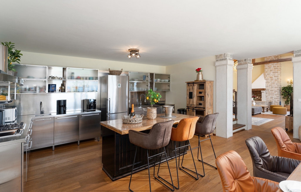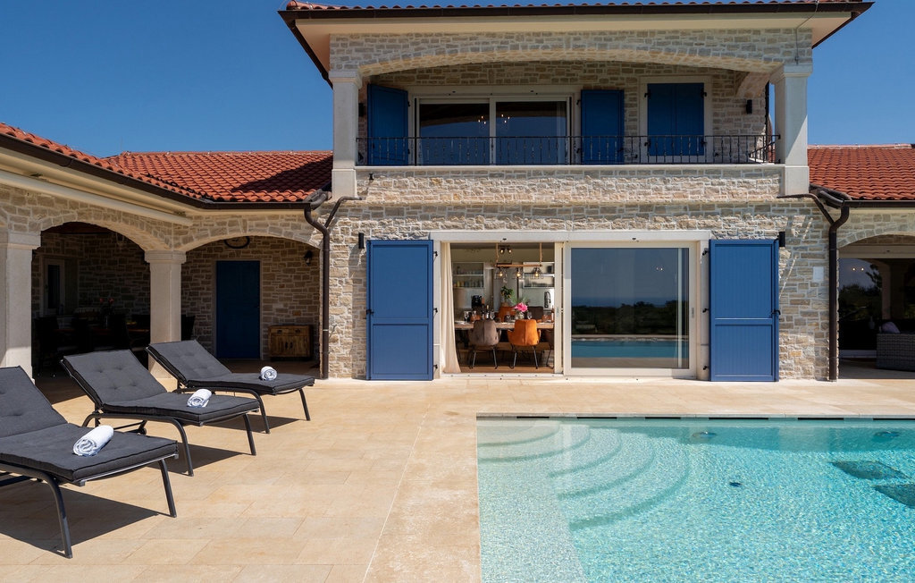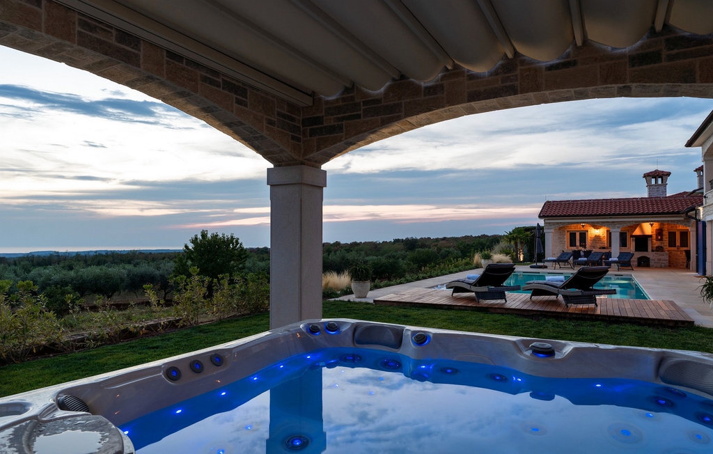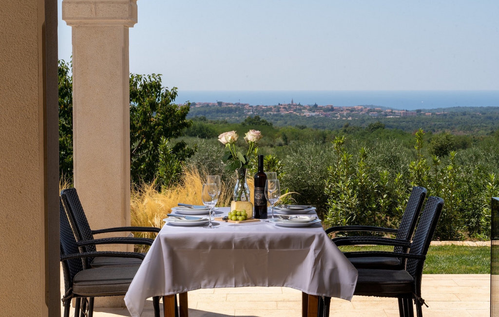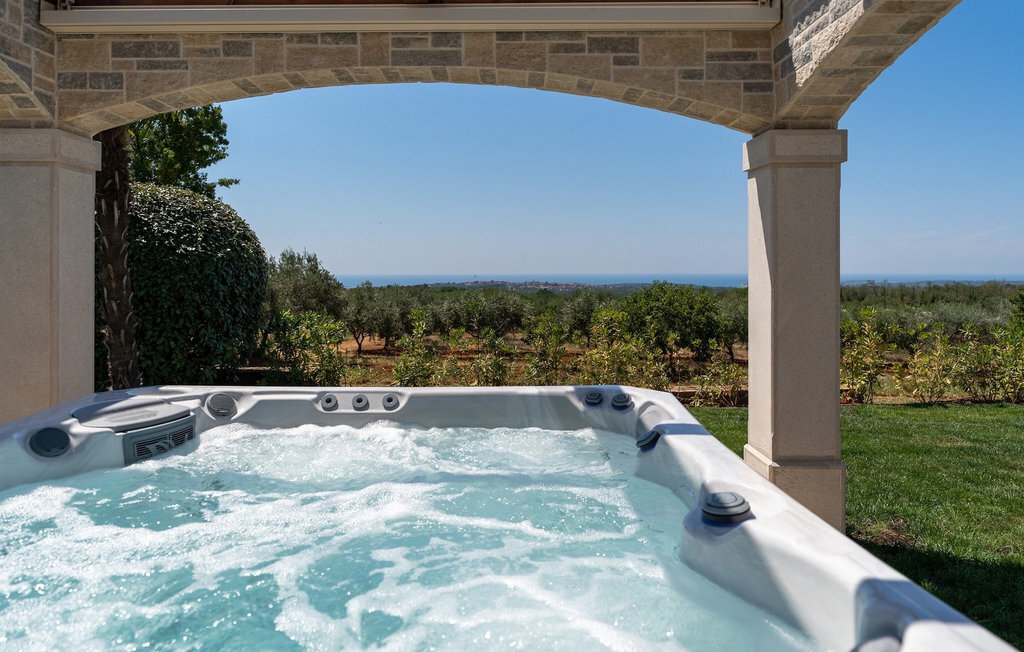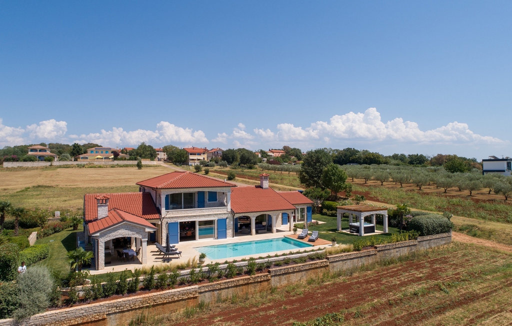 Cette belle villa se trouve près de Porec, dans un petit hameau situé à 10 km de la mer et du centre-ville. Construite en pierre et avec des matériaux de qualité, la villa a une superficie de 354 m2, dont 265 m2 au rez-de-chaussée et 89 m2 à l'étage. Cette propriété est nichée sur un terrain de 1.400 m2 composé d'un jardin bien entretenu et d'une prairie. À côté de la maison se trouve un garage de 58 m2 pouvant accueillir deux véhicules. Le rez-de-chaussée comprend un grand salon avec cheminée, une salle à manger, une cuisine, un garde-manger et 2 chambres avec salles de bains. À l'étage supérieur se trouvent 2 chambres avec salles de bain en suite. Depuis le salon, les hôtes peuvent facilement accéder à la zone de la piscine et à notre piscine privée (40 m2). Les chambres à l'étage et la zone de la piscine offrent une vue imprenable sur la mer, ce qui permet de profiter de la piscine et de contempler les oliveraies et la Méditerranée derrière. Un jacuzzi est également disponible à l'extérieur, sur demande et moyennant un supplément.Cette propriété est idéalement située dans un environnement paisible d'oliveraies et de vignobles, ce qui en fait un lieu de retraite parfait loin de la vie moderne trépidante. La villa se trouve à la périphérie d'un petit hameau, ce qui assure la paix et l'intimité parfaites des vacances en famille, mais elle n'est qu'à 10-15 minutes en voiture du joyau de l'Istrie - Porec. Porec est la plus grande station touristique d'Istrie, où vous trouverez toutes sortes d'activités. Si vous cherchez à vous occuper, à vivre des expériences extraordinaires et à découvrir un riche patrimoine culturel, Porec est l'endroit idéal pour vous, avec ses 100 ans d'expérience en matière d'hospitalité et son offre touristique maximale. Assurez-vous de ne pas manquer les nombreuses fêtes organisées dans les villages touristiques et dans le centre-ville. Il y a des clubs de plage, des cafés et après minuit, vous pouvez profiter de l'ambiance chaleureuse des bars de nuit et des discothèques. Rien que du plaisir du soir jusqu'au petit matin !