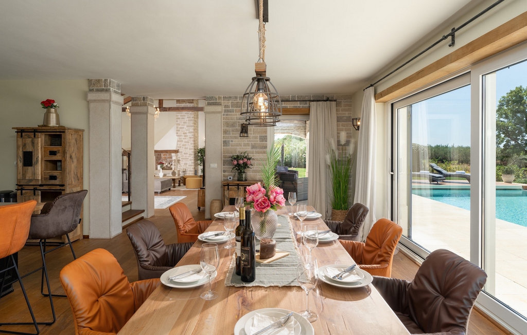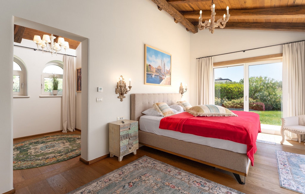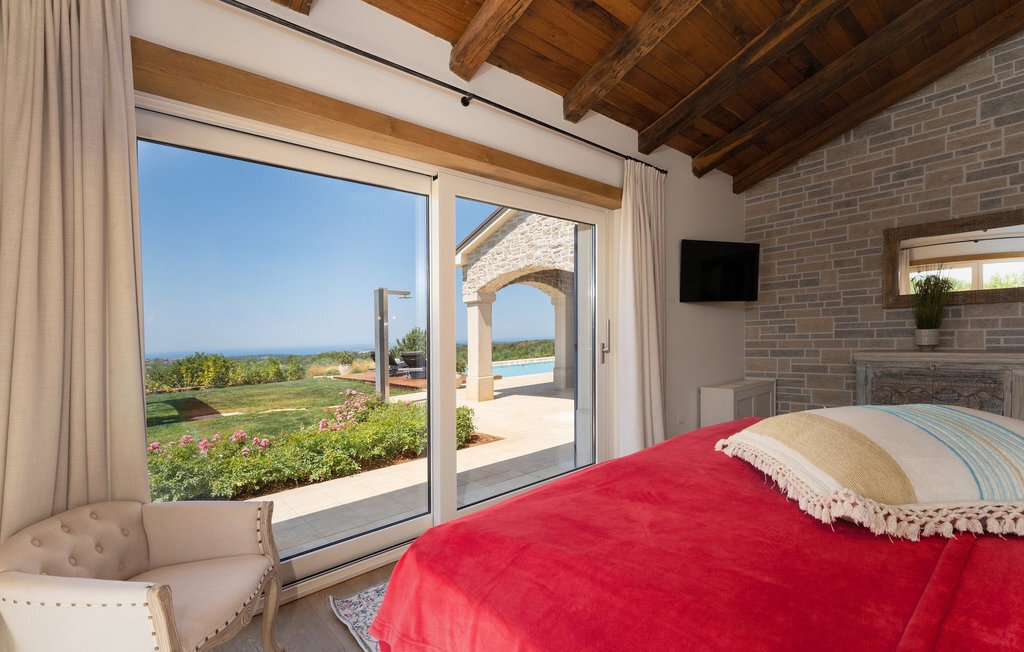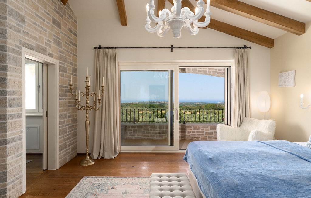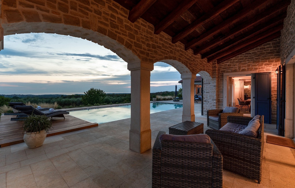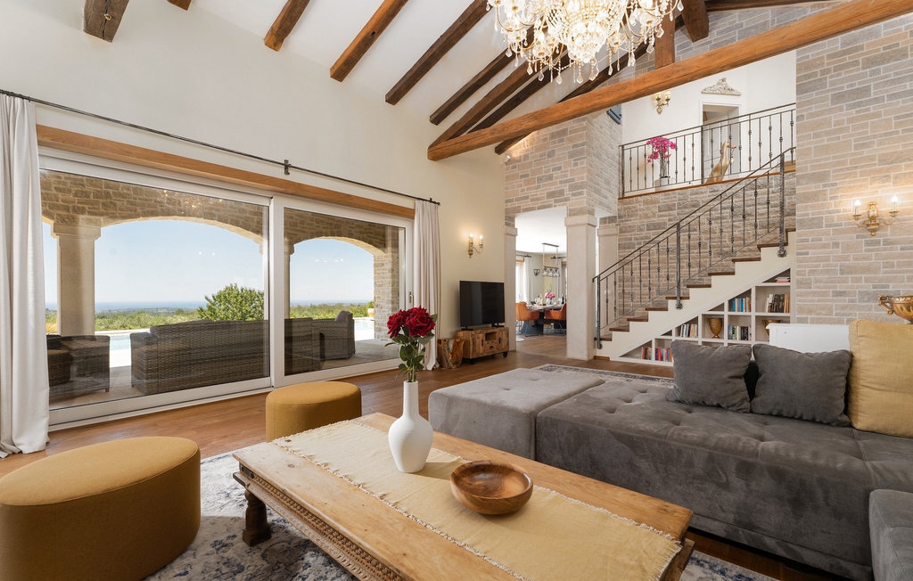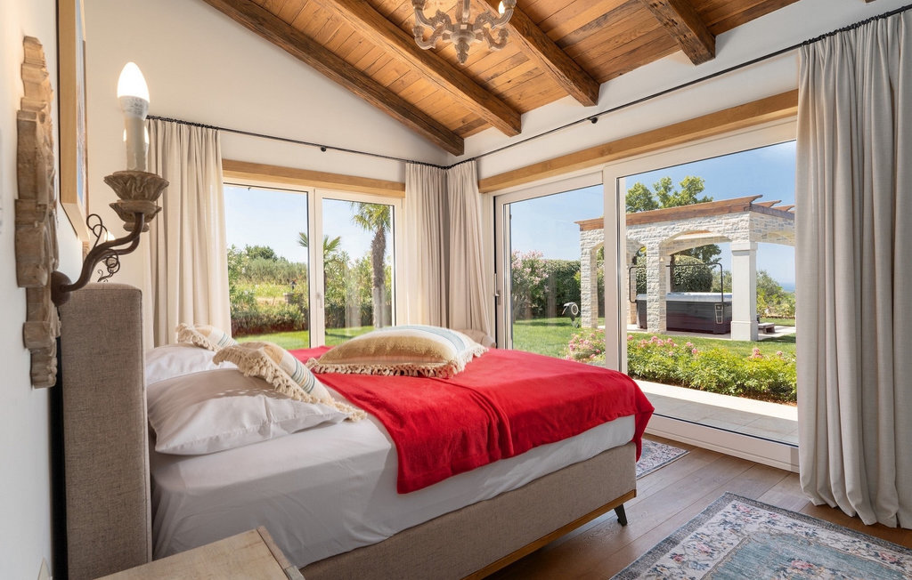 Cette belle villa se trouve près de Porec, dans un petit hameau situé à 10 km de la mer et du centre-ville. Construite en pierre et avec des matériaux de qualité, la villa a une superficie de 354 m2, dont 265 m2 au rez-de-chaussée et 89 m2 à l'étage. Cette propriété est nichée sur un terrain de 1.400 m2 composé d'un jardin bien entretenu et d'une prairie. À côté de la maison se trouve un garage de 58 m2 pouvant accueillir deux véhicules. Le rez-de-chaussée comprend un grand salon avec cheminée, une salle à manger, une cuisine, un garde-manger et 2 chambres avec salles de bains. À l'étage supérieur se trouvent 2 chambres avec salles de bain en suite. Depuis le salon, les hôtes peuvent facilement accéder à la zone de la piscine et à notre piscine privée (40 m2). Les chambres à l'étage et la zone de la piscine offrent une vue imprenable sur la mer, ce qui permet de profiter de la piscine et de contempler les oliveraies et la Méditerranée derrière. Un jacuzzi est également disponible à l'extérieur, sur demande et moyennant un supplément.Cette propriété est idéalement située dans un environnement paisible d'oliveraies et de vignobles, ce qui en fait un lieu de retraite parfait loin de la vie moderne trépidante. La villa se trouve à la périphérie d'un petit hameau, ce qui assure la paix et l'intimité parfaites des vacances en famille, mais elle n'est qu'à 10-15 minutes en voiture du joyau de l'Istrie - Porec. Porec est la plus grande station touristique d'Istrie, où vous trouverez toutes sortes d'activités. Si vous cherchez à vous occuper, à vivre des expériences extraordinaires et à découvrir un riche patrimoine culturel, Porec est l'endroit idéal pour vous, avec ses 100 ans d'expérience en matière d'hospitalité et son offre touristique maximale. Assurez-vous de ne pas manquer les nombreuses fêtes organisées dans les villages touristiques et dans le centre-ville. Il y a des clubs de plage, des cafés et après minuit, vous pouvez profiter de l'ambiance chaleureuse des bars de nuit et des discothèques. Rien que du plaisir du soir jusqu'au petit matin !