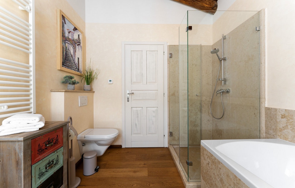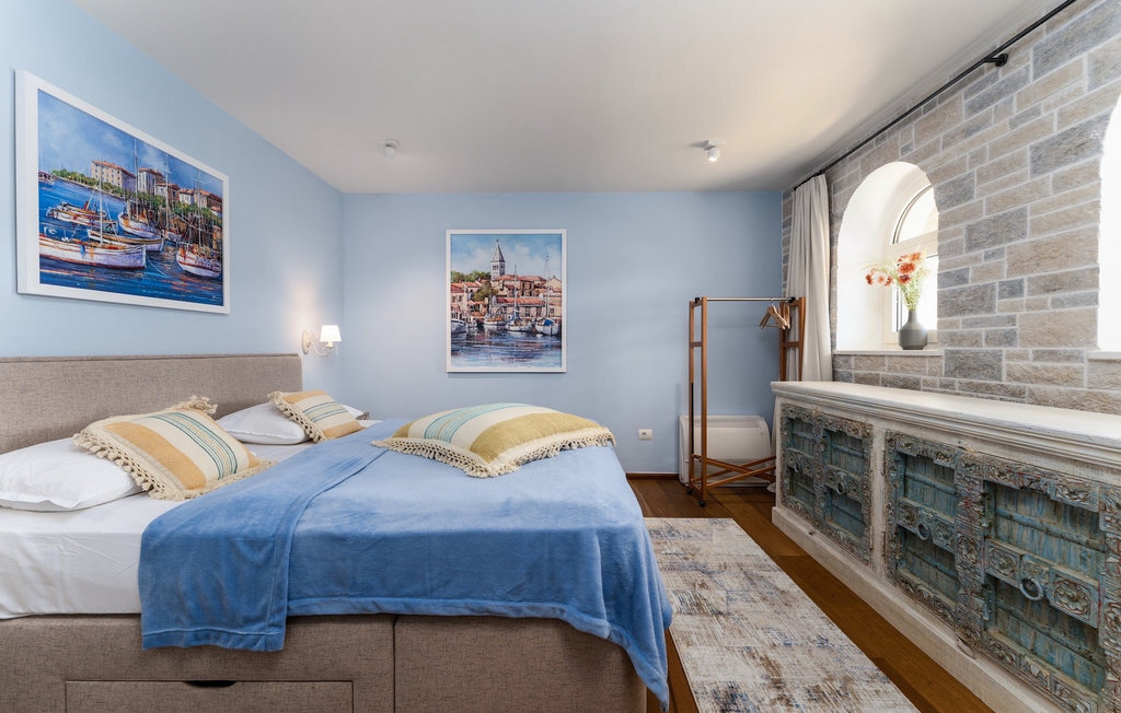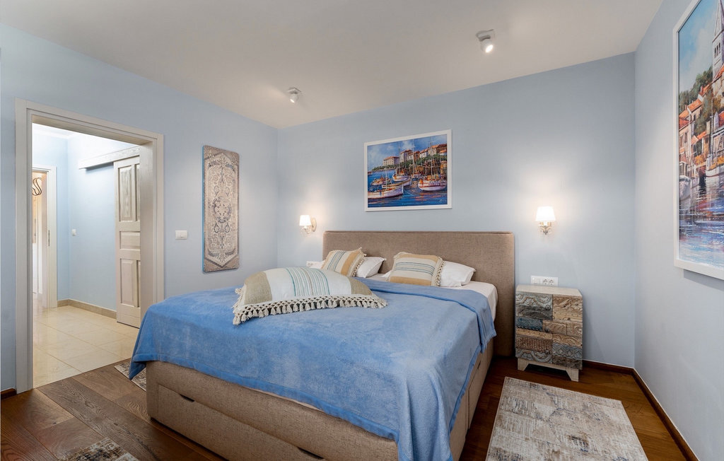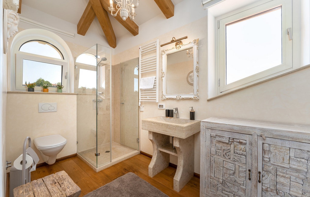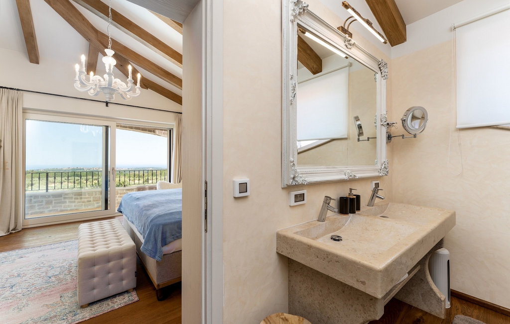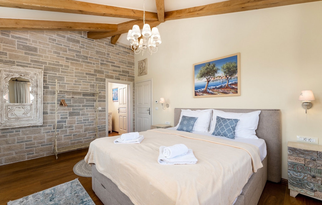 Cette belle villa se trouve près de Porec, dans un petit hameau situé à 10 km de la mer et du centre-ville. Construite en pierre et avec des matériaux de qualité, la villa a une superficie de 354 m2, dont 265 m2 au rez-de-chaussée et 89 m2 à l'étage. Cette propriété est nichée sur un terrain de 1.400 m2 composé d'un jardin bien entretenu et d'une prairie. À côté de la maison se trouve un garage de 58 m2 pouvant accueillir deux véhicules. Le rez-de-chaussée comprend un grand salon avec cheminée, une salle à manger, une cuisine, un garde-manger et 2 chambres avec salles de bains. À l'étage supérieur se trouvent 2 chambres avec salles de bain en suite. Depuis le salon, les hôtes peuvent facilement accéder à la zone de la piscine et à notre piscine privée (40 m2). Les chambres à l'étage et la zone de la piscine offrent une vue imprenable sur la mer, ce qui permet de profiter de la piscine et de contempler les oliveraies et la Méditerranée derrière. Un jacuzzi est également disponible à l'extérieur, sur demande et moyennant un supplément.Cette propriété est idéalement située dans un environnement paisible d'oliveraies et de vignobles, ce qui en fait un lieu de retraite parfait loin de la vie moderne trépidante. La villa se trouve à la périphérie d'un petit hameau, ce qui assure la paix et l'intimité parfaites des vacances en famille, mais elle n'est qu'à 10-15 minutes en voiture du joyau de l'Istrie - Porec. Porec est la plus grande station touristique d'Istrie, où vous trouverez toutes sortes d'activités. Si vous cherchez à vous occuper, à vivre des expériences extraordinaires et à découvrir un riche patrimoine culturel, Porec est l'endroit idéal pour vous, avec ses 100 ans d'expérience en matière d'hospitalité et son offre touristique maximale. Assurez-vous de ne pas manquer les nombreuses fêtes organisées dans les villages touristiques et dans le centre-ville. Il y a des clubs de plage, des cafés et après minuit, vous pouvez profiter de l'ambiance chaleureuse des bars de nuit et des discothèques. Rien que du plaisir du soir jusqu'au petit matin !