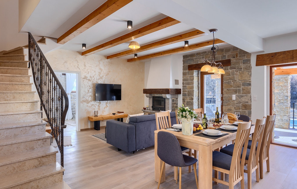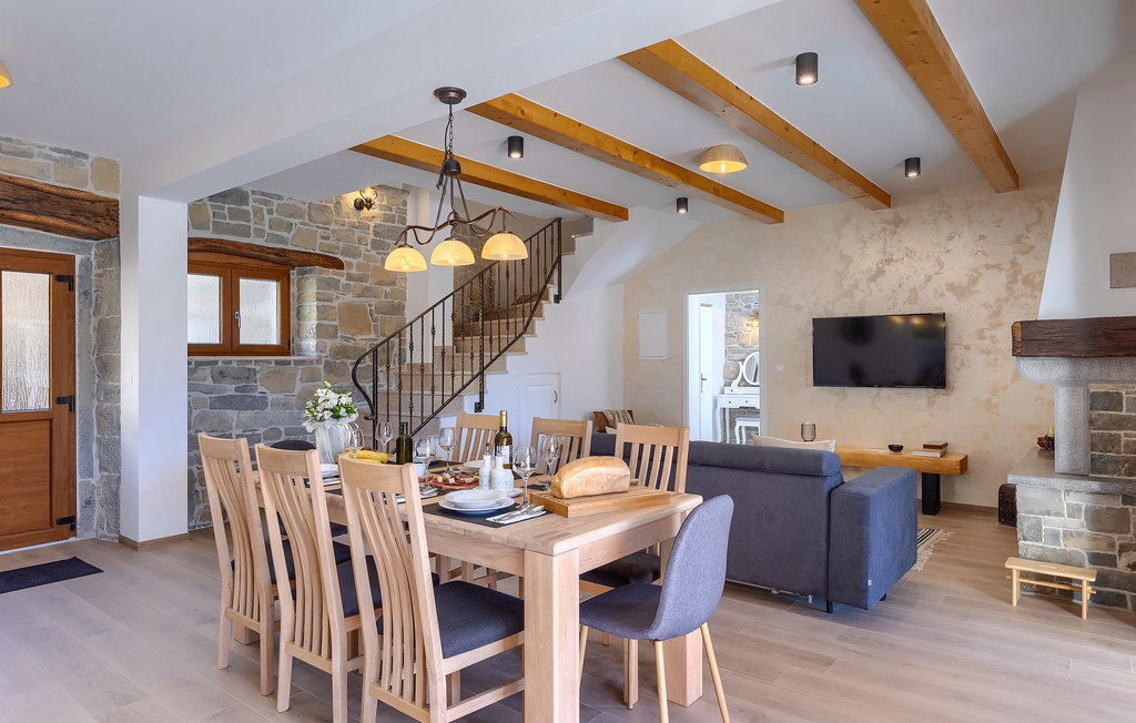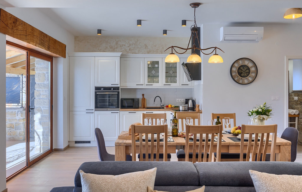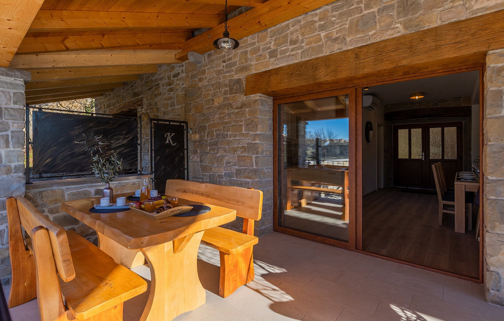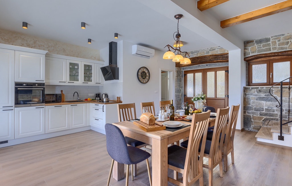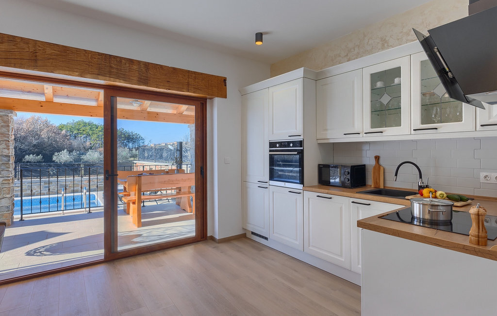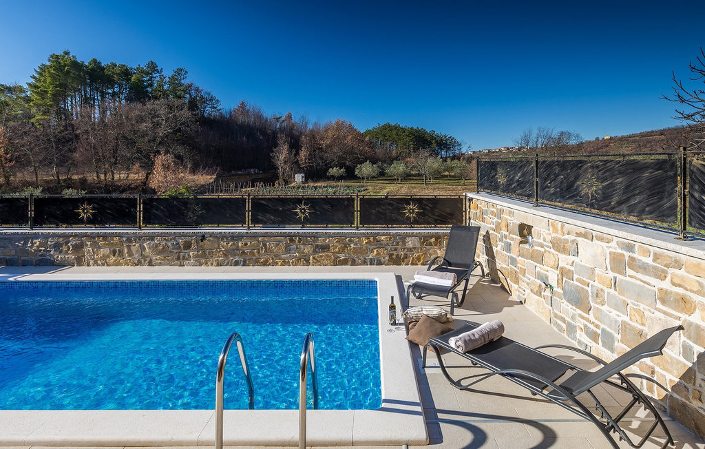 Villa Poji est une charmante villa située dans le petit hameau de Mareneko polje, dans la commune de Buzet. La villa a été entièrement restaurée et vous donne l'impression d'être chez vous. Avec une surface habitable totale de 215 mètres carrés et 3 chambres à coucher aménagées avec soin, elle peut accueillir jusqu'à 6+2 personnes. Le rez-de-chaussée de la villa se compose d'un salon et d'une salle à manger très lumineux et aérés, d'une cuisine entièrement équipée et d'une chambre à coucher avec salle de bain privée. À l'étage, tu trouveras deux autres chambres à coucher. La chambre principale avec un lit double dispose d'une salle de bain privée avec baignoire, tandis que l'autre chambre a deux lits simples et également une salle de bain privée avec douche. Depuis le salon, vous avez un accès direct à la salle à manger extérieure couverte, où vous pourrez profiter d'un agréable dîner en famille et d'une vue magnifique sur les environs. À quelques pas de là se trouve l'accueillante piscine privée, l'endroit parfait pour se rafraîchir ou se détendre sur les confortables chaises longues. À la fin de la journée, laissez tous vos soucis derrière vous dans l'espace spa et détendez-vous dans le jacuzzi et le sauna. Des vélos sont également à votre disposition pour vous permettre d'explorer et de découvrir les environs plus lointains. Si vous êtes à la recherche de vacances calmes et reposantes, la Villa Poji est le bon choix pour vous. Ne laissez pas passer cette occasion et réservez la Villa Poji dès maintenant!La villa familiale Poji est située dans un petit hameau de la commune de Buzet, dans le centre de l'Istrie. La villa est entourée d'oliviers et n'a que peu de voisins. Si vous êtes à la recherche de vacances relaxantes et tranquilles, cette villa est l'endroit idéal. Buzet est la première grande ville où vous pourrez faire vos courses alimentaires. Si vous êtes à la recherche de restaurants, il y a dans les environs quelques-uns des meilleurs restaurants d'Istrie qui servent des plats traditionnels comme des pâtes faites maison avec des truffes, du bœuf d'Istrie, le tout arrosé d'un verre du meilleur Malvasia. L'Istrie centrale est connue pour ses nombreuses pistes cyclables et sentiers de randonnée qui permettent de profiter de la nature et de découvrir de petites villes de montagne comme Buzet, Motovun et Groznjan. Pour les amateurs de culture, nous recommandons une visite de la ville de Pula avec son amphithéâtre et de Porec avec la basilique Eufrazier. Si vous souhaitez passer vos vacances à la plage, Novigrad est la première plage, mais ne manquez pas de découvrir de nombreuses autres criques et plages cachées en Istrie.