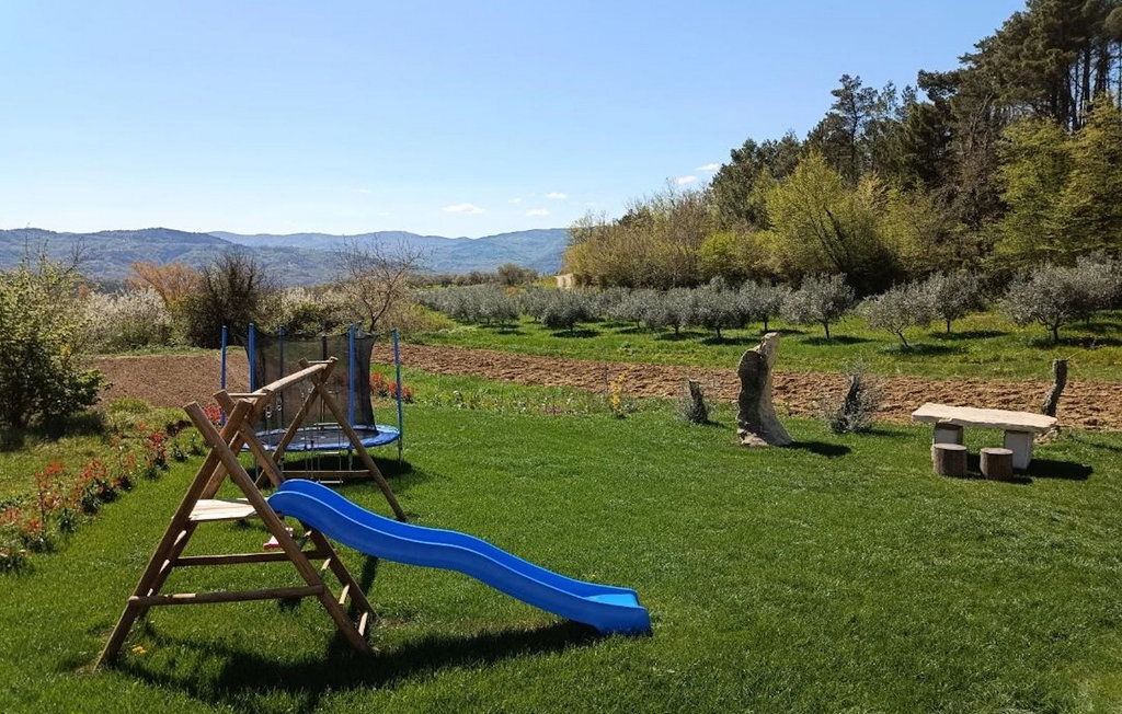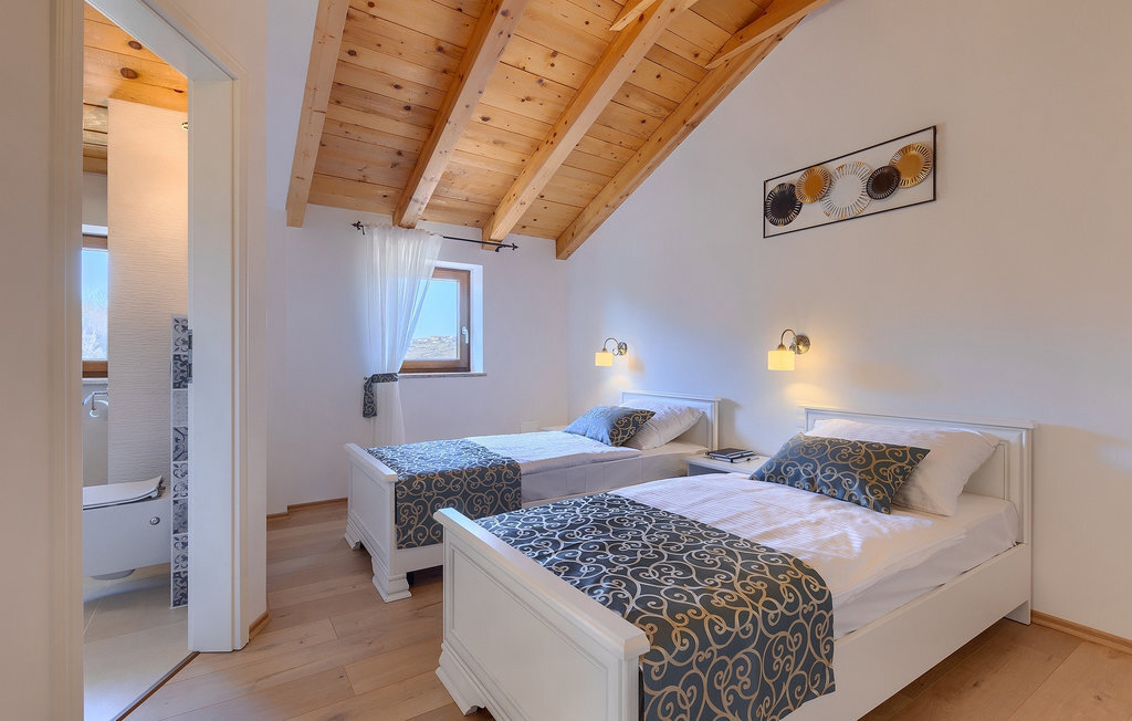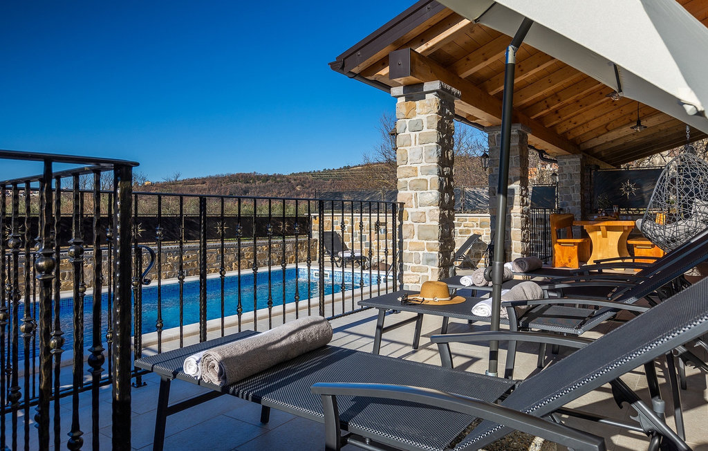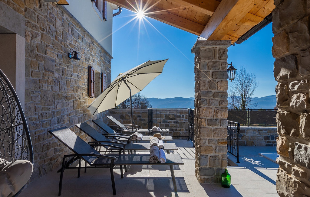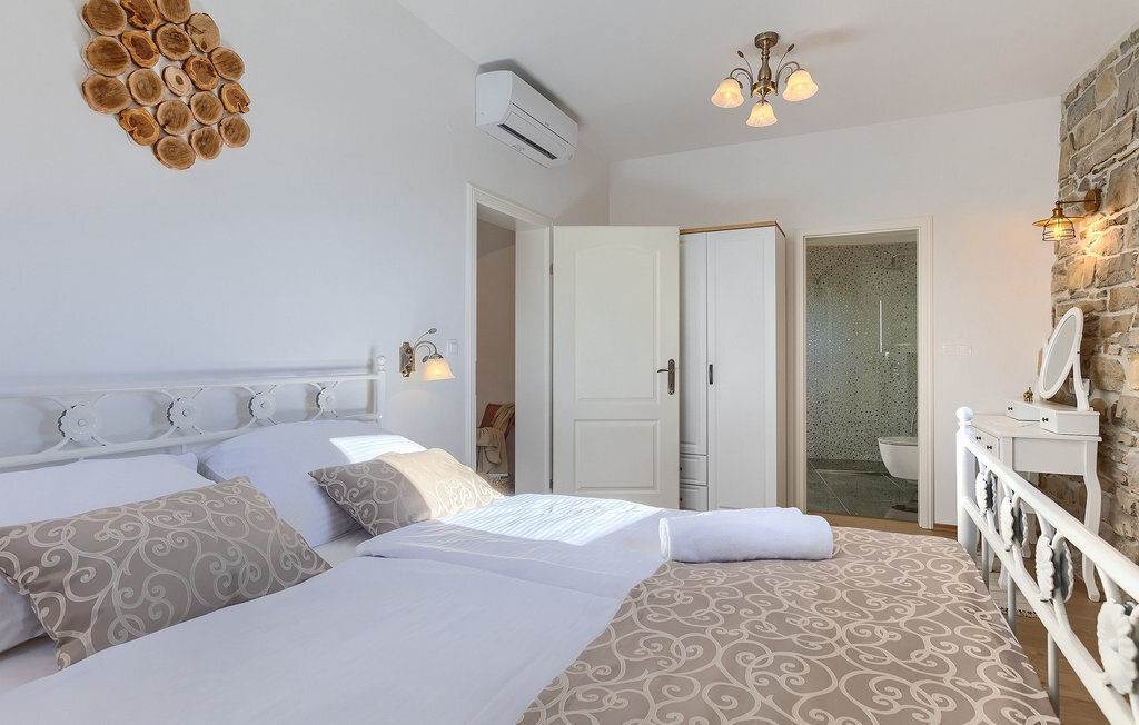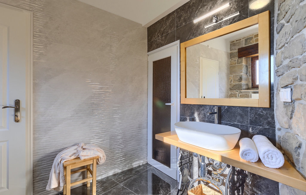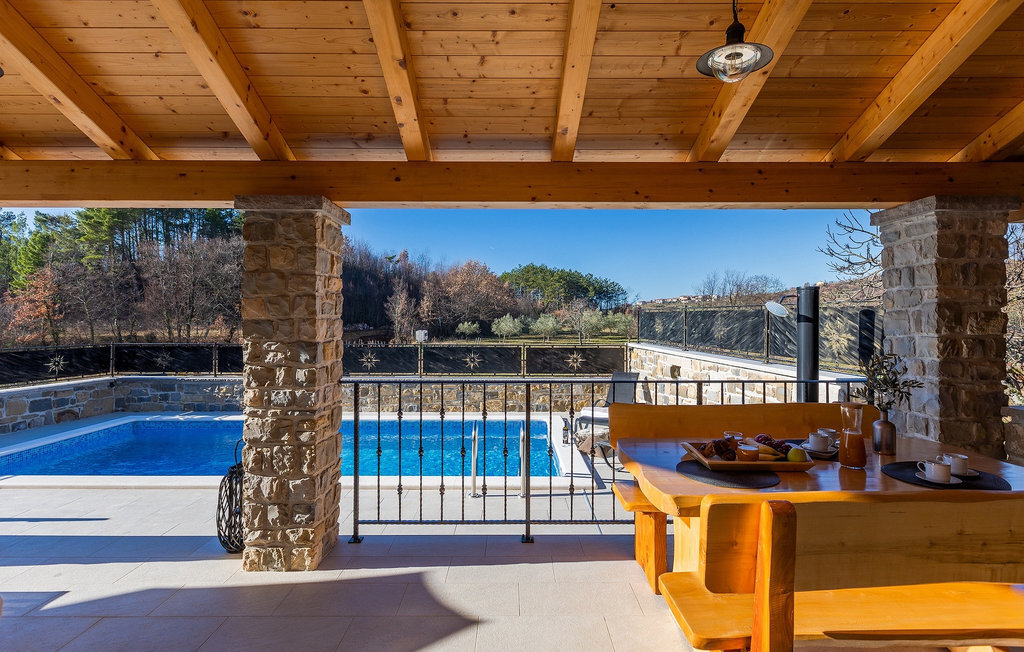 Villa Poji est une charmante villa située dans le petit hameau de Mareneko polje, dans la commune de Buzet. La villa a été entièrement restaurée et vous donne l'impression d'être chez vous. Avec une surface habitable totale de 215 mètres carrés et 3 chambres à coucher aménagées avec soin, elle peut accueillir jusqu'à 6+2 personnes. Le rez-de-chaussée de la villa se compose d'un salon et d'une salle à manger très lumineux et aérés, d'une cuisine entièrement équipée et d'une chambre à coucher avec salle de bain privée. À l'étage, tu trouveras deux autres chambres à coucher. La chambre principale avec un lit double dispose d'une salle de bain privée avec baignoire, tandis que l'autre chambre a deux lits simples et également une salle de bain privée avec douche. Depuis le salon, vous avez un accès direct à la salle à manger extérieure couverte, où vous pourrez profiter d'un agréable dîner en famille et d'une vue magnifique sur les environs. À quelques pas de là se trouve l'accueillante piscine privée, l'endroit parfait pour se rafraîchir ou se détendre sur les confortables chaises longues. À la fin de la journée, laissez tous vos soucis derrière vous dans l'espace spa et détendez-vous dans le jacuzzi et le sauna. Des vélos sont également à votre disposition pour vous permettre d'explorer et de découvrir les environs plus lointains. Si vous êtes à la recherche de vacances calmes et reposantes, la Villa Poji est le bon choix pour vous. Ne laissez pas passer cette occasion et réservez la Villa Poji dès maintenant!La villa familiale Poji est située dans un petit hameau de la commune de Buzet, dans le centre de l'Istrie. La villa est entourée d'oliviers et n'a que peu de voisins. Si vous êtes à la recherche de vacances relaxantes et tranquilles, cette villa est l'endroit idéal. Buzet est la première grande ville où vous pourrez faire vos courses alimentaires. Si vous êtes à la recherche de restaurants, il y a dans les environs quelques-uns des meilleurs restaurants d'Istrie qui servent des plats traditionnels comme des pâtes faites maison avec des truffes, du bœuf d'Istrie, le tout arrosé d'un verre du meilleur Malvasia. L'Istrie centrale est connue pour ses nombreuses pistes cyclables et sentiers de randonnée qui permettent de profiter de la nature et de découvrir de petites villes de montagne comme Buzet, Motovun et Groznjan. Pour les amateurs de culture, nous recommandons une visite de la ville de Pula avec son amphithéâtre et de Porec avec la basilique Eufrazier. Si vous souhaitez passer vos vacances à la plage, Novigrad est la première plage, mais ne manquez pas de découvrir de nombreuses autres criques et plages cachées en Istrie.