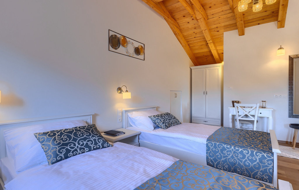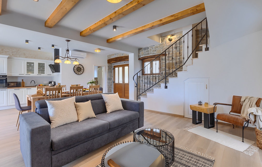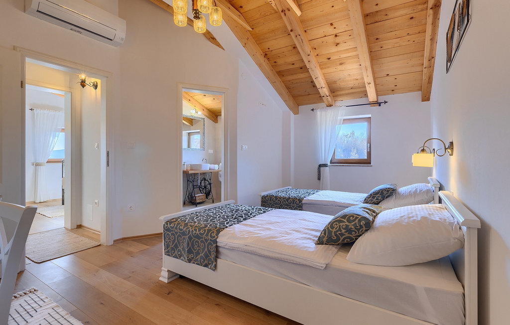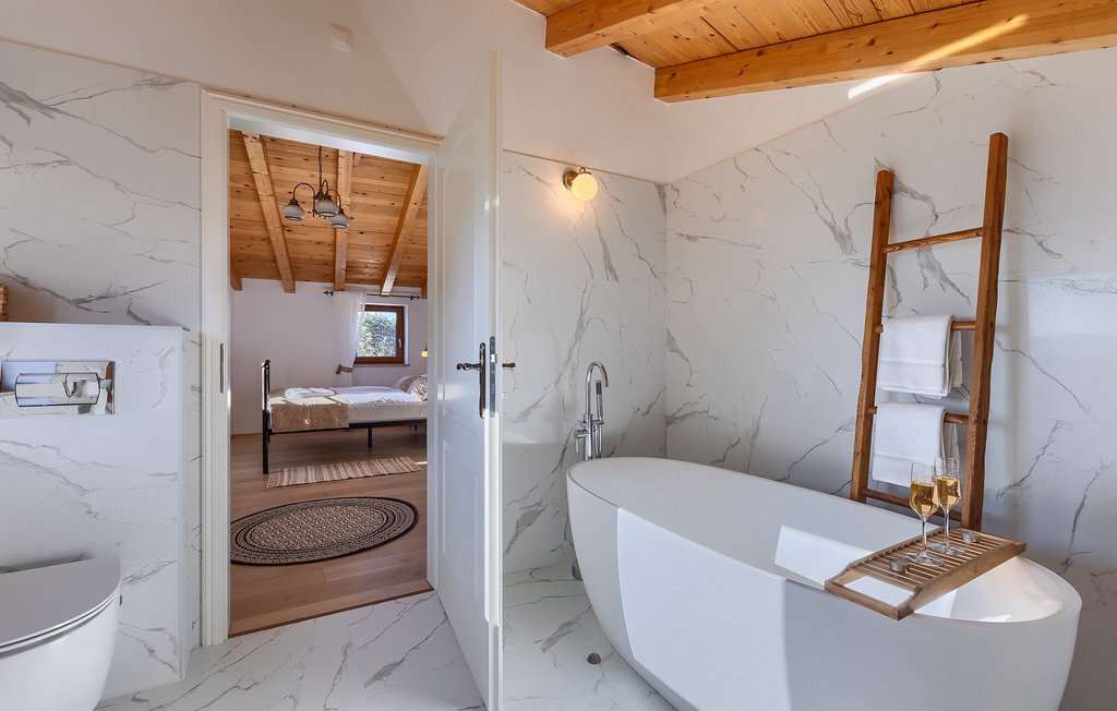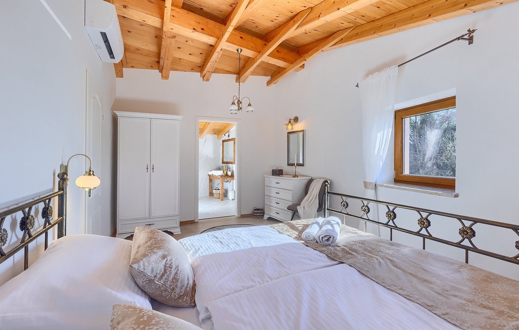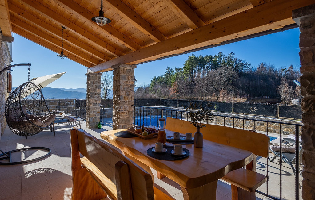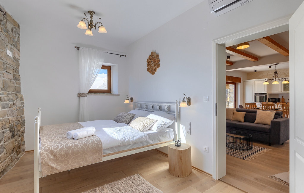 Villa Poji est une charmante villa située dans le petit hameau de Mareneko polje, dans la commune de Buzet. La villa a été entièrement restaurée et vous donne l'impression d'être chez vous. Avec une surface habitable totale de 215 mètres carrés et 3 chambres à coucher aménagées avec soin, elle peut accueillir jusqu'à 6+2 personnes. Le rez-de-chaussée de la villa se compose d'un salon et d'une salle à manger très lumineux et aérés, d'une cuisine entièrement équipée et d'une chambre à coucher avec salle de bain privée. À l'étage, tu trouveras deux autres chambres à coucher. La chambre principale avec un lit double dispose d'une salle de bain privée avec baignoire, tandis que l'autre chambre a deux lits simples et également une salle de bain privée avec douche. Depuis le salon, vous avez un accès direct à la salle à manger extérieure couverte, où vous pourrez profiter d'un agréable dîner en famille et d'une vue magnifique sur les environs. À quelques pas de là se trouve l'accueillante piscine privée, l'endroit parfait pour se rafraîchir ou se détendre sur les confortables chaises longues. À la fin de la journée, laissez tous vos soucis derrière vous dans l'espace spa et détendez-vous dans le jacuzzi et le sauna. Des vélos sont également à votre disposition pour vous permettre d'explorer et de découvrir les environs plus lointains. Si vous êtes à la recherche de vacances calmes et reposantes, la Villa Poji est le bon choix pour vous. Ne laissez pas passer cette occasion et réservez la Villa Poji dès maintenant!La villa familiale Poji est située dans un petit hameau de la commune de Buzet, dans le centre de l'Istrie. La villa est entourée d'oliviers et n'a que peu de voisins. Si vous êtes à la recherche de vacances relaxantes et tranquilles, cette villa est l'endroit idéal. Buzet est la première grande ville où vous pourrez faire vos courses alimentaires. Si vous êtes à la recherche de restaurants, il y a dans les environs quelques-uns des meilleurs restaurants d'Istrie qui servent des plats traditionnels comme des pâtes faites maison avec des truffes, du bœuf d'Istrie, le tout arrosé d'un verre du meilleur Malvasia. L'Istrie centrale est connue pour ses nombreuses pistes cyclables et sentiers de randonnée qui permettent de profiter de la nature et de découvrir de petites villes de montagne comme Buzet, Motovun et Groznjan. Pour les amateurs de culture, nous recommandons une visite de la ville de Pula avec son amphithéâtre et de Porec avec la basilique Eufrazier. Si vous souhaitez passer vos vacances à la plage, Novigrad est la première plage, mais ne manquez pas de découvrir de nombreuses autres criques et plages cachées en Istrie.