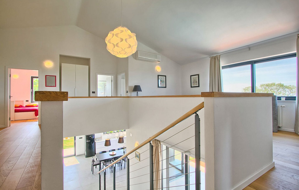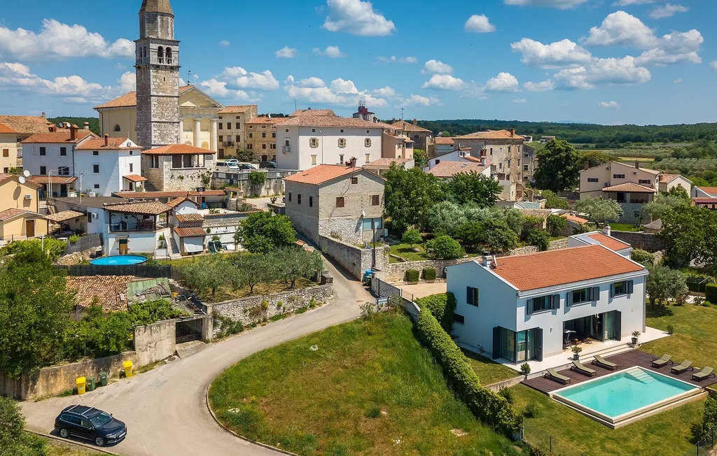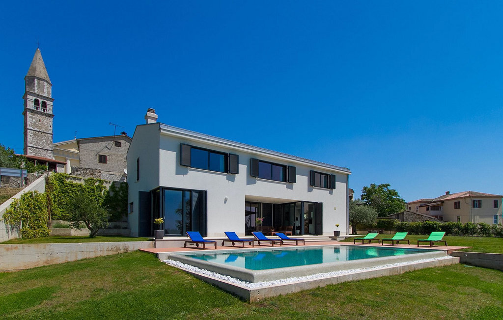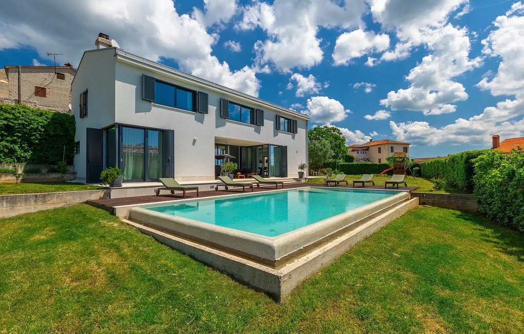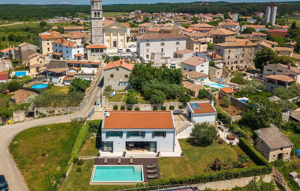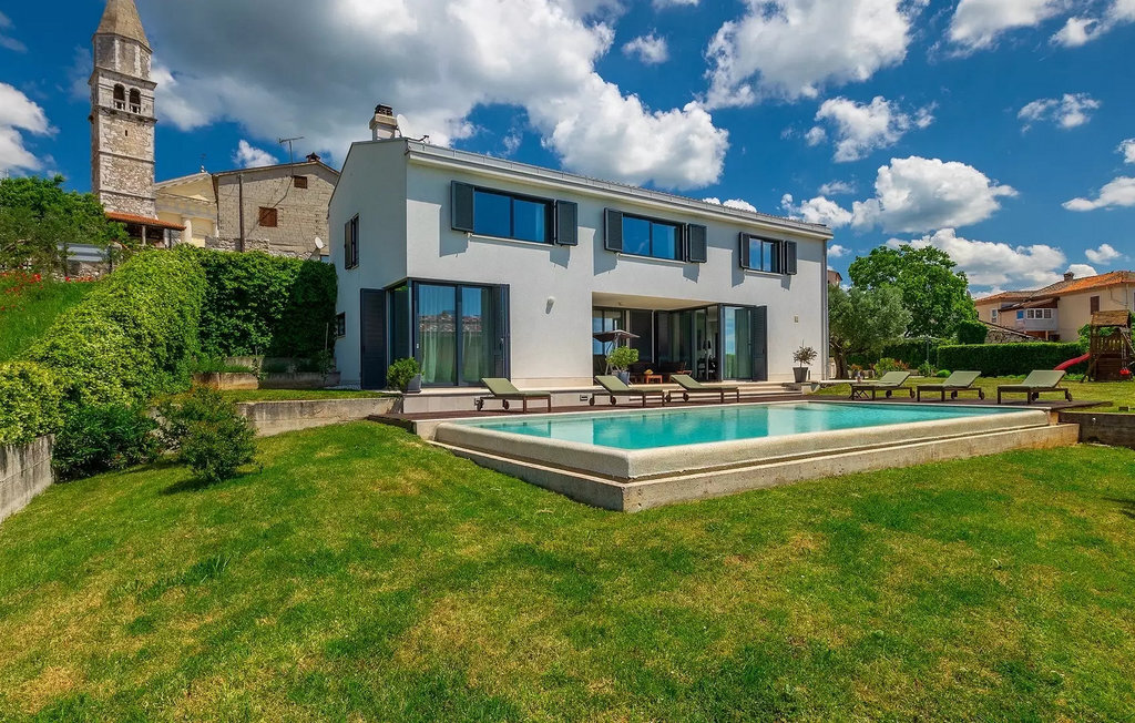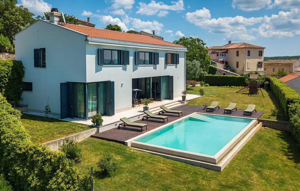 Villa Anna est une villa moderne et charmante en Istrie pouvant accueillir 8 personnes au total. Elle est idéale pour des vacances reposantes en Croatie. La villa dispose de superbes équipements, tant à l'intérieur qu'à l'extérieur. Les hôtes peuvent profiter du chaud soleil méditerranéen sur les confortables chaises longues au bord de la piscine, par exemple en lisant un bon livre ou en faisant des mots croisés. Après le bain de soleil, rafraîchissez-vous en plongeant dans la piscine ou en buvant une boisson fraîche. Le grand avantage de la piscine est bien sûr que les enfants restent occupés longtemps et que les parents peuvent se détendre pleinement. Préparez de délicieux repas sur le barbecue électrique et dégustez-les dans la salle à manger extérieure ombragée. À quelques pas de la piscine, vous trouverez un espace lounge couvert et une balançoire, parfaits pour passer des soirées d'été relaxantes en famille ou entre amis. De là, vous entrez dans le salon, la salle à manger et la cuisine entièrement équipée, qui sont inondés de lumière naturelle grâce à de grandes fenêtres. Tout au long du rez-de-chaussée et du premier étage, les hôtes seront entourés d'un design minimaliste et de tons gris, blancs et bruns. La villa se compose de 3 chambres à coucher et de 2 salles de bain au total, toutes situées au premier étage. Deux chambres à coucher ont des lits doubles et l'une d'entre elles a même sa propre salle de bain avec baignoire. À cet étage, les hôtes trouveront également une chambre avec deux lits simples, une salle de bain commune avec douche et un canapé-lit sur la galerie pour deux personnes. La villa est entièrement climatisée, elle dispose du Wi-Fi et les enfants ont également une table de ping-pong et un baby-foot pour s'amuser. Si vous cherchez à vous détendre pendant vos vacances tout en séjournant dans une villa moderne et élégante en Istrie, la Villa Anna est le bon choix.Visnjan est une petite ville istrienne située au sommet d'une colline. Elle est entourée de forêts et se trouve à 10 km au nord-est de Porec. L'ancienne terrasse sur la place, à laquelle on accède par une arche vénitienne, confère une vue étonnante sur la mer. Depuis l'époque de la domination vénitienne, Vinjan était un centre commercial réputé, où l'on vendait toutes sortes de produits agricoles et d'outils. Aujourd'hui encore, un marché ouvert traditionnel a lieu chaque dernier jeudi du mois, ce qui en fait une attraction particulière pour les personnes venues de toute l'Istrie.