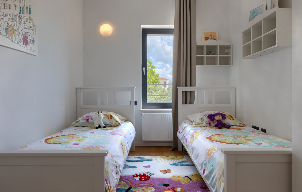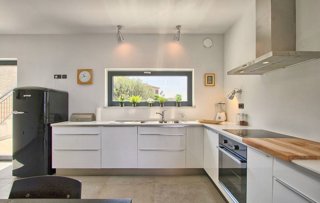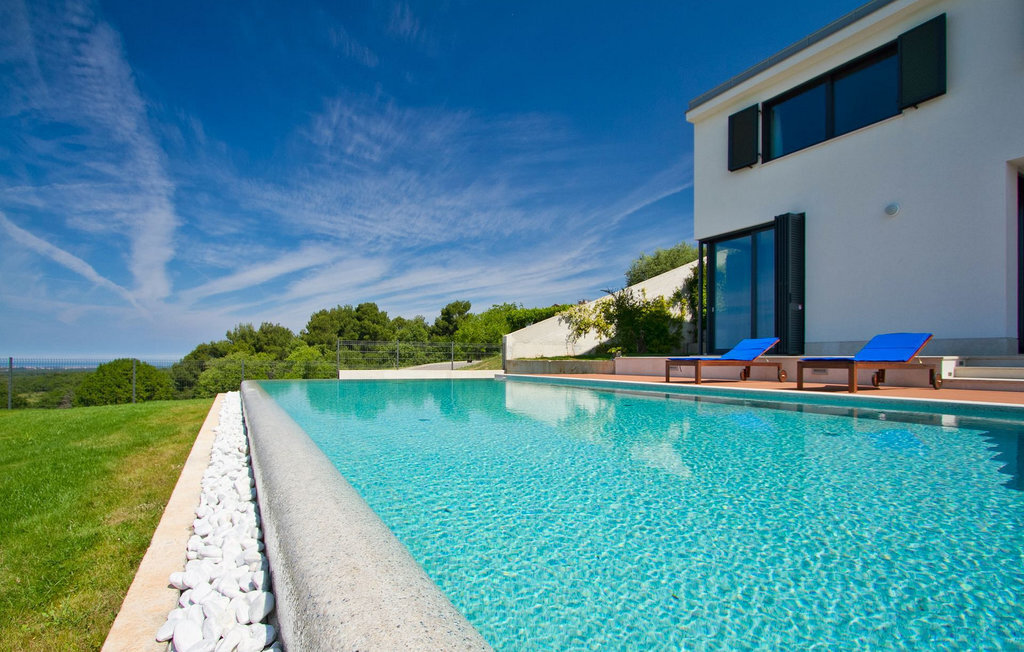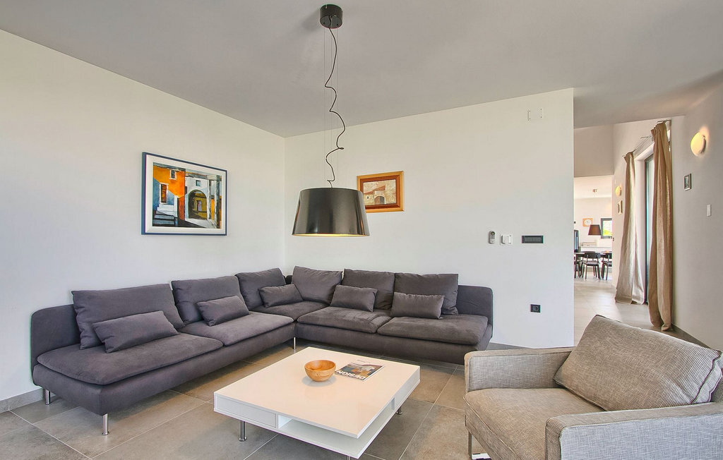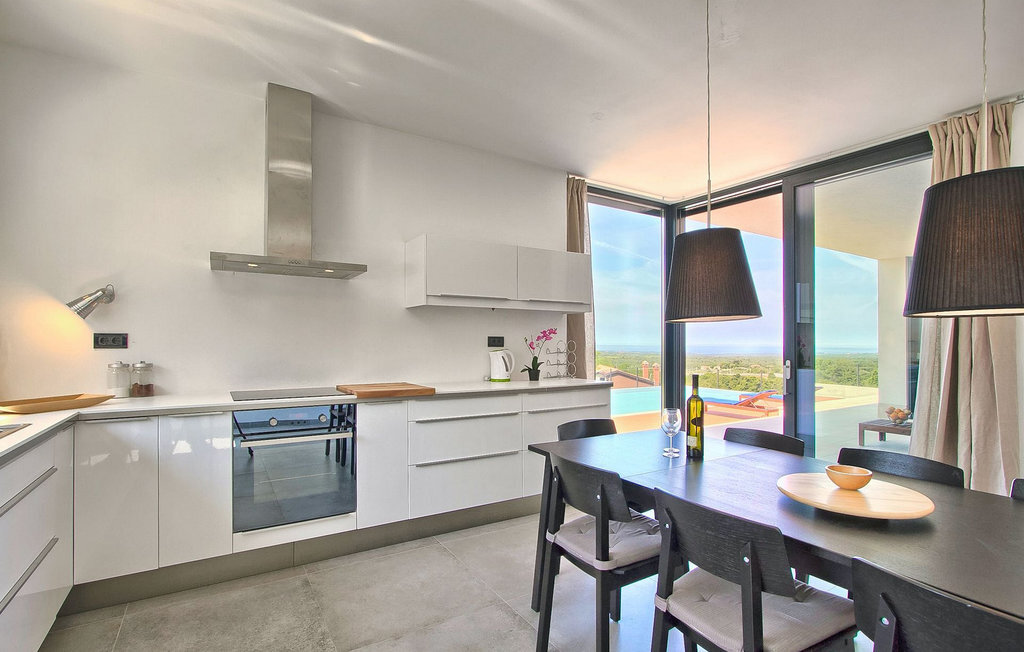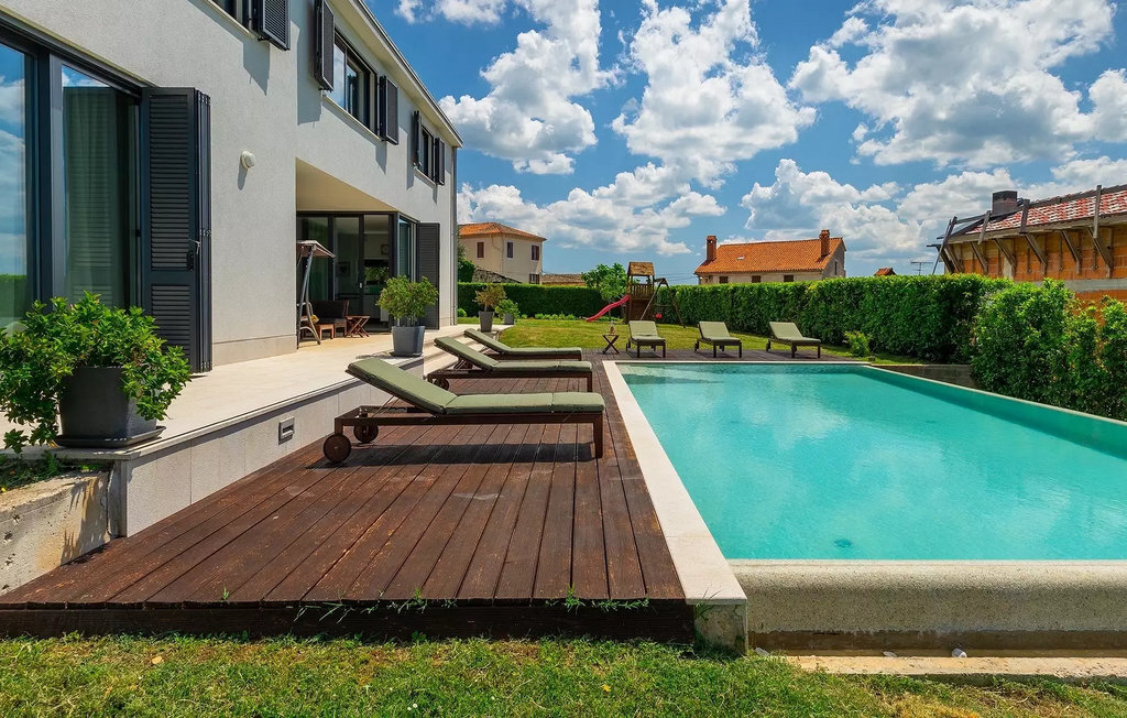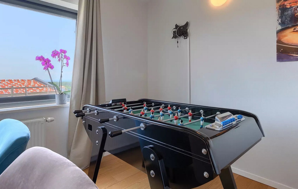 Villa Anna est une villa moderne et charmante en Istrie pouvant accueillir 8 personnes au total. Elle est idéale pour des vacances reposantes en Croatie. La villa dispose de superbes équipements, tant à l'intérieur qu'à l'extérieur. Les hôtes peuvent profiter du chaud soleil méditerranéen sur les confortables chaises longues au bord de la piscine, par exemple en lisant un bon livre ou en faisant des mots croisés. Après le bain de soleil, rafraîchissez-vous en plongeant dans la piscine ou en buvant une boisson fraîche. Le grand avantage de la piscine est bien sûr que les enfants restent occupés longtemps et que les parents peuvent se détendre pleinement. Préparez de délicieux repas sur le barbecue électrique et dégustez-les dans la salle à manger extérieure ombragée. À quelques pas de la piscine, vous trouverez un espace lounge couvert et une balançoire, parfaits pour passer des soirées d'été relaxantes en famille ou entre amis. De là, vous entrez dans le salon, la salle à manger et la cuisine entièrement équipée, qui sont inondés de lumière naturelle grâce à de grandes fenêtres. Tout au long du rez-de-chaussée et du premier étage, les hôtes seront entourés d'un design minimaliste et de tons gris, blancs et bruns. La villa se compose de 3 chambres à coucher et de 2 salles de bain au total, toutes situées au premier étage. Deux chambres à coucher ont des lits doubles et l'une d'entre elles a même sa propre salle de bain avec baignoire. À cet étage, les hôtes trouveront également une chambre avec deux lits simples, une salle de bain commune avec douche et un canapé-lit sur la galerie pour deux personnes. La villa est entièrement climatisée, elle dispose du Wi-Fi et les enfants ont également une table de ping-pong et un baby-foot pour s'amuser. Si vous cherchez à vous détendre pendant vos vacances tout en séjournant dans une villa moderne et élégante en Istrie, la Villa Anna est le bon choix.Visnjan est une petite ville istrienne située au sommet d'une colline. Elle est entourée de forêts et se trouve à 10 km au nord-est de Porec. L'ancienne terrasse sur la place, à laquelle on accède par une arche vénitienne, confère une vue étonnante sur la mer. Depuis l'époque de la domination vénitienne, Vinjan était un centre commercial réputé, où l'on vendait toutes sortes de produits agricoles et d'outils. Aujourd'hui encore, un marché ouvert traditionnel a lieu chaque dernier jeudi du mois, ce qui en fait une attraction particulière pour les personnes venues de toute l'Istrie.