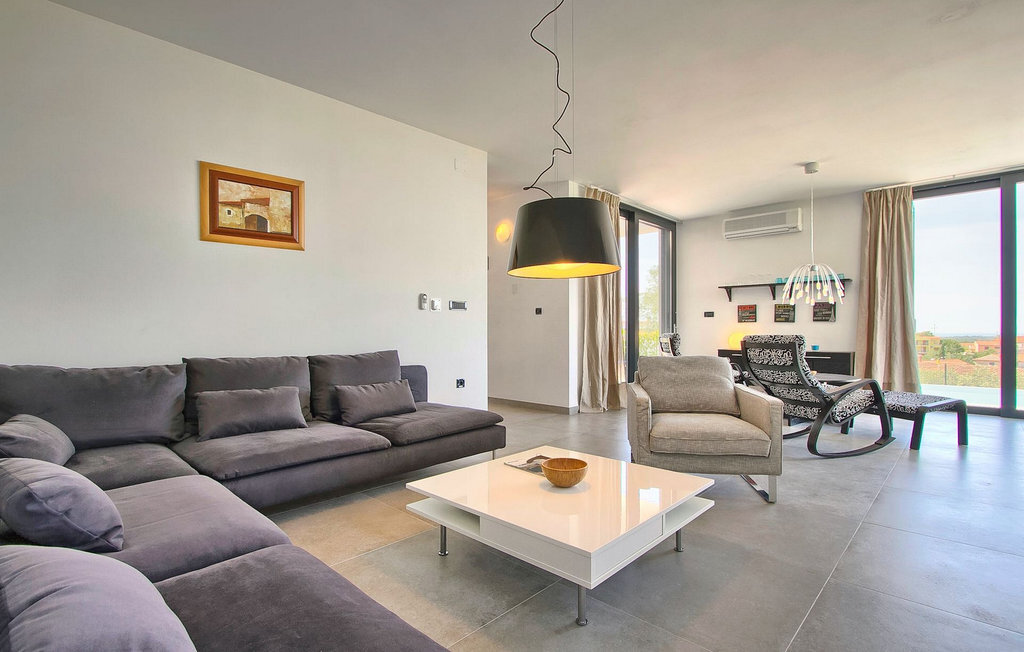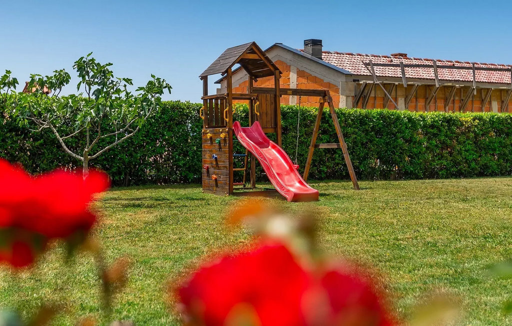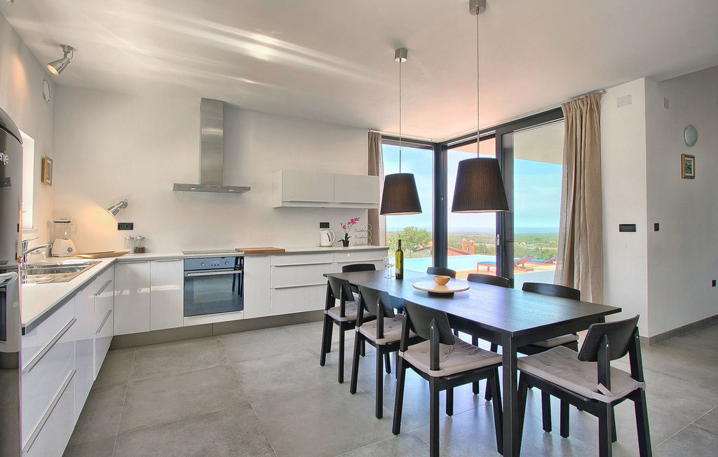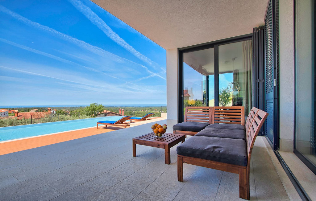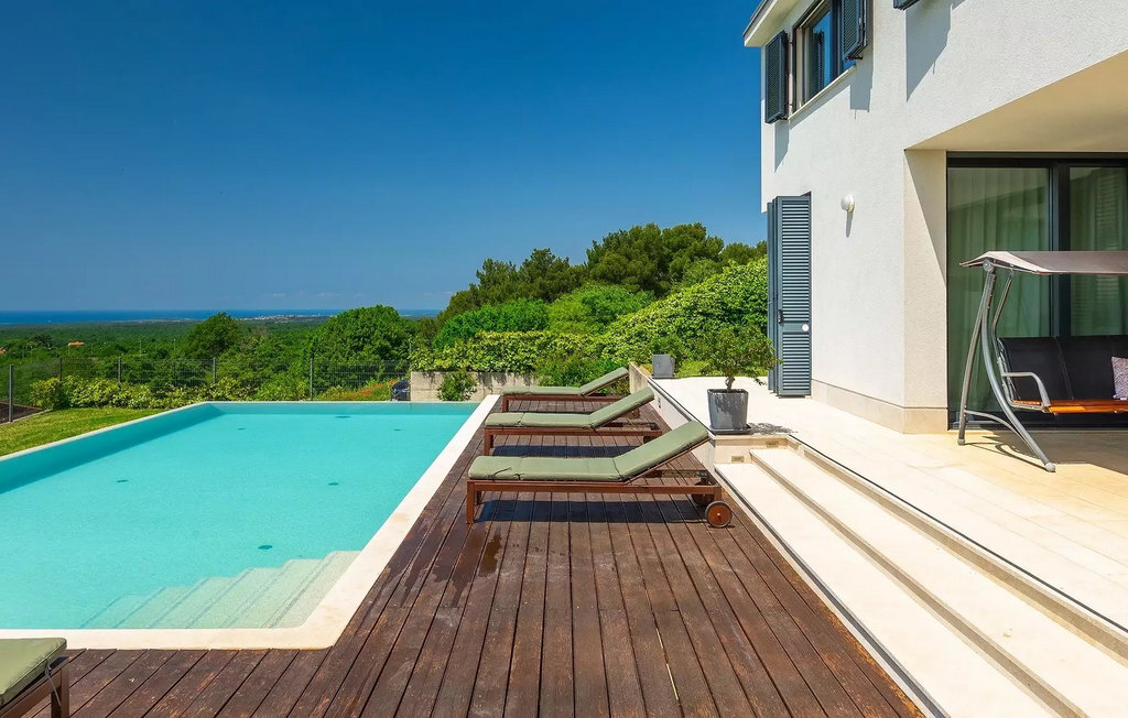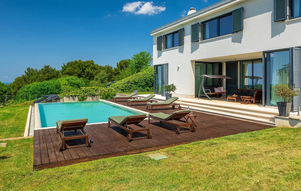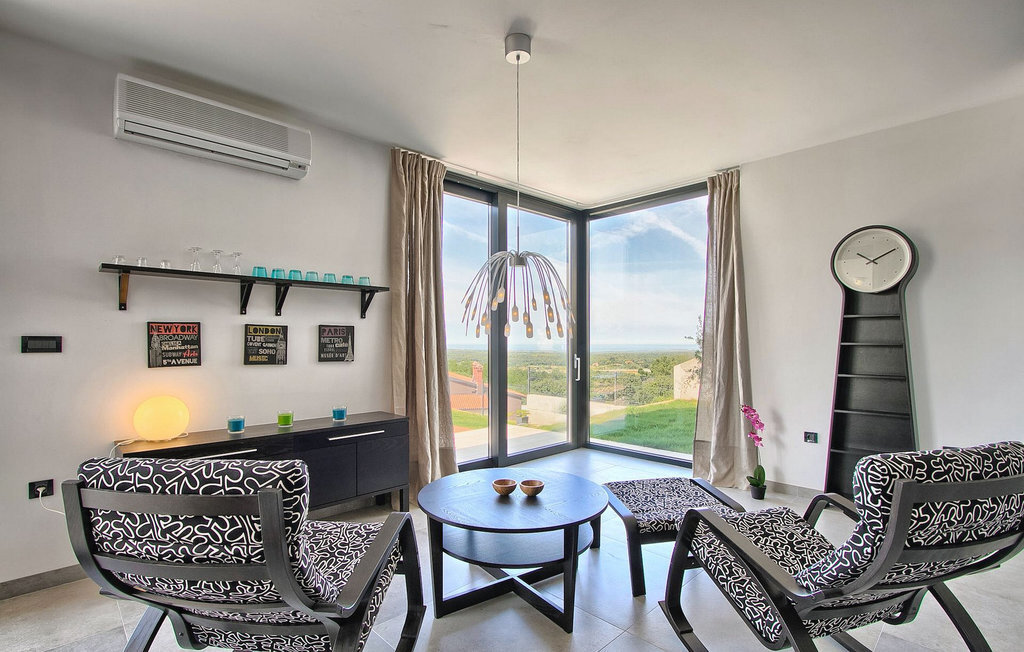 Villa Anna est une villa moderne et charmante en Istrie pouvant accueillir 8 personnes au total. Elle est idéale pour des vacances reposantes en Croatie. La villa dispose de superbes équipements, tant à l'intérieur qu'à l'extérieur. Les hôtes peuvent profiter du chaud soleil méditerranéen sur les confortables chaises longues au bord de la piscine, par exemple en lisant un bon livre ou en faisant des mots croisés. Après le bain de soleil, rafraîchissez-vous en plongeant dans la piscine ou en buvant une boisson fraîche. Le grand avantage de la piscine est bien sûr que les enfants restent occupés longtemps et que les parents peuvent se détendre pleinement. Préparez de délicieux repas sur le barbecue électrique et dégustez-les dans la salle à manger extérieure ombragée. À quelques pas de la piscine, vous trouverez un espace lounge couvert et une balançoire, parfaits pour passer des soirées d'été relaxantes en famille ou entre amis. De là, vous entrez dans le salon, la salle à manger et la cuisine entièrement équipée, qui sont inondés de lumière naturelle grâce à de grandes fenêtres. Tout au long du rez-de-chaussée et du premier étage, les hôtes seront entourés d'un design minimaliste et de tons gris, blancs et bruns. La villa se compose de 3 chambres à coucher et de 2 salles de bain au total, toutes situées au premier étage. Deux chambres à coucher ont des lits doubles et l'une d'entre elles a même sa propre salle de bain avec baignoire. À cet étage, les hôtes trouveront également une chambre avec deux lits simples, une salle de bain commune avec douche et un canapé-lit sur la galerie pour deux personnes. La villa est entièrement climatisée, elle dispose du Wi-Fi et les enfants ont également une table de ping-pong et un baby-foot pour s'amuser. Si vous cherchez à vous détendre pendant vos vacances tout en séjournant dans une villa moderne et élégante en Istrie, la Villa Anna est le bon choix.Visnjan est une petite ville istrienne située au sommet d'une colline. Elle est entourée de forêts et se trouve à 10 km au nord-est de Porec. L'ancienne terrasse sur la place, à laquelle on accède par une arche vénitienne, confère une vue étonnante sur la mer. Depuis l'époque de la domination vénitienne, Vinjan était un centre commercial réputé, où l'on vendait toutes sortes de produits agricoles et d'outils. Aujourd'hui encore, un marché ouvert traditionnel a lieu chaque dernier jeudi du mois, ce qui en fait une attraction particulière pour les personnes venues de toute l'Istrie.
