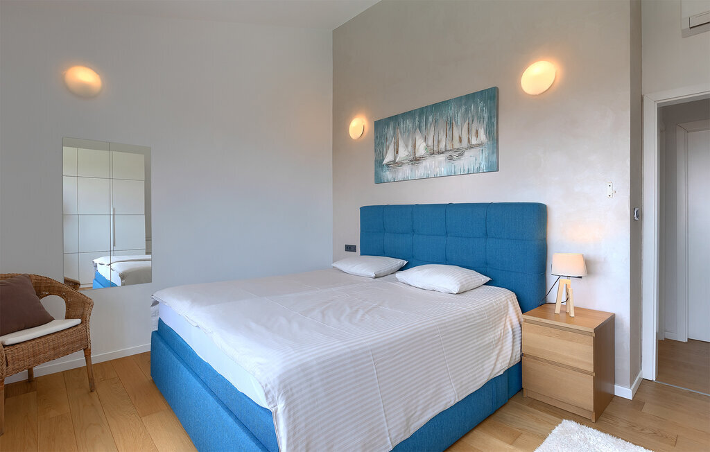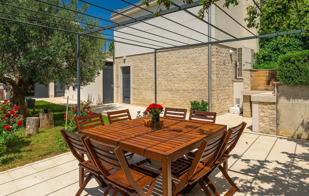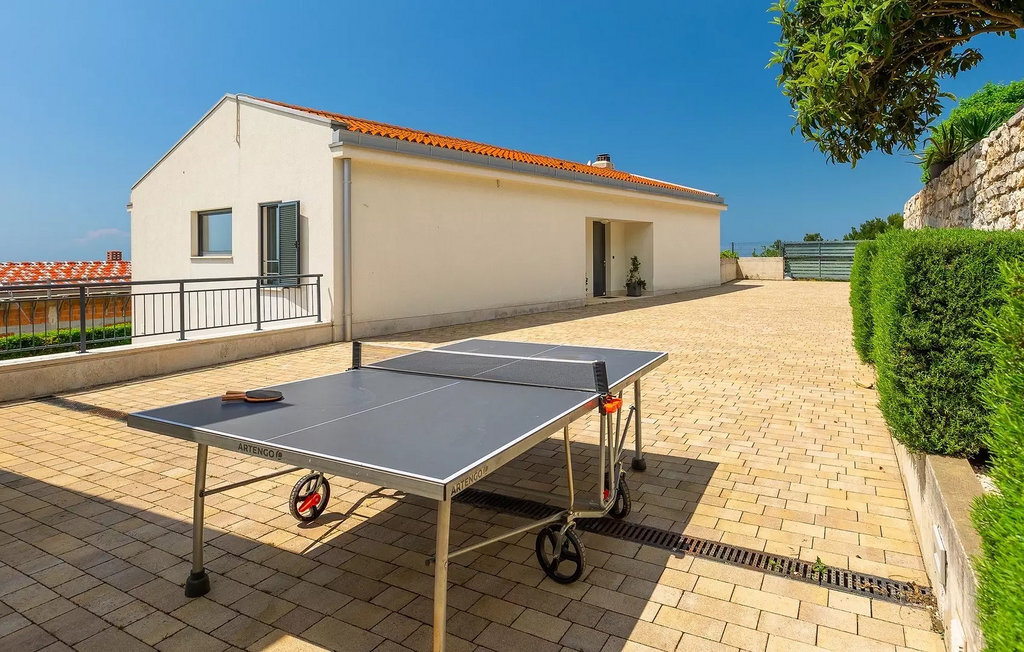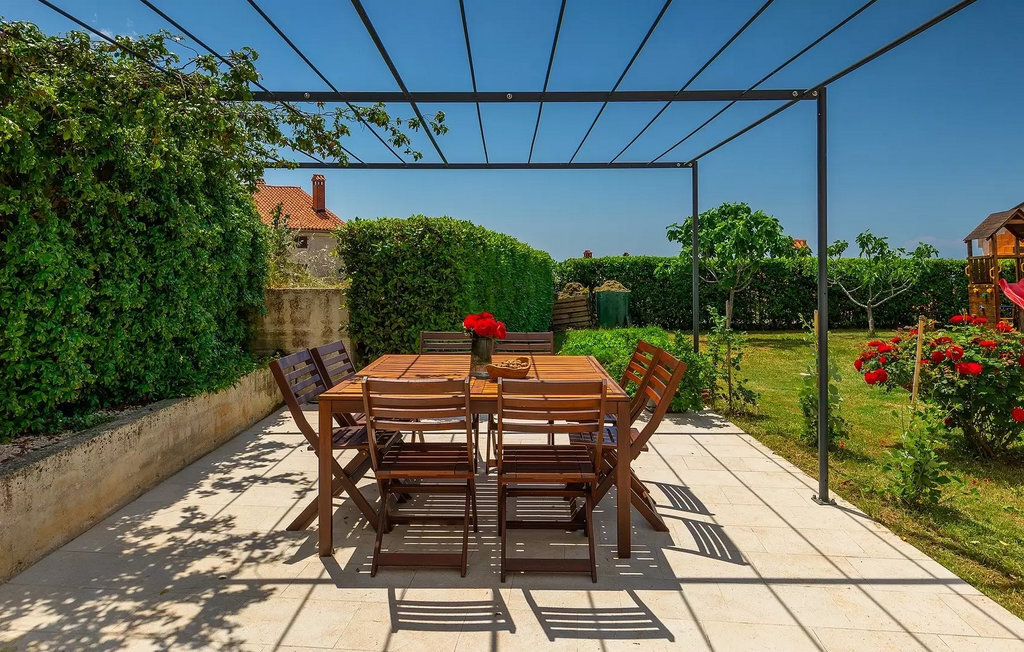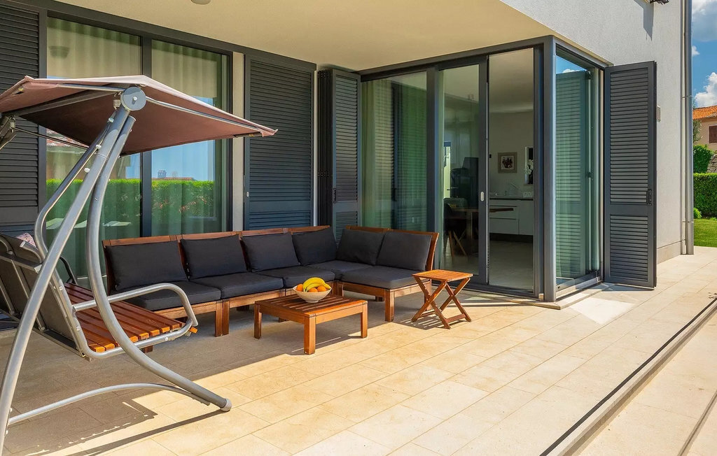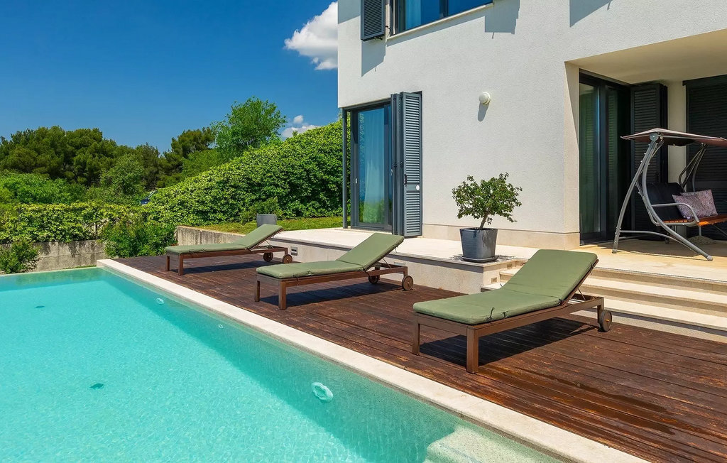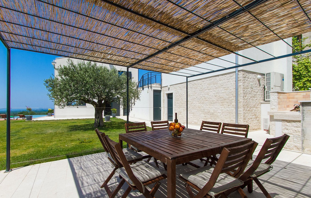 Villa Anna est une villa moderne et charmante en Istrie pouvant accueillir 8 personnes au total. Elle est idéale pour des vacances reposantes en Croatie. La villa dispose de superbes équipements, tant à l'intérieur qu'à l'extérieur. Les hôtes peuvent profiter du chaud soleil méditerranéen sur les confortables chaises longues au bord de la piscine, par exemple en lisant un bon livre ou en faisant des mots croisés. Après le bain de soleil, rafraîchissez-vous en plongeant dans la piscine ou en buvant une boisson fraîche. Le grand avantage de la piscine est bien sûr que les enfants restent occupés longtemps et que les parents peuvent se détendre pleinement. Préparez de délicieux repas sur le barbecue électrique et dégustez-les dans la salle à manger extérieure ombragée. À quelques pas de la piscine, vous trouverez un espace lounge couvert et une balançoire, parfaits pour passer des soirées d'été relaxantes en famille ou entre amis. De là, vous entrez dans le salon, la salle à manger et la cuisine entièrement équipée, qui sont inondés de lumière naturelle grâce à de grandes fenêtres. Tout au long du rez-de-chaussée et du premier étage, les hôtes seront entourés d'un design minimaliste et de tons gris, blancs et bruns. La villa se compose de 3 chambres à coucher et de 2 salles de bain au total, toutes situées au premier étage. Deux chambres à coucher ont des lits doubles et l'une d'entre elles a même sa propre salle de bain avec baignoire. À cet étage, les hôtes trouveront également une chambre avec deux lits simples, une salle de bain commune avec douche et un canapé-lit sur la galerie pour deux personnes. La villa est entièrement climatisée, elle dispose du Wi-Fi et les enfants ont également une table de ping-pong et un baby-foot pour s'amuser. Si vous cherchez à vous détendre pendant vos vacances tout en séjournant dans une villa moderne et élégante en Istrie, la Villa Anna est le bon choix.Visnjan est une petite ville istrienne située au sommet d'une colline. Elle est entourée de forêts et se trouve à 10 km au nord-est de Porec. L'ancienne terrasse sur la place, à laquelle on accède par une arche vénitienne, confère une vue étonnante sur la mer. Depuis l'époque de la domination vénitienne, Vinjan était un centre commercial réputé, où l'on vendait toutes sortes de produits agricoles et d'outils. Aujourd'hui encore, un marché ouvert traditionnel a lieu chaque dernier jeudi du mois, ce qui en fait une attraction particulière pour les personnes venues de toute l'Istrie.
