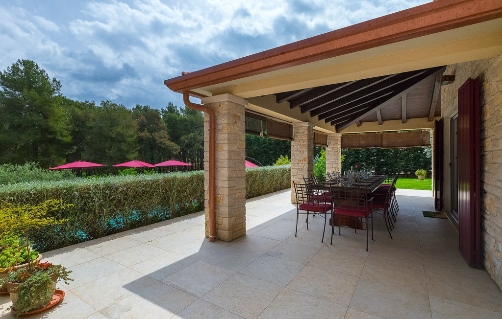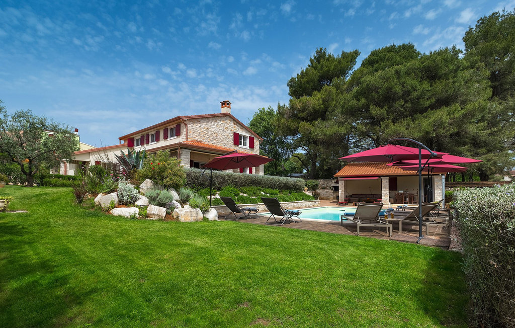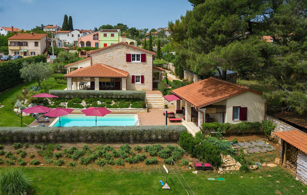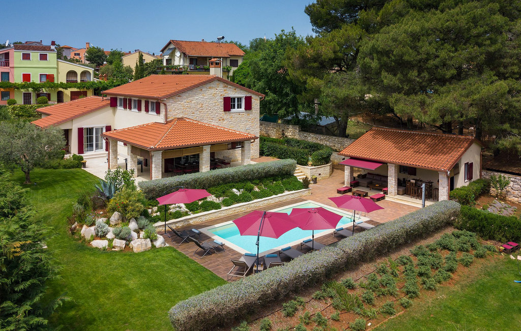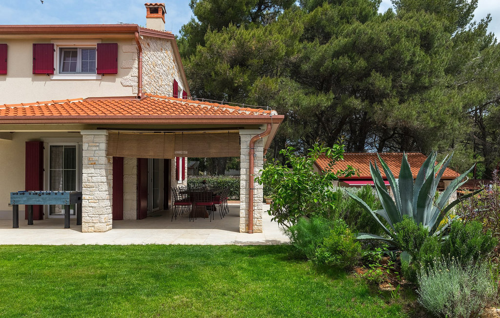 La Villa Eda est une magnifique villa familiale pleine de charme avec des espaces extérieurs et intérieurs extrêmement accueillants. La villa est entourée d'un jardin de 1950 m2 avec une piscine privée au centre. La villa est idéale pour les groupes de deux ou trois familles, car elle peut accueillir jusqu'à 14 personnes. Il y a deux maisons sur la propriété, dont la plus petite, qui se trouve à côté de la piscine, est idéale pour les hôtes qui apprécient particulièrement leur intimité. Au total, la villa dispose de 4 chambres et de 4 salles de bain. À côté de la piscine se trouve également la cuisine d'été, dans laquelle vous pouvez faire des barbecues ou préparer des repas simples. Bien que tout ce dont vous pourriez avoir besoin soit à votre disposition dans la villa, les restaurants, les plages et les bars se trouvent à seulement 2 km de la villa.Cette magnifique maison de vacances se trouve dans le village de Tar-Vabriga près de Pore. La villa se trouve à seulement 2 km de la plage. Tar-Vabriga propose des manifestations culturelles et de loisirs (par ex. des courses d'ânes). Pendant votre séjour, visitez la basilique d'Euphrasius (patrimoine culturel de l'Unesco) dans la ville culturelle et historique de Pore. Vinjan (à 11 km de Porec) est une petite ville perchée sur une colline, entourée de forêts, connue pour son observatoire astronomique de renommée internationale.